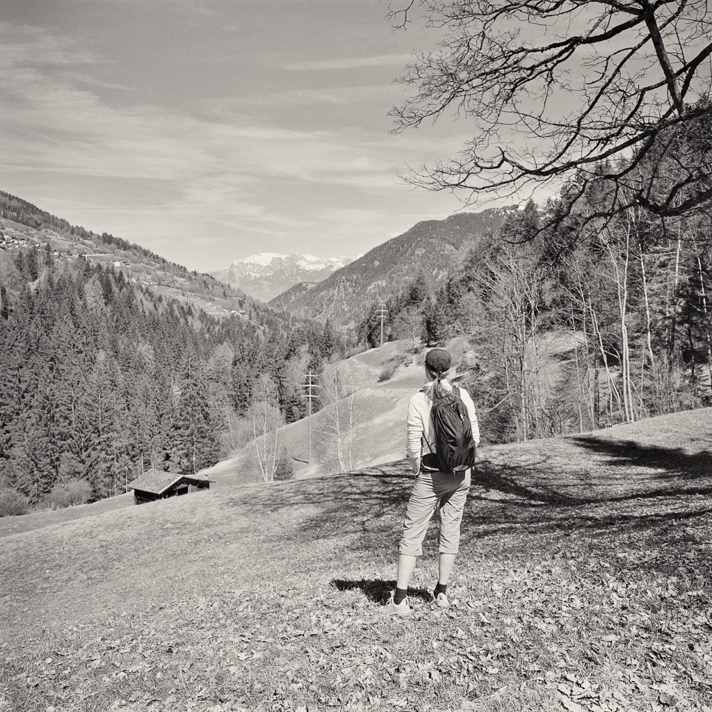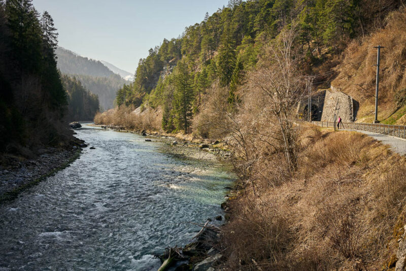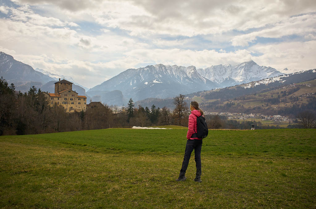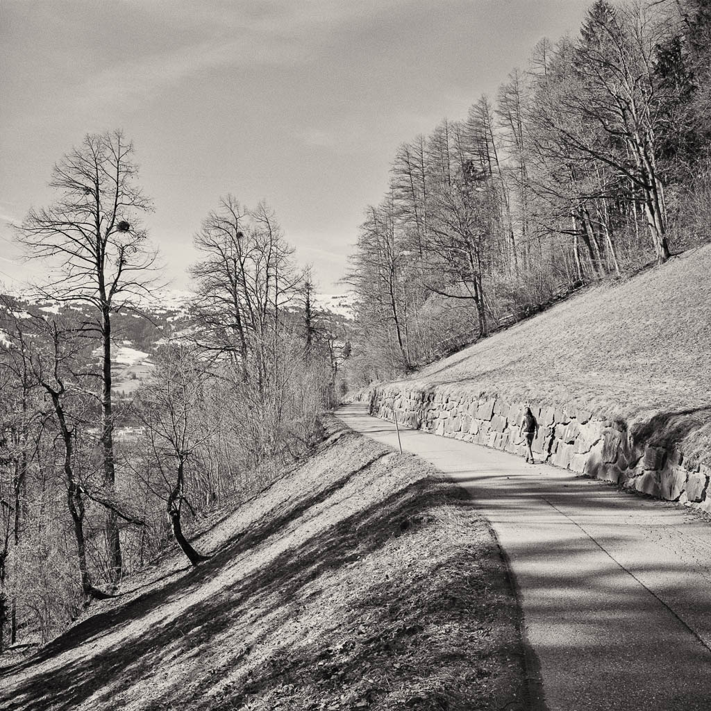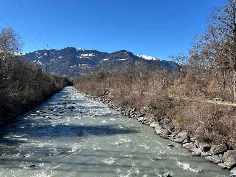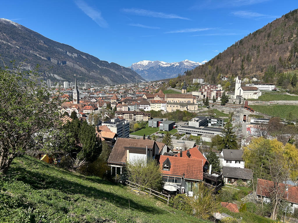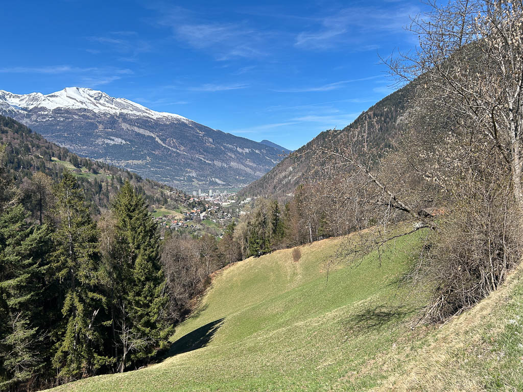 Die Postbushaltestelle „Bergbahnen“ in Churwalden ist der Ausgangspunkt unserer heutigen Wanderung, die uns über Passugg bis in die Kantonshauptstadt Chur führt: Wir starten auf rund 1200 m ü. M. in einer noch leicht winterlich angehauchten Bergwelt: Von der Haltestelle aus geht es zuerst etwa einen Kilometer lang durch bebautes Gebiet bis zum Furnerschhus. Hier überqueren wir die Hauptstrasse und das Landwasser und wechseln auf die westliche Talseite. Blick über das Landwasser: Nun laufen wir auf einem breiten, angenehm zu gehenden Fahrweg stetig bergab: Wir sind fast allein auf dieser Strecke unterwegs. Nur zwei Velofahrer überholen uns und so können wir die Ruhe und die weite Landschaft des Churwaldnertals in vollen Zügen geniessen: Auf der anderen Talseite zeigt sich die Ortschaft Malix: Ein kleiner Höhepunkt auf dem Weg ist das Fanüllatobel. Hier beeindruckt die wilde Kraft des Wassers, das sich tief in den Fels gegraben hat: Schon bald öffnet sich das Tal und wir erblicken erstmals Chur, die älteste Stadt der Schweiz, die tief unten im Rheintal liegt: Je weiter talwärts wir kommen, desto deutlicher spüren wir den Frühling. Es wird merklich grüner um uns herum, und schon bald tauchen die ersten blühenden Obstbäume auf: Chur rückt immer näher, und die Perspektive auf das Umland verändert sich stetig: An einer markanten Kurve des Wanderwegs blicken wir auf Maladers: Das Dorf liegt gegenüber auf der rechten Talseite, direkt am strategisch wichtigen Eingang zum Schanfigg, dem Tal, das Richtung Arosa führt. Auf dem weiteren Weg durchqueren wir Passugg, eine Ortschaft, die weltweit für ihre Mineralquellen bekannt ist. Blick ins Schanfigg am Ortsrand von Passugg: Ein tiefer Blick hinunter nach Meiersboden: Hier fliesst die Rabiosa in die Plessur, bevor diese sich ihren Weg durch das Stadtgebiet von Chur bahnt. Von Passugg geht es weiter über Araschgen und die Kälberweid Richtung Stadtzentrum. Der Blick über die geschichtsträchtige Kapelle St. Hilaria auf Chur: Nun erreichen wir die ersten Häuser und blicken direkt in die verwinkelten Gassen der Churer Altstadt mit ihren markanten Kirchtürmen: Bei Bodmer stiegen wir über Treppen hinunter ins Tal, um direkt in die Stadt zu gelangen: Diese Treppen enden allerdings in einer kleinen Überraschung: Man steht plötzlich mitten in einem Gebäude! Zu Fuss scheint es hier erst nicht weiterzugehen, doch als wir einen öffentlichen Fahrstuhl entdecken, können wir unseren Abstieg barrierefrei fortsetzen. Wir spazieren noch ein Stück entlang der Plessur, deren Rauschen uns bis ins Zentrum begleitet. Nach knapp 11 Kilometern und rund zweieinhalb Stunden Gehzeit erreichen wir unser Ziel: den Postbusbahnhof von Chur, der sich imposant unter der grossen Glaskuppel direkt über den Gleisen befindet. Mein Fazit: Toureninfos: