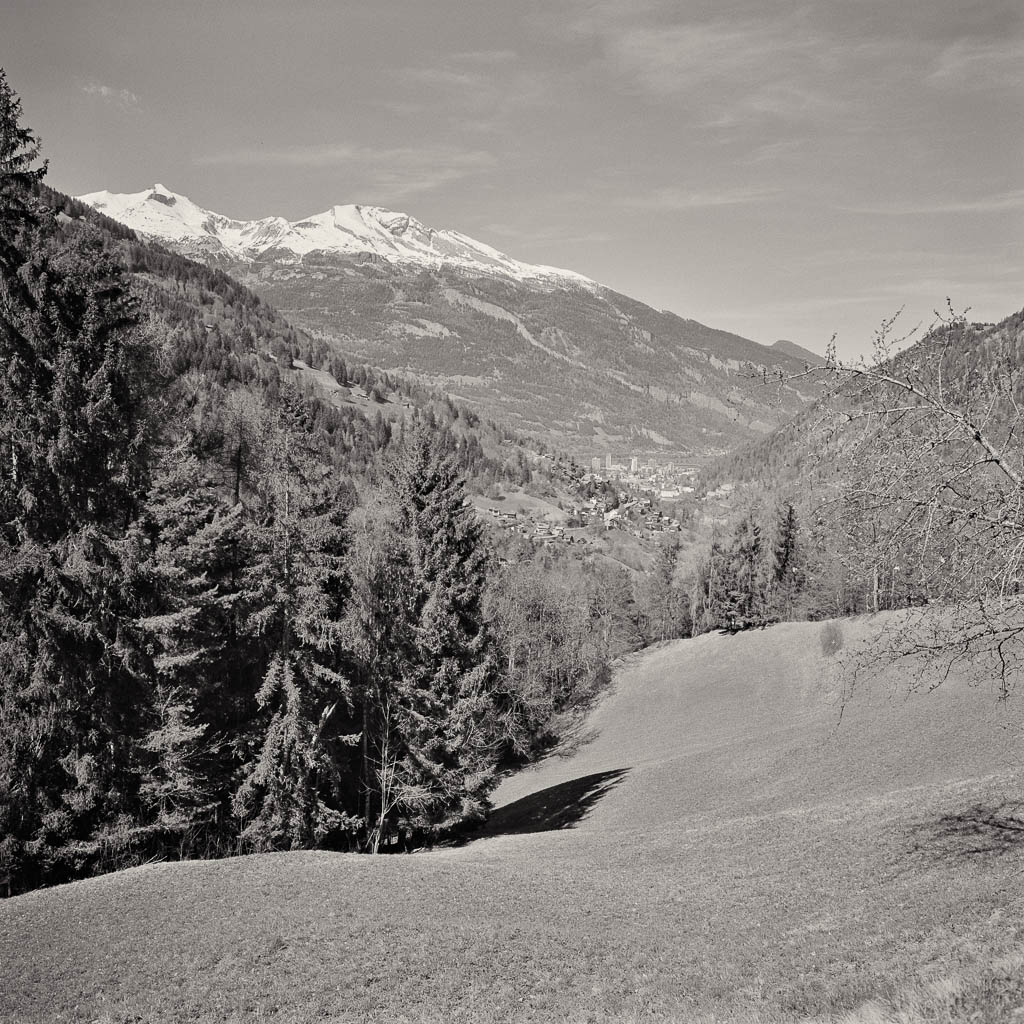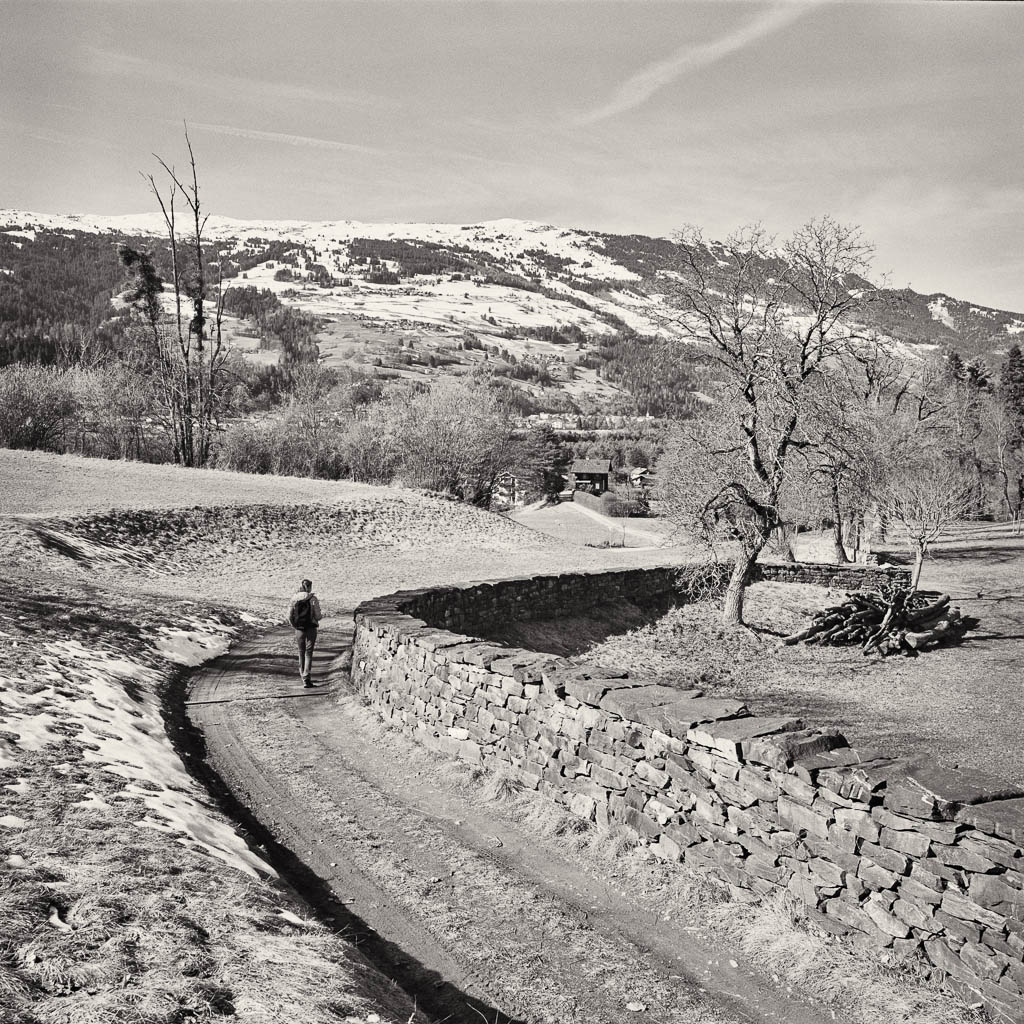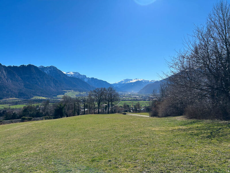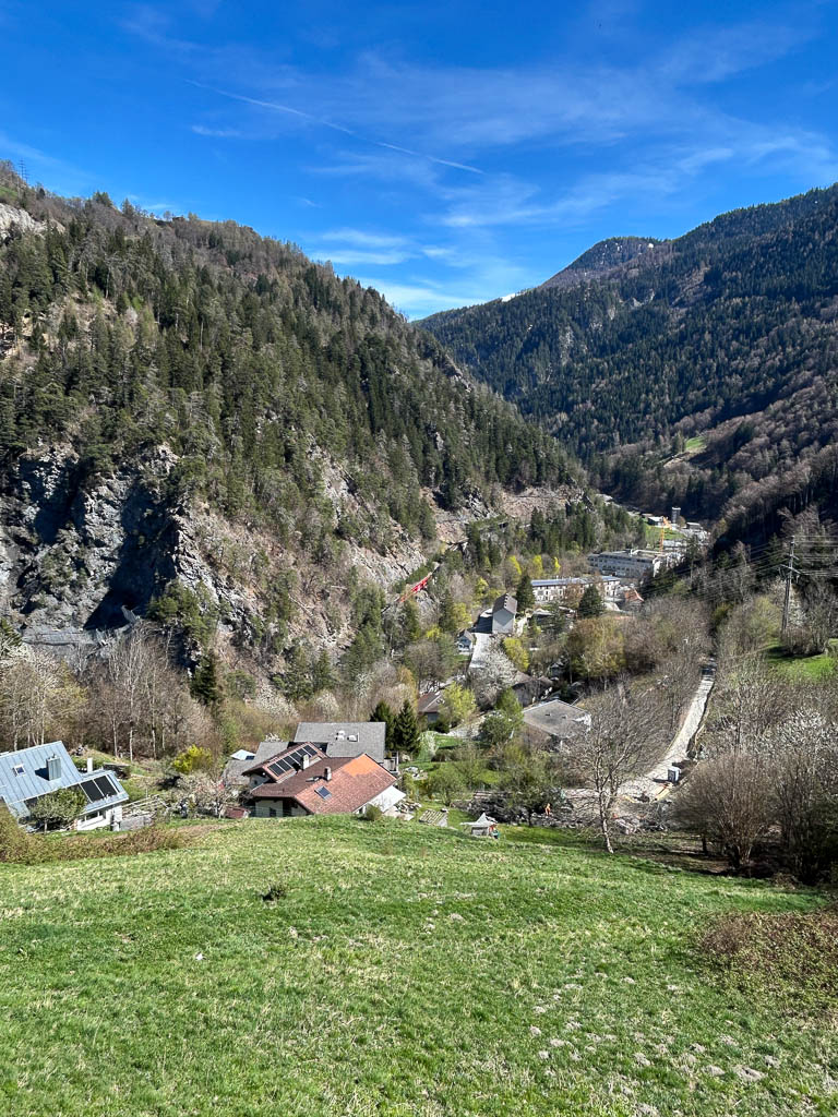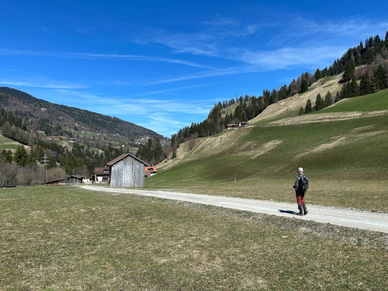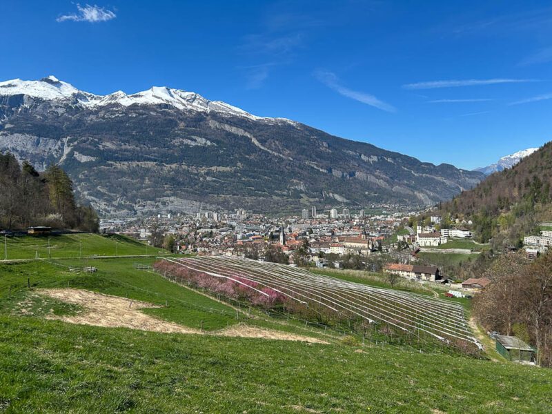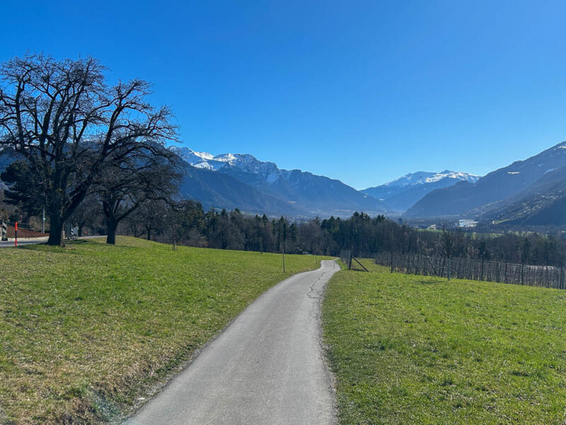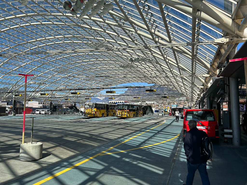 Die Postbushaltestelle „Bergbahnen“ in Churwalden ist der Ausgangspunkt unserer heutigen Wanderung, die uns über Passugg bis in die Kantonshauptstadt Chur führt: Wir starten auf rund 1200 m ü. M. in einer noch leicht winterlich angehauchten Bergwelt: Von der Haltestelle aus geht es zuerst etwa einen Kilometer lang durch bebautes Gebiet bis zum Furnerschhus. Hier überqueren wir die Hauptstrasse und das Landwasser und wechseln auf die westliche Talseite. Blick über das Landwasser: Nun laufen wir auf einem breiten, angenehm zu gehenden Fahrweg stetig bergab: Wir sind fast allein auf dieser Strecke unterwegs. Nur zwei Velofahrer überholen uns und so können wir die Ruhe und die weite Landschaft des Churwaldnertals in vollen Zügen geniessen: Auf der anderen Talseite zeigt sich die Ortschaft Malix: Ein kleiner Höhepunkt auf dem Weg ist das Fanüllatobel. Hier beeindruckt die wilde Kraft des Wassers, das sich tief in den Fels gegraben hat: Schon bald öffnet sich das Tal und wir erblicken erstmals Chur, die älteste Stadt der Schweiz, die tief unten im Rheintal liegt: Je weiter talwärts wir kommen, desto deutlicher spüren wir den Frühling. Es wird merklich grüner um uns herum, und schon bald tauchen die ersten blühenden Obstbäume auf: Chur rückt immer näher, und die Perspektive auf das Umland verändert sich stetig: An einer markanten Kurve des Wanderwegs blicken wir auf Maladers: Das Dorf liegt gegenüber auf der rechten Talseite, direkt am strategisch wichtigen Eingang zum Schanfigg, dem Tal, das Richtung Arosa führt. Auf dem weiteren Weg durchqueren wir Passugg, eine Ortschaft, die weltweit für ihre Mineralquellen bekannt ist. Blick ins Schanfigg am Ortsrand von Passugg: Ein tiefer Blick hinunter nach Meiersboden: Hier fliesst die Rabiosa in die Plessur, bevor diese sich ihren Weg durch das Stadtgebiet von Chur bahnt. Von Passugg geht es weiter über Araschgen und die Kälberweid Richtung Stadtzentrum. Der Blick über die geschichtsträchtige Kapelle St. Hilaria auf Chur: Nun erreichen wir die ersten Häuser und blicken direkt in die verwinkelten Gassen der Churer Altstadt mit ihren markanten Kirchtürmen: Bei Bodmer stiegen wir über Treppen hinunter ins Tal, um direkt in die Stadt zu gelangen: Diese Treppen enden allerdings in einer kleinen Überraschung: Man steht plötzlich mitten in einem Gebäude! Zu Fuss scheint es hier erst nicht weiterzugehen, doch als wir einen öffentlichen Fahrstuhl entdecken, können wir unseren Abstieg barrierefrei fortsetzen. Wir spazieren noch ein Stück entlang der Plessur, deren Rauschen uns bis ins Zentrum begleitet. Nach knapp 11 Kilometern und rund zweieinhalb Stunden Gehzeit erreichen wir unser Ziel: den Postbusbahnhof von Chur, der sich imposant unter der grossen Glaskuppel direkt über den Gleisen befindet. Mein Fazit: Toureninfos: