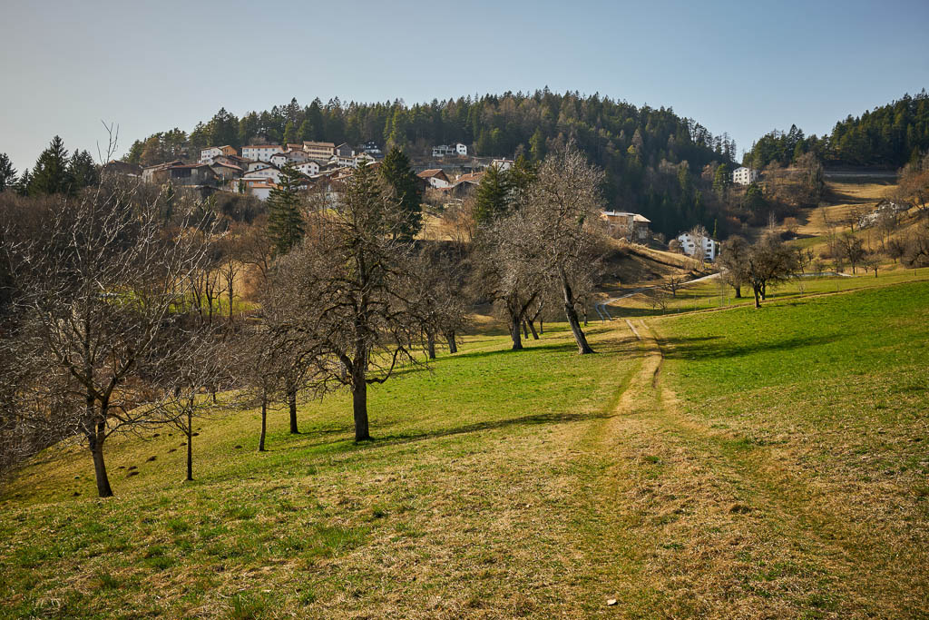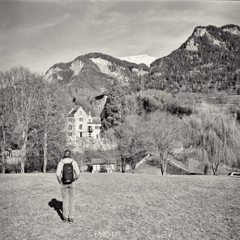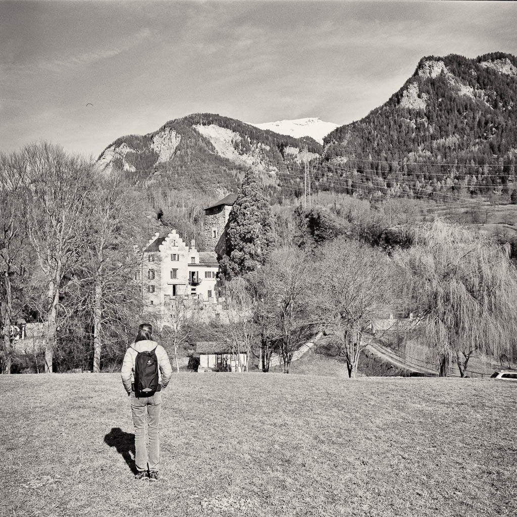Wir sind heute erneut im Domleschg unterwegs und spazieren sehr gemächlich von Paspels nach Fürstenau. Paspels mit der Burgruine „Alt Süns“: Von Paspels aus geht es etwa einen Kilometer leicht bergauf. Der herrliche Blick über einen Obstgarten von Paspels bis hin zum markanten Piz Beverin, dem „König“ der Region: Wir erreichen den Leg da Canova (Canovasee): Der Canovasee ist bekannt als einer der wärmsten Badeseen Graubündens und liegt eingebettet in eine sanfte Hügellandschaft. Ein Blick zurück bietet noch einmal eine schöne Perspektive auf Paspels: Weiter geht es Richtung Rodels, wobei wir die Ruhe der Landschaft geniessen: Bei Cresta: Rodels umgehen wir und laufen über Schloss Rietberg nach Pratval. Kurz oberhalb des Schlosses zeigt sich der Piz Beverin noch einmal in seiner vollen Pracht: Schloss Rietberg: Die Anlage stammt vermutlich aus dem 12. Jahrhundert und war einst der Stammsitz der Herren von Rietberg. Besonders markant ist der mächtige Wohnturm. Im 18. Jahrhundert wurde die Burg durch barocke Wohnbauten ergänzt. Heute ist das Schloss in Privatbesitz und ein wichtiger Bestandteil der „Burgenlandschaft Domleschg“. Von Pratval aus laufen wir entlang der Strasse nach Fürstenau. Normalerweise führt hier auch ein schöner Wanderweg abseits des Verkehrs durch die Felder, doch wir entscheiden uns heute für die direkte Strassenvariante. Der Grund ist pragmatisch: Wir wollen den Bus, der von Fürstenau nach Thusis fährt, noch rechtzeitig erreichen. Schliesslich erreichen wir die „kleinste Stadt der Welt“: Der Überblick über unseren Spaziergang: Mein Fazit: Toureninfos: