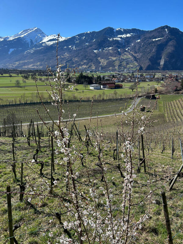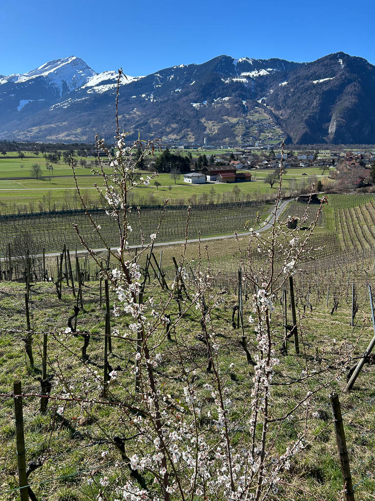 Die heutige Wanderung begann bei Landquart, genauer gesagt auf dem großen Wanderparkplatz von Ganda. Von hier aus führte der Weg über Malans nach Jenins und wieder zurück, eine Tour, die Naturgenuss mit Geschichte verband. Gleich zu Beginn überquerte ich die Landquart, die hier das Tor zum Prättigau bildet: Es war schon fast sommerlich warm heute Kurz vor Malans traf ich auf einen üppigen Bestand an Bärlauch: Der Duft lag schwer in der warmen Frühlingsluft, ein sicheres Zeichen, dass die Natur endgültig erwacht ist. Malans, malerisch vor der Klus am Eingang zum Prättigau gelegen, war bis 1864 ein wichtiger Marktort. Die strategische Lage und die enorme Fruchtbarkeit der Gegend veranlassten viele reiche Familien, sich hier niederzulassen. Das prachtvolle Schloss Bothmar mit seinem weitläufigen französischen Garten und zahlreiche stattliche Patrizierhäuser im Dorfzentrum zeugen noch heute vom einstigen Wohlstand. Schloss Bothmar: Rund um das Dorf wird reger Weinbau betrieben, die Rebberge prägen das gesamte Landschaftsbild: Der Weinbau in dieser Region hat eine beeindruckende Tradition: Er wird erstmals im Jahr 966 in einer Urkunde Kaiser Ottos erwähnt, der dem Churer Bischof eine Rebparzelle in Malans schenkte. Der Blick oberhalb des Schlosses Bothmar über das Rheintal: Ein Stück des Weges ging es noch bergauf, bevor der Pfad in mal mehr, mal weniger leichtem Gefälle über Wynegg nach Jenins führte. Der Rückweg führte mitten durch die sonnenverwöhnten Weinberge, die zwischen den beiden Dörfern liegen: Bevor man wieder ins Dorfzentrum von Malans mit seinen historischen Gassen und den alten Patrizierhäusern gelangt, durchquert man eine ausgedehnte Neubausiedlung: Malans ist eine der am stärksten wachsenden Gemeinden im Bündnerland. Mein Fazit: Toureninfos: