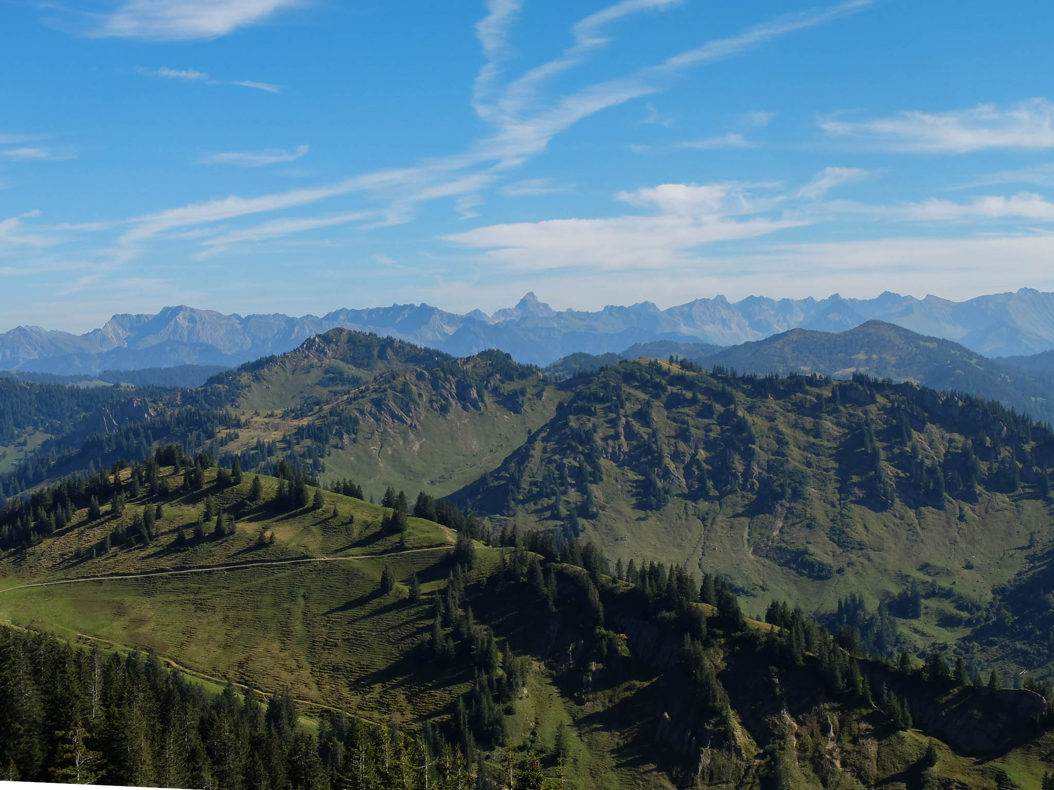 Archiv für September 2016Auf unserer heutigen Wanderung hatte ich wieder einmal den Impuls, barfuß zu gehen. Der Boden des Naturschutzgebiets „Kojenmoos“ rief aber auch regelrecht nach direkter Kontaktaufnahme. Momentaufnahmen von der Tour (Imbergbahn Bergstation – Alpe Glutschwanden – Hubertushütte – Alpengasthof „Hörmoos“ – Alpengasthof „Hochbühl“ – Imberg-Alpe – Steibis, Ortsmitte): Der See an der Hubertushütte bzw. dem Alpengasthof „Hörmoos“: Eine Wilde Karde an der Kräuter-Alpe „Hörmoos“: Der lateinische Gattungsname der Wilden Karde „Dipsacus“ stammte aus dem Griechischen und bedeutete „Ich bekämpfe den Durst“: Ihre Blätter sammelten Regenwasser und waren als Tränke und Badewanne bei Insekten und Vögeln sehr begehrt. Man sagte, dass Elfen dieses „Venusbecken“ als Schönheitsbad verwendeten. Aber auch in der Naturheilkunde der Menschen fand dieses Wasser zur Reinigung und Stärkung Verwendung. Überprüfen konnte ich letztere Aussage leider nicht. Die Sonne der letzten Tage hatte die Wasserbecken zum Verschwinden gebracht. Barfuß über Weiden: Blick über die Nagelfluhkette: Eine unerwartete Begegnung mit einem weißen Kaninchen am Alpengasthof „Hochbühl“: Die Botschaft des Kaninchens: