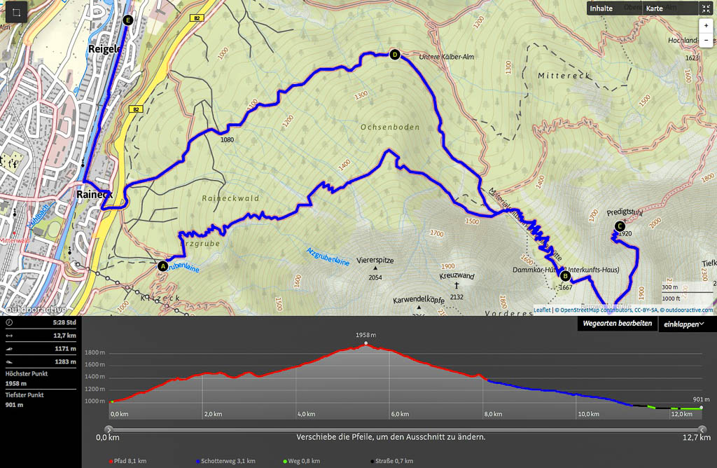 PPS: Die Strecke, die wir gelaufen sind. Es sind sogar über 1170 Höhenmeter:
