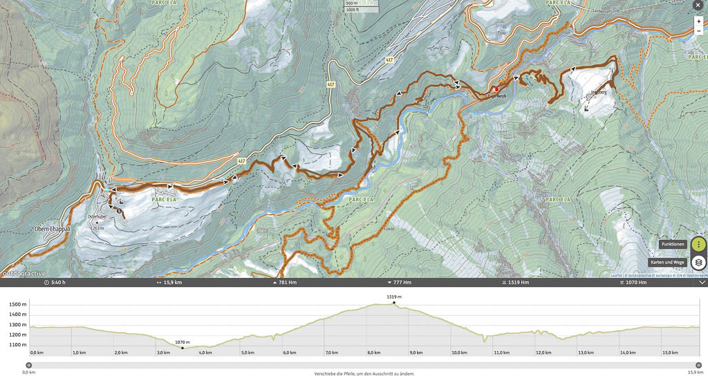 Am frühen Vormittag laufe ich Richtung Leidboden und wieder zurück. Das ist das Ergebnis, zusätzlich sind 260 Höhenmeter zu überwinden: