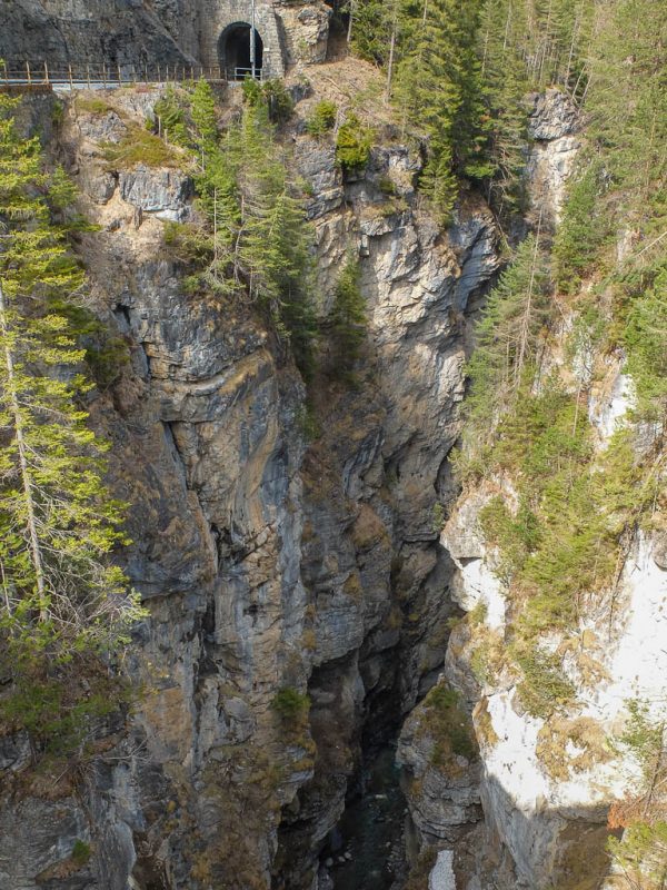 Der Tiefblick von der Brücke, die in der Nähe des Bahnhofs hinauf nach Jenisberg führt: