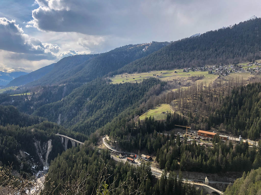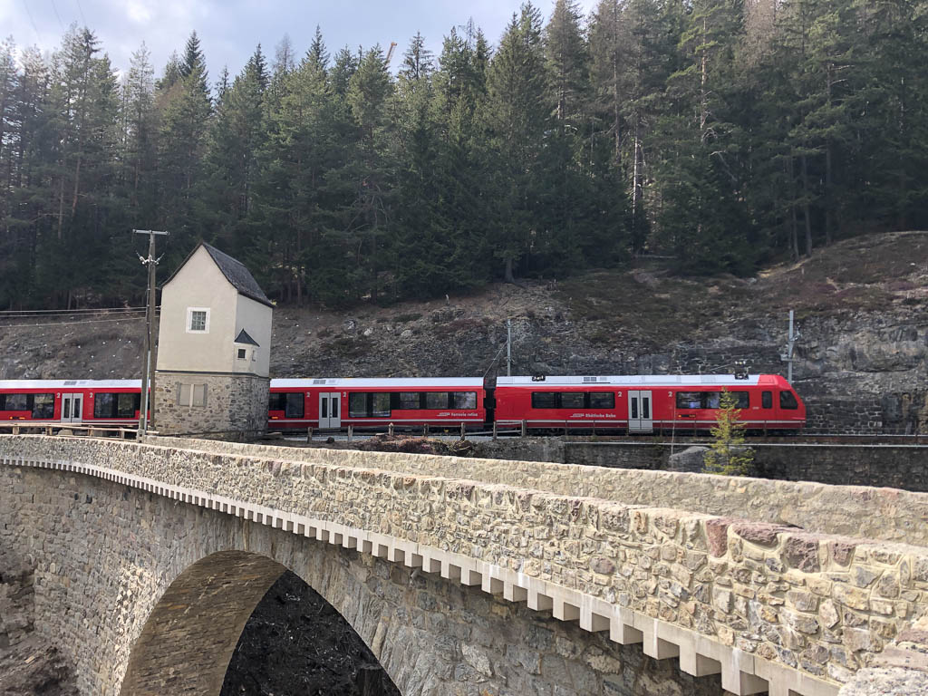 Die Rhätische Bahn auf dem Weg von Schmitten nach Davos Platz: