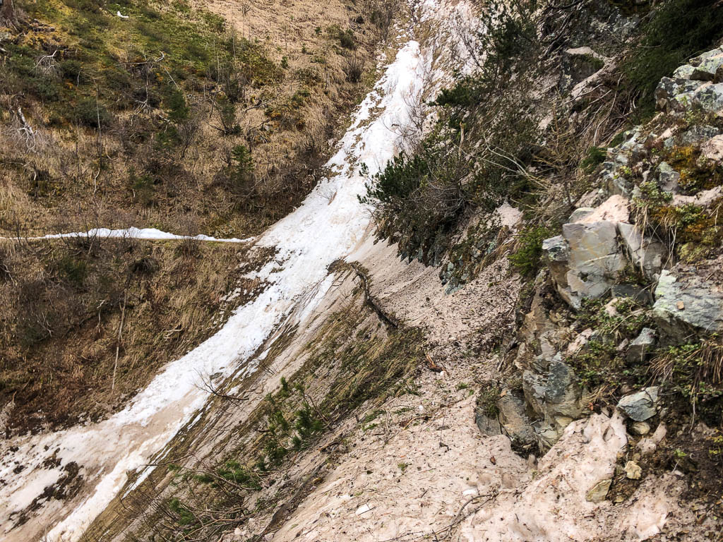 Hier bekommt unser Plan, von Jenisberg nach Monstein zu radeln, einen ziemlichen Dämpfer:
