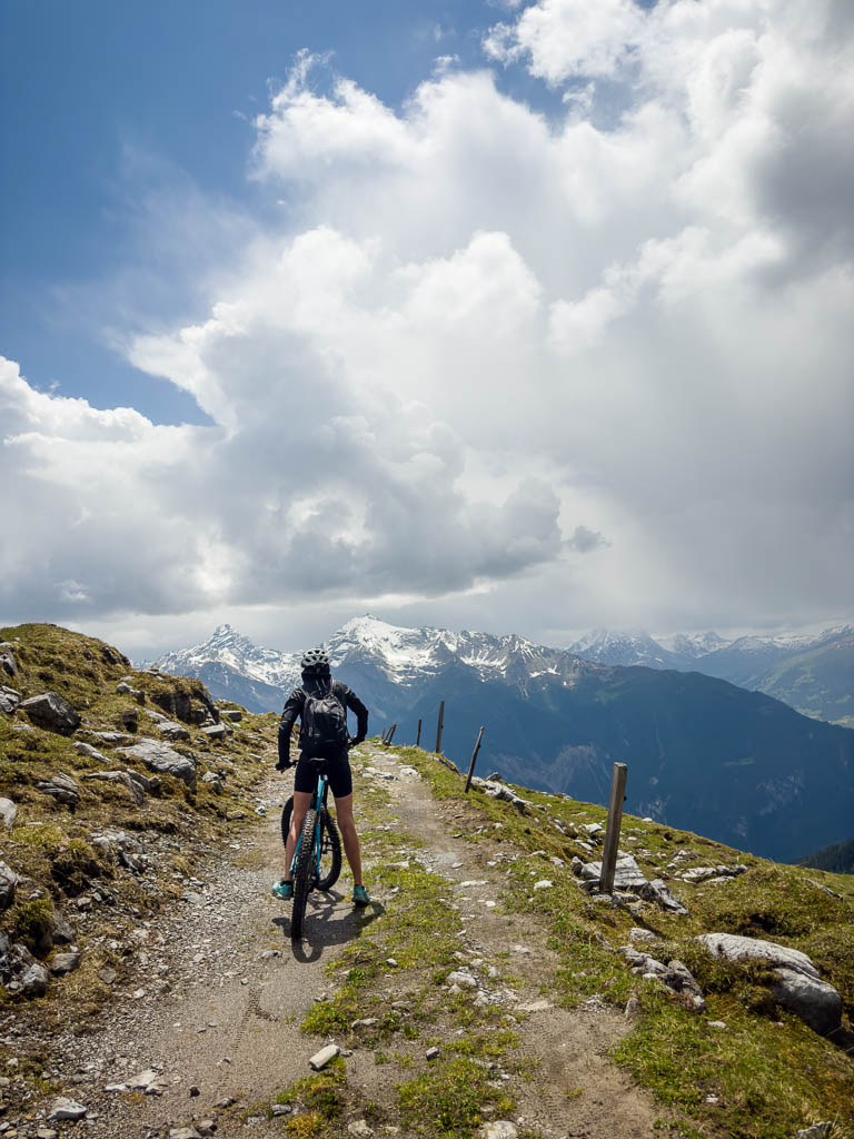 Von Mon aus fahren wir über einen Trail hinunter nach Tiefencastel: