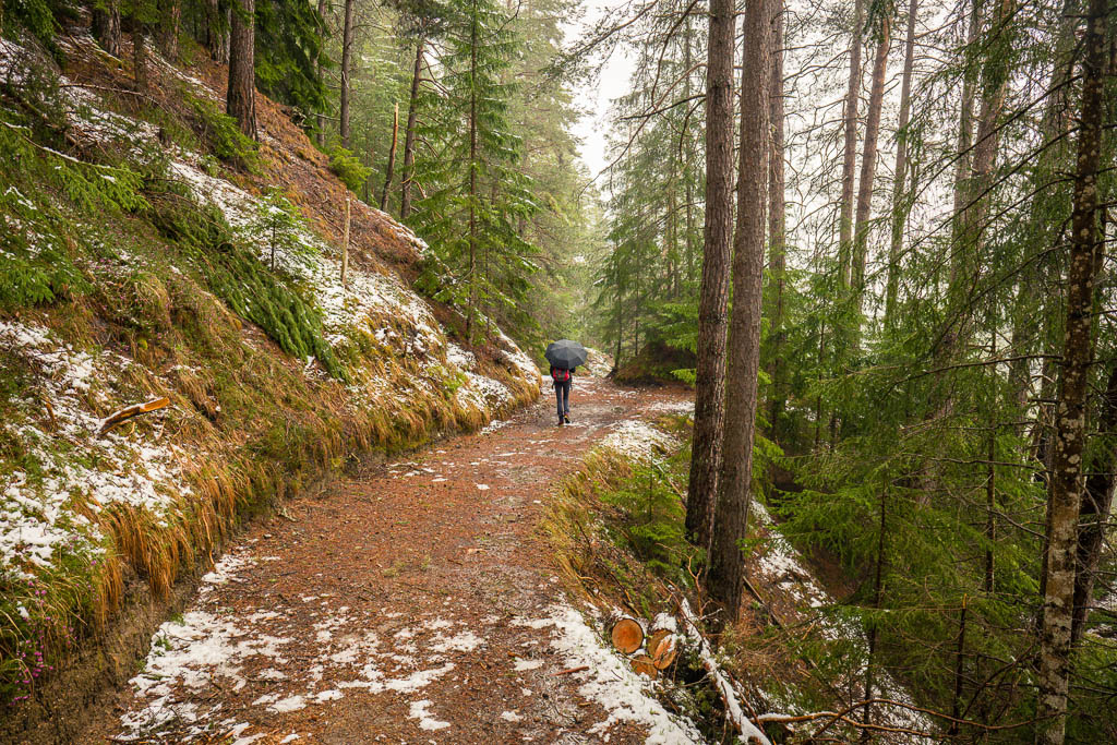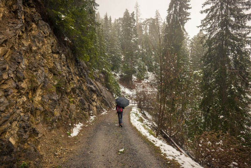 Vor mir liegen drei freie Tage, dann folgt ein dreitägiger Arbeitseinsatz im Dorfladen. Den ersten freien Tag nach dem Ende der Wintersaison 2023/2024 beginne ich um 6 Uhr mit einer vierzigminütigen Hatha-Yoga-Einheit, anschließend stärke ich mich mit Beeren und fahre dann zwei Stunden auf dem Rollentrainer: Um 11.38 Uhr fahren Guido und ich nach Davos. Dort hole ich bei Ochsner Sport die zurückgelegten Wanderschuhe ab. Ihr ersten Einsatz haben die neuen Schuhe während der nachmittäglichen Wanderung von Lenz nach Lenzerheide.