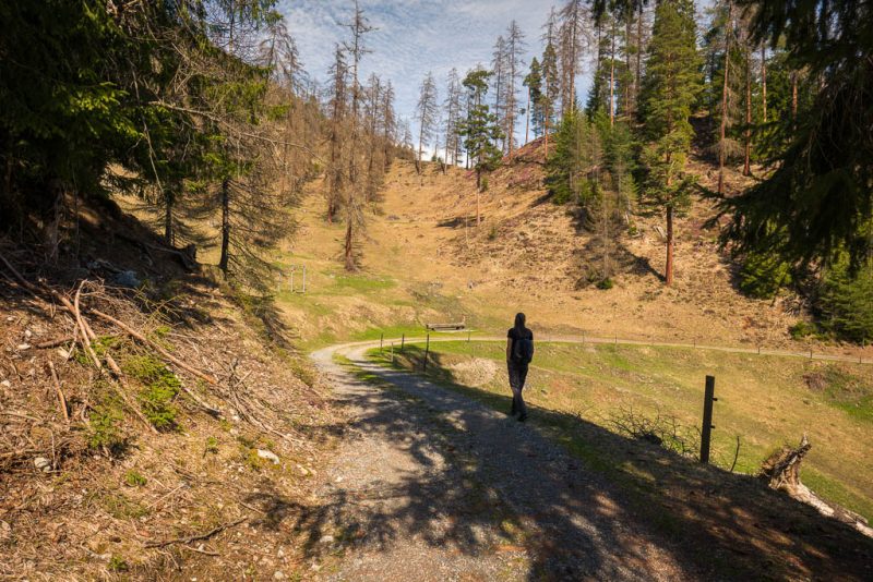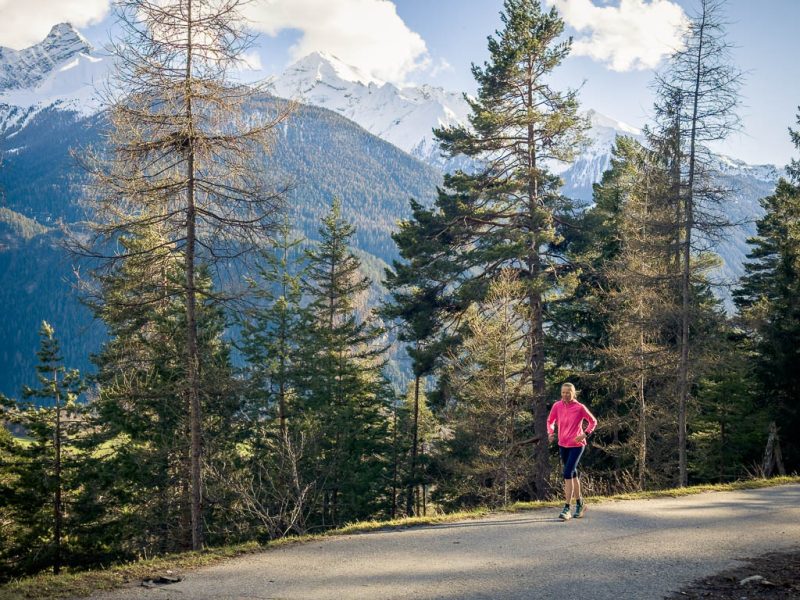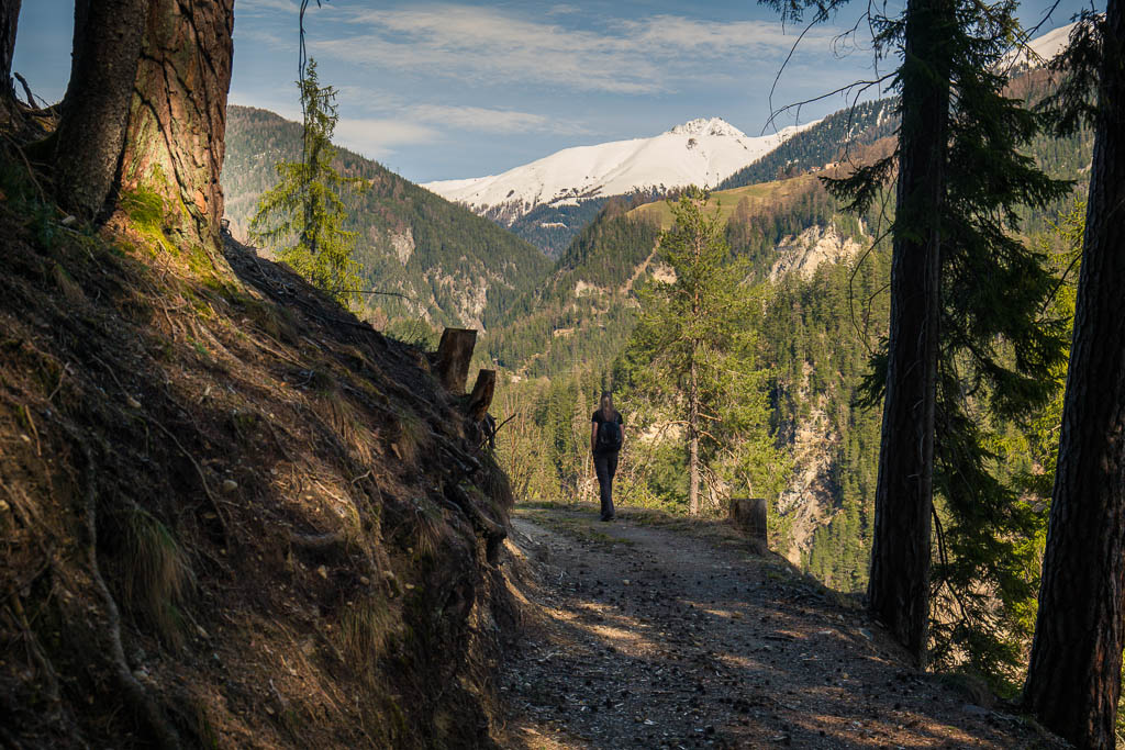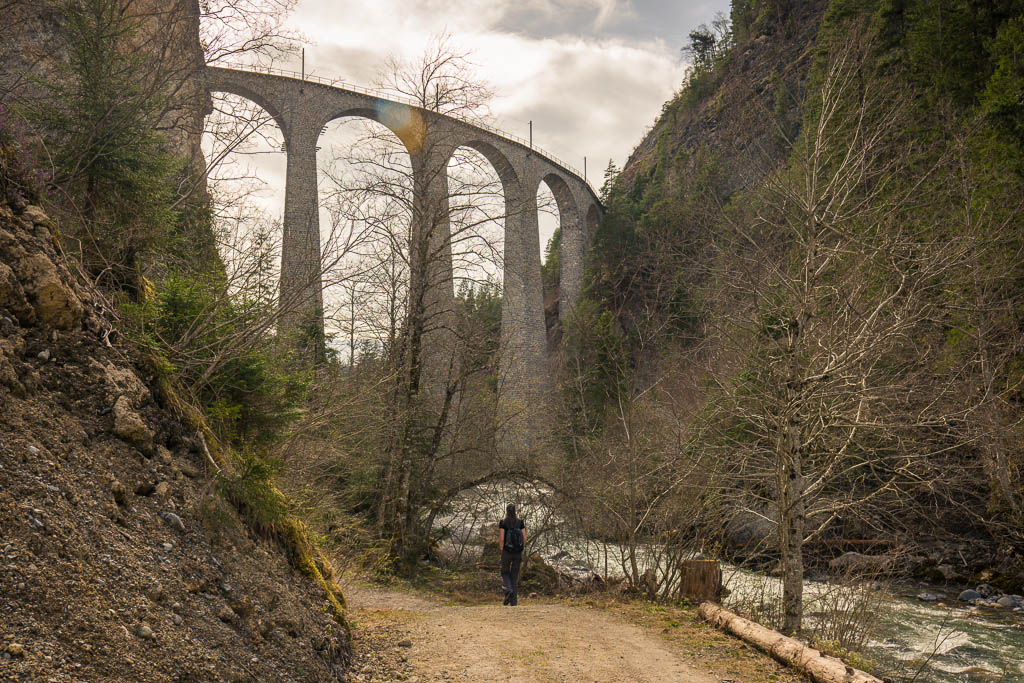 Vor der letzten Mahlzeit laufe ich ein Stück den zur Schmittner Alp führenden Alpweg hinauf: In den nächsten Wochen will ich versuchen, immer weiter nach oben zu kommen. Nach einer morgendlichen Hatha-Yoga-Einheit und einem TRX-Workout genieße ich ein paar Beeren und mache mich anschließend auf den Weg nach Davos: Ich will Nachschub an Beeren und Cherimoyas besorgen und bei Ochsner Sport nach neuen Wanderschuhen schauen. Ochsner Sport hat tatsächlich ein Paar Schuhe, die mir nicht nur gut gefallen, sondern auch gut passen. Bei meiner letzten Laufeinheit durch den Leidbodenwald lag ein umgestürzter Baum über dem Weg, heute ist der Weg wieder frei. Links von mir geht es steil hinunter zum Fluss! Am Landwasser, auf dem oberen Bild ist im Hintergrund der Muchetta zu sehen: Unterhalb des Landwasserviadukts: Hinter dem Viadukt fließt der Schmittner Bach in das Landwasser. Der Bach bringt heute einiges an Schlamm mit sich, so dass das Landwasser im weiteren Verlauf ziemlich trüb aussieht: Von Alvaneu Bad aus bringt uns der Postbus zurück nach Schmitten. Danke für diesen wunderschöne Freitagnachmittagswanderung.