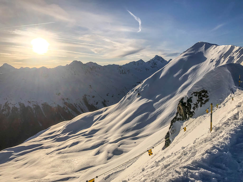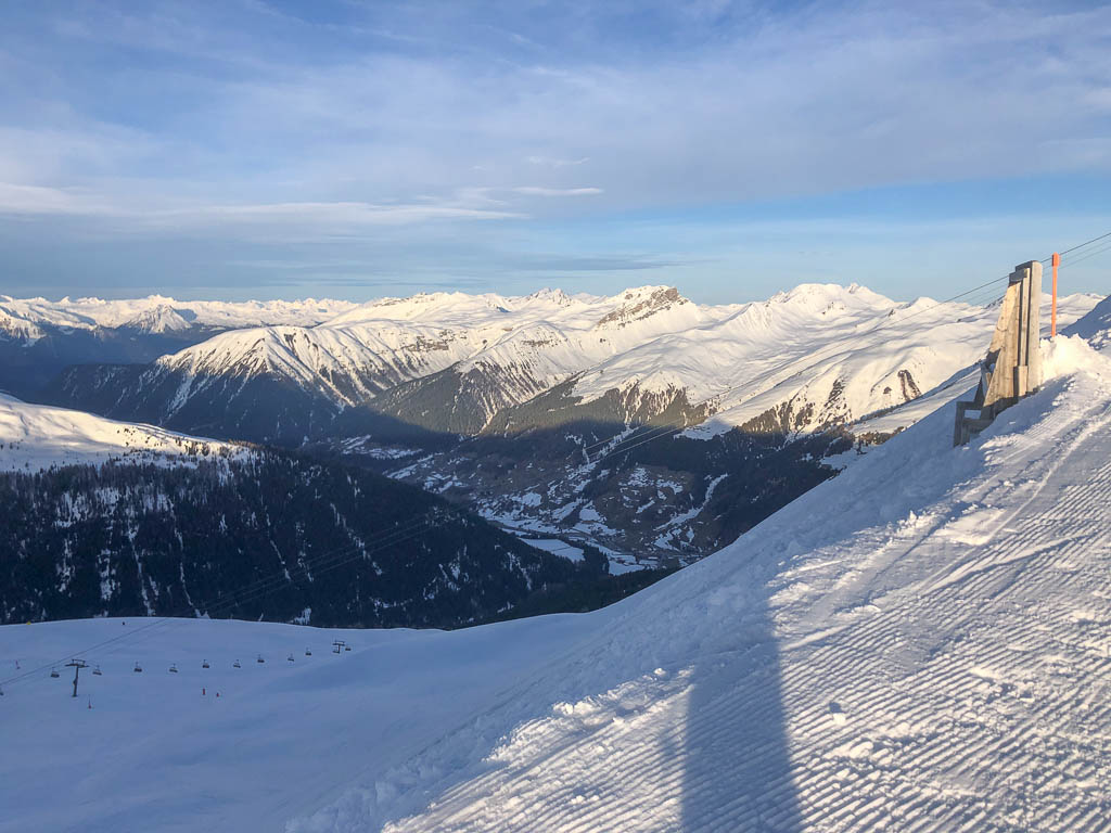 Archiv für April 2024Am vorletzten Tag der Wintersaison 2023/2024 kann ich nicht umhin, vor meiner morgendlichen Abfahrt vom Jakobshorn zur Talstation des Usser Ischs nochmals Bilder zu machen, beginnend mit einem Blick nach Osten, rechts ist das Jatzhorn zu sehen: Der Jatzweg: Hier sieht man die Bergstation des Clavadeler Bubbles und das Restaurant „Güggel“: Der Blick über das Tal des Landwassers und die anliegenden Gipfel: Die Abfahrt über die Standardpiste ist nicht wirklich prickelnd, die Piste ist ziemlich hart und damit nicht sehr angenehm zu befahren. Als ich die Talstation erreiche, ist niemand anwesend. Das verwundert mich, denn eigentlich sollte mein Kollege vor mir vor Ort sein. Außerdem kann ich die Anlage nicht starten, alle Bildschirme sind schwarz. Über Funk informiere ich den Maschinisten und kurze Zeit später ist ein Techniker vor Ort. Das Problem ist schnell behoben, der Hauptschalter war auf Null. Die Aufgabe meines immer noch nicht aufgetauchten Kollegen übernimmt ein Pistendienstler und so können wir wie geplant um 8 Uhr in Betrieb gehen. Heute finden auf den Pisten des Usser Ischs nämlich Schweizer Meisterschaften statt. Mein Kollege, B. der jüngere, taucht gegen 9 Uhr auf und übernimmt seinen Posten an der Bergstation, während ich weiterhin die Talstation hüte. Gegen 9.20 Uhr muss das Rennen wegen eines schweren Sturzes einer Läuferin unterbrochen werden. Und um 10.15 Uhr stellt der Usser Isch seinen Betrieb ein. Es ist also ein recht aufregender Tag am Lift, den ich immerhin pünktlich beenden kann.