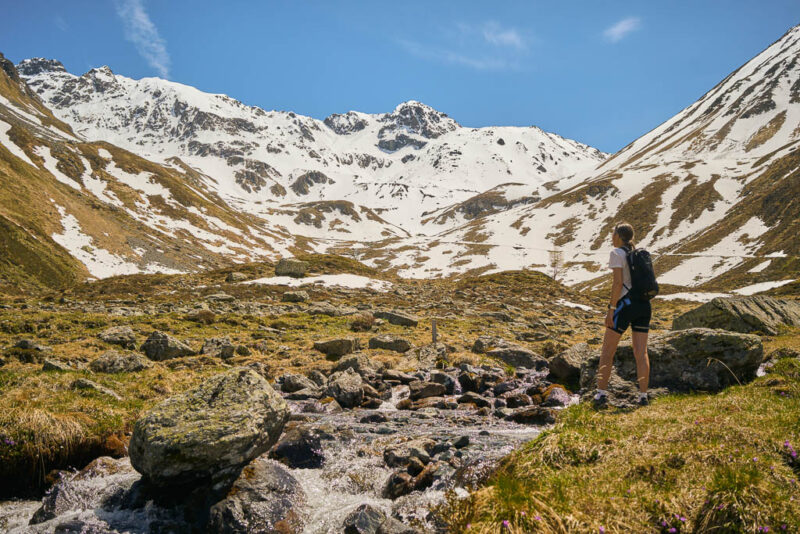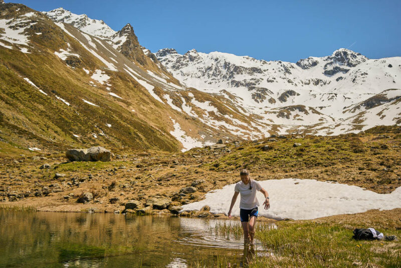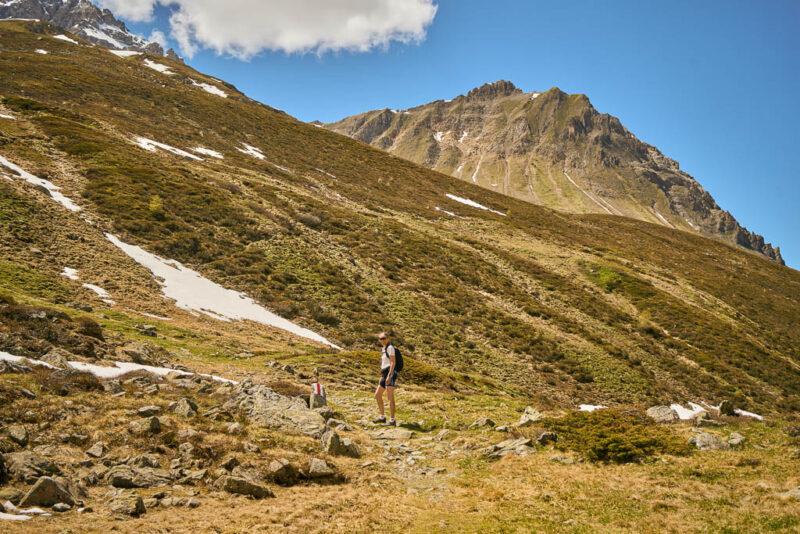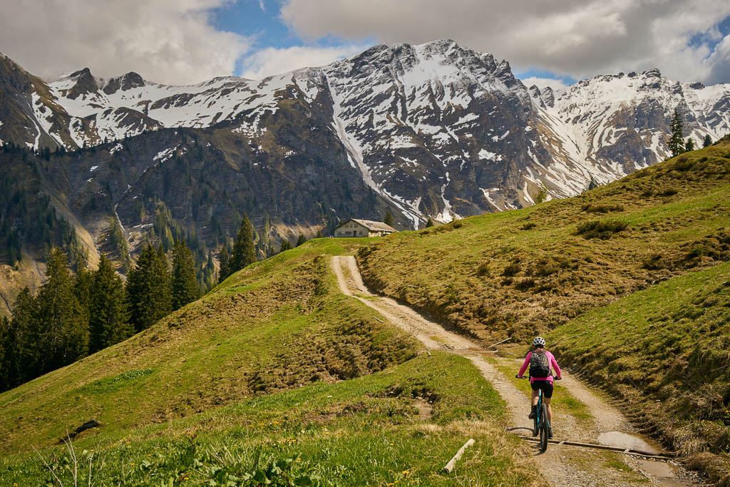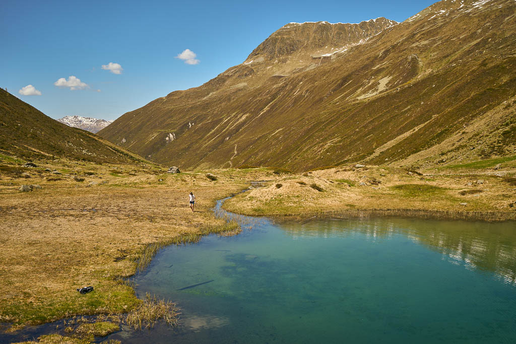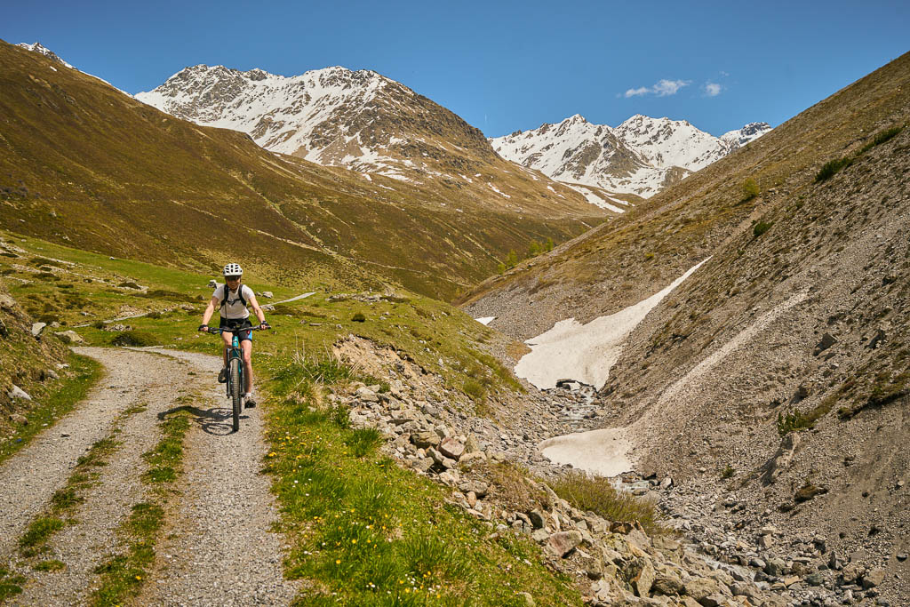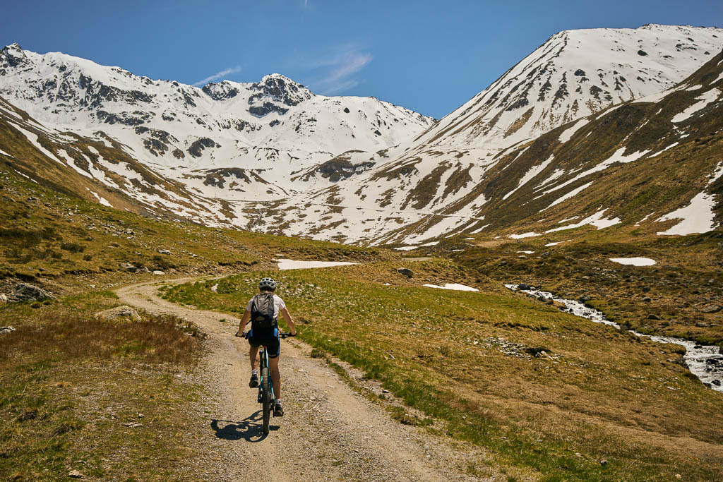 Doch irgendwann heißt es Abschied nehmen. Der Weg zum Sertigpass bleibt heute tabu – noch liegt dort Schnee:
