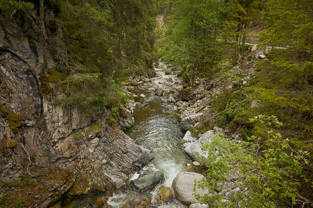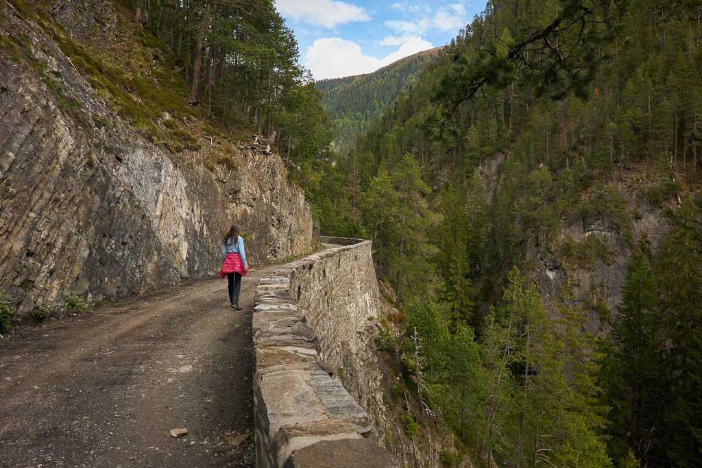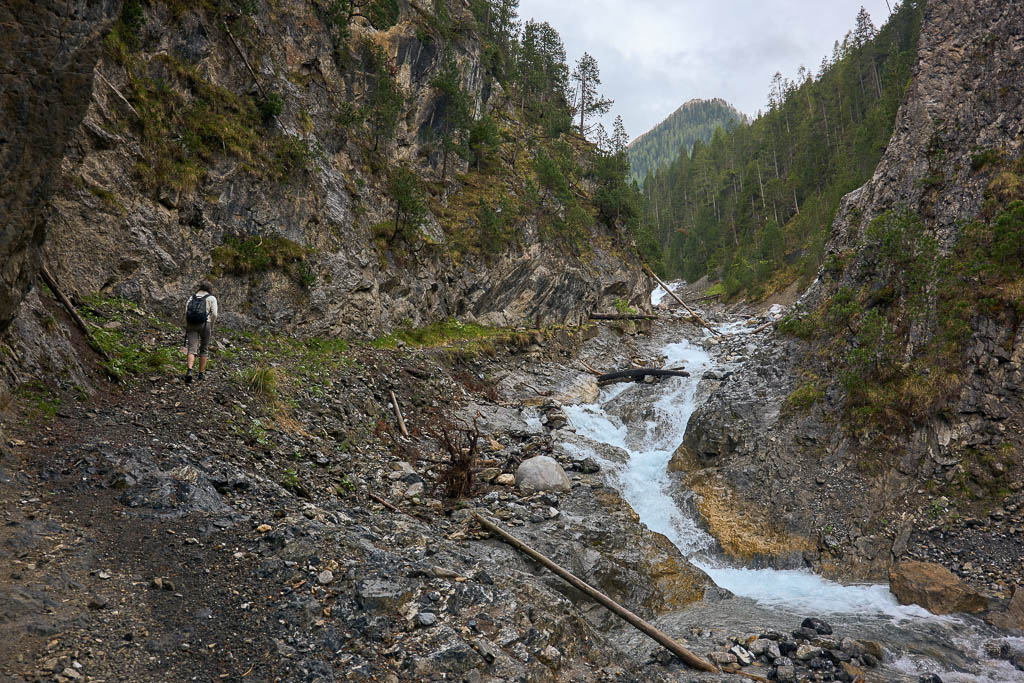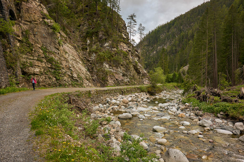 Der schottrige Untergrund ist nicht mein Lieblingsterrain, aber die Abfahrt macht deutlich mehr Spaß als der Aufstieg! Langsam nähern wir uns dem Talausgang: