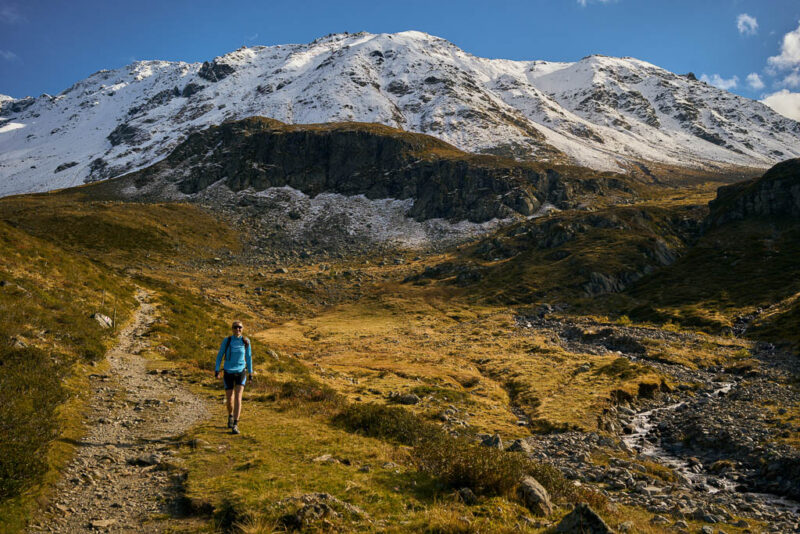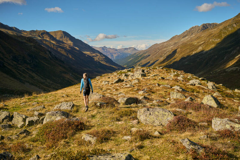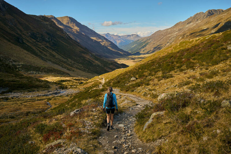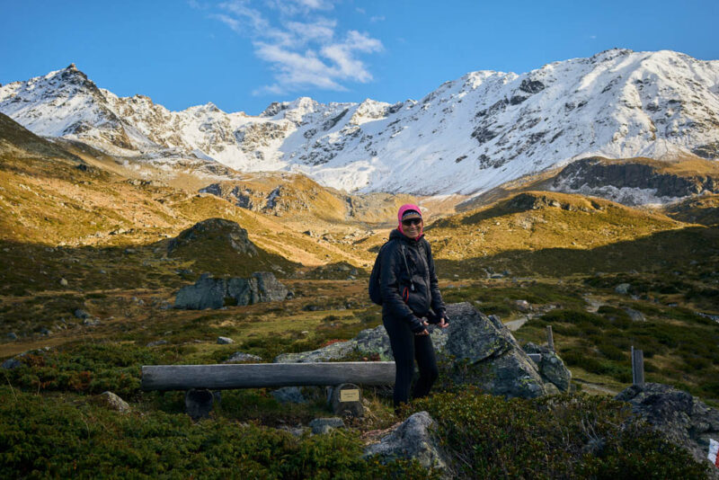 Eine bei uns beliebte Wanderung, wenn es mal nicht so anstrengend sein soll, ist der Abstieg vom Jakobshorn hinunter ins Sertigtal. In diesem Jahr waren wir erst einmal auf dieser Strecke unterwegs: Ein Klassiker zum Seele-Baumeln-Lassen. Jetzt, Mitte September, ist die Landschaft schon deutlich herbstlich angehaucht. Der Blick auf die im Nordosten liegenden Bergketten, in der Bildmitte ragt das Pischahorn empor: Der Blick nach Westen auf die Gipfel der Strelakette und die Bergstation des „Clavadeler Bubbels“: Fotoshooting: Zu Beginn unserer Wanderung ist es noch recht frisch, eine Regenjacke schützt mich vor dem kühlen Wind: Die Jatzhütte und die Bergstation des „Jatz Quattros“: Ein kleiner Tümpel unterhalb des Stadler Sees: Den Stadler See lassen wir heute links liegen und wandern über Stadler Berg und Wiitiberg weiter: Blick zurück aufs Jakobshorn: Langsam lichtet sich die Wolkendecke etwas und es wird wärmer. Meine Regenjacke wandert daher in den Rucksack: Der Blick ins Sertigtal und auf die imposante Ducankette öffnet sich: Die Sonne bringt die Landschaft zum Leuchten: Bei Tällimeder: Noch einmal ist das Jakobshorn in der Ferne zu sehen: Der Abstieg ins Sertigtal: Sertig Sand: Sertig Dörfli: Hier endet unsere Wanderung: Mein Fazit: Toureninfos: