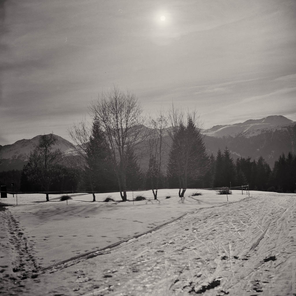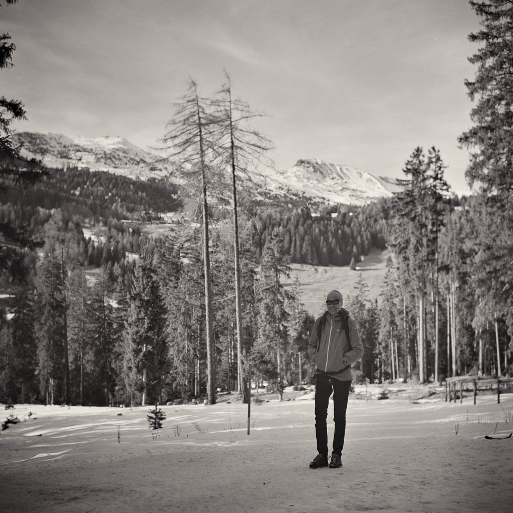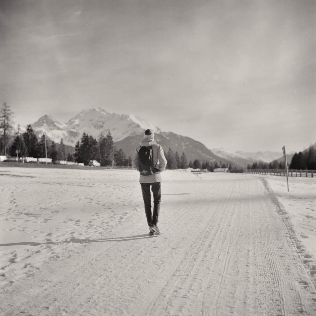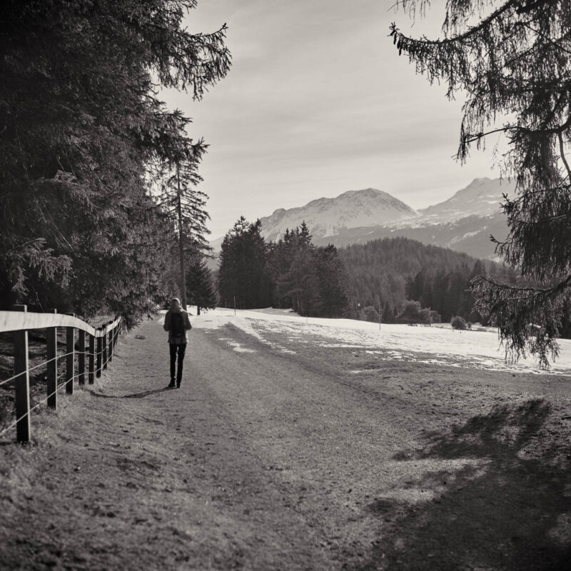 Autor ArchivDie heutigen Bilder von einem Spaziergang von Lenzerheide nach Lenz verdanke ich Guido, der mich mit seiner Rolleiflex 2.8F begleitet hat. Diese legendäre zweiäugige Kamera verleiht den Aufnahmen eine ganz eigene, zeitlose Plastizität. Es ist schön zu sehen, wie die Bilder die Ruhe widerspiegeln, die wir auf dem Weg von Lenzerheide nach Lenz gefunden haben: PS: Die Rolleiflex 2.8F gilt unter Kennern als die „Königin der Mittelformatkameras“. Ein paar Momentaufnahmen von einer kleinen Spazierrunde bei Schmitten im Albulatal Mitte Januar 2026: Vor zwei Wochen sind wir nach Pardela aufgestiegen und über Acla wieder abgestiegen, heute wählen wir die umgekehrte Richtung. Zunächst geht es von Schmitten hinauf nach Acla: Von den Hütten bei Acla öffnet sich der Blick zu den Bergüner Stöcken: An der Kreuzung bei Grünwald: Blick von der Kreuzung hinauf zum Guggernellgrat: Ankunft bei Pardela: Der Rückweg nach Schmitten führt über den Alten Pardelaweg. Fast der gesamte Weg ist schnee- und eisfrei, lediglich der obere Abschnitt des Fahrwegs hinauf zur Grünwaldkreuzung ist stellenweise spiegelglatt. Der Winter lässt also weiterhin auf sich warten und doch tut dieser ruhige Spaziergang gut. Die vertraute Landschaft, die klare Luft und die Bewegung an der frischen Luft machen die Runde auch ohne Schnee zu einem kleinen, aber wohltuenden Ausflug. Wir haben fast Mitte Dezember, doch die Temperaturen fühlen sich eher nach Frühling an. Gemeinsam mit Guido nutze ich den herrlichen Sonnenschein und drehe eine Spazierrunde über Pardela, Grünwald und Acla. Zu Beginn unserer Tour gehen wir weglos über die Wiese unterhalb der Kirche: Blick zurück auf die Kirche: Bei Pardela: Weiter geht es in Richtung Grünwald: In Grünwald ist der Fahrweg stark vereist. Trotz der winterlichen Bedingungen sind einige Fahrzeuge nach oben gefahren und haben die Oberfläche glattgefahren. Entsprechend heikel ist das Gehen, jeder Schritt will vorsichtig gesetzt sein. Wir halten uns dabei eher seitlich am Rand, wo noch etwas griffiger Schnee liegt. Wir sind froh, als wir endlich auf den Weg nach Acla abbiegen können, auch wenn dieser anfangs ebenfalls wenig fußgängerfreundlich ist. Bei Acla: Der anschließende Abstieg von Acla nach Schmitten ist zum größten Teil schnee- und eisfrei und damit angenehm zu gehen: Es war ein schöner, friedlicher Winterspaziergang. Eine stille Auszeit im Dezemberlicht. Der Schnee rund um Schmitten schmilzt aufgrund milder Temperaturen und Sonnenschein langsam, und im Dorf ist vom Winter kaum noch etwas zu sehen. Um dennoch in den Genuss einer echten Winterlandschaft zu kommen, steigen wir heute in die höheren Lagen auf. Zunächst wandern wir hinauf nach Acla: Ankunft bei Acla: Von Acla führt ein steiler Wanderweg direkt hinauf nach Zaplina: Bei Zaplina zeigt sich der Winter dann in voller Pracht, die Hänge sind tief verschneit: Von Zaplina aus queren wir hinüber zur Schmittner Alp: Wir haben zwar Schneeschuhe dabei, doch auch wenn wir hin und wieder einsinken, lässt sich der Weg noch gut ohne zusätzliche Ausrüstung bewältigen: Ankunft oberhalb der Schmittner Alp: Von hier sind es nur noch wenige Schritte hinauf zur Alp Afiein. Der Blick über die verschneiten Weiden der Alp: Anschließend laufen wir gemütlich über den Fahrweg hinunter zur Schmittner Alp: Hütten der Schmittner Alp: Von dort geht es weiter nach Pardela: Und schließlich laufen wir über den alten Pardelaweg zurück nach Schmitten. Mein Fazit: Toureninfos: