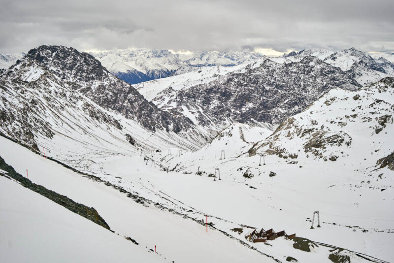 Am Freitag ist das Skigebiet „Parsenn Davos“ in die Wintersaison gestartet, zwar nur fürs Wochenende, aber immerhin. Noch haben wir keine Lust, selbst auf die Skier zu steigen, doch das Zuschauen lassen wir uns nicht nehmen. Wir fahren mit der Parsennbahn hinauf zum Weissfluhjoch, drehen dort eine kleine Runde und werfen einen Blick auf die Pisten und über die verschneite Landschaft. Blick über die Totalp: