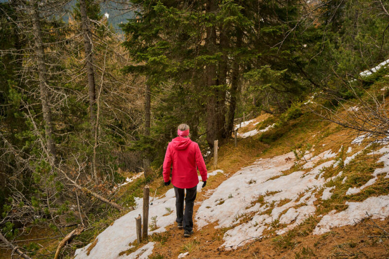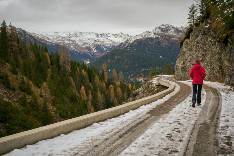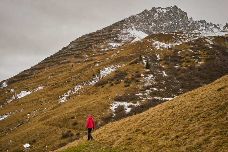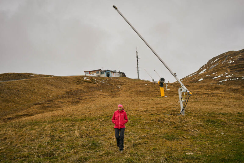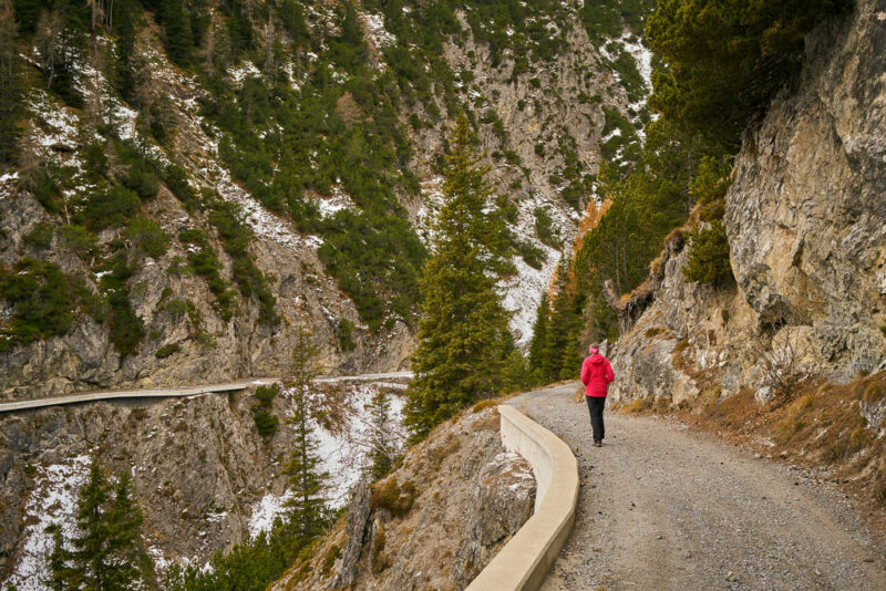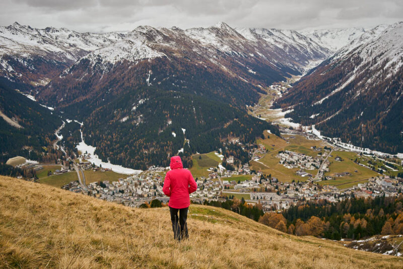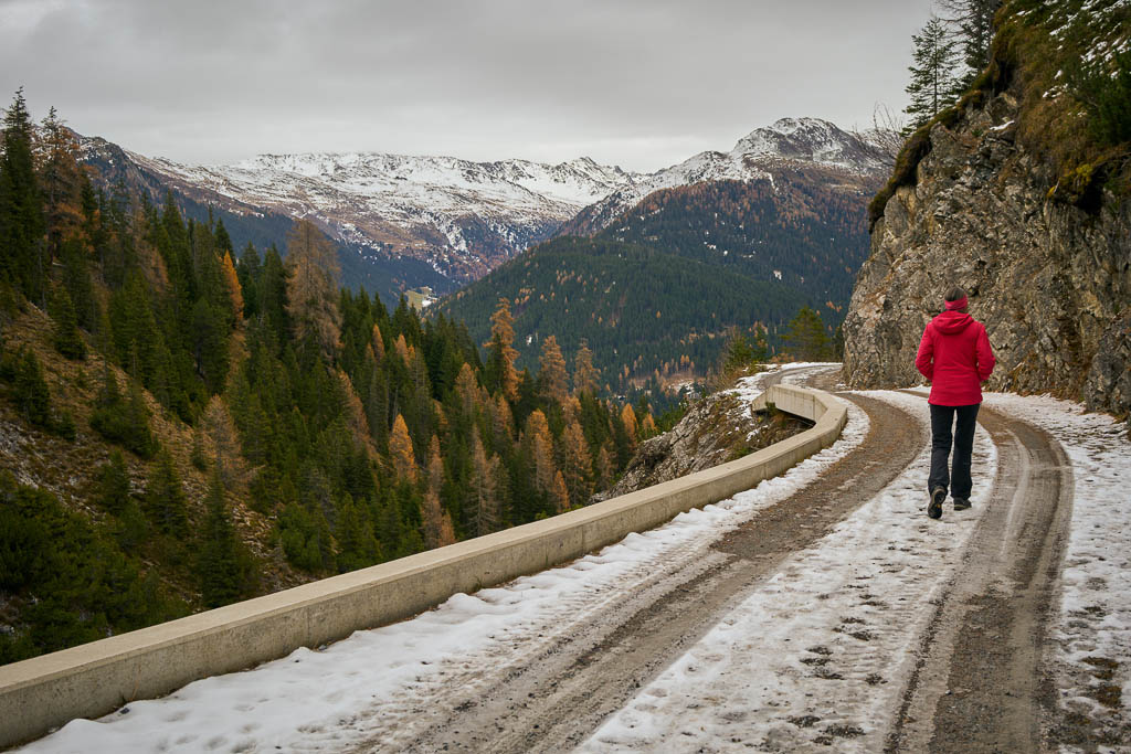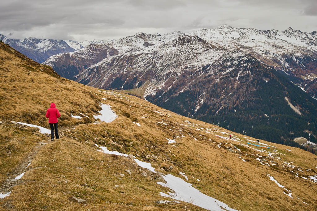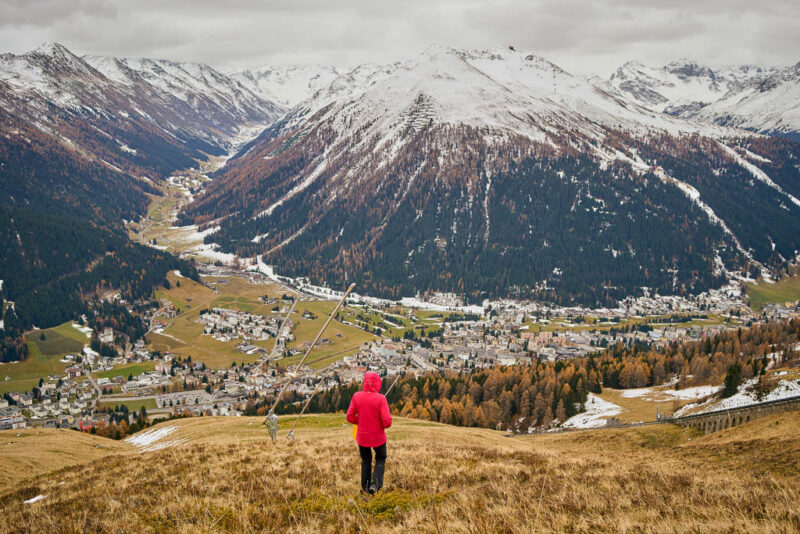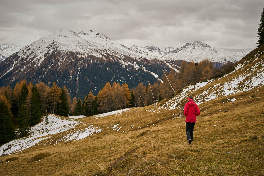 An die Minustemperaturen hier oben sind wir noch nicht wirklich gewöhnt, deshalb fahren wir bald wieder hinunter zum Höhenweg und laufen von dort aus nach Davos: