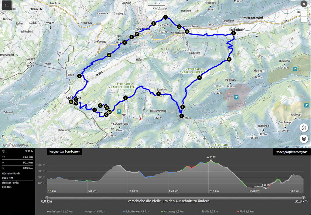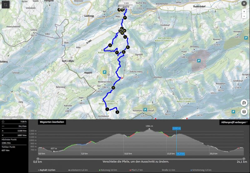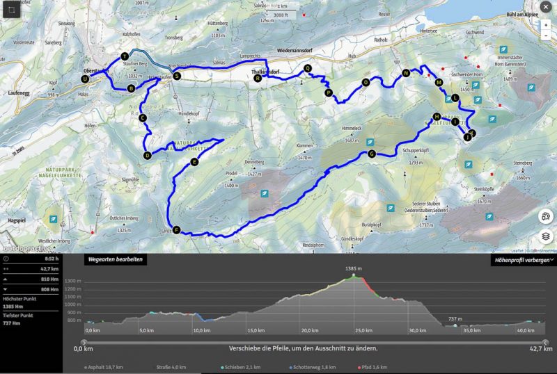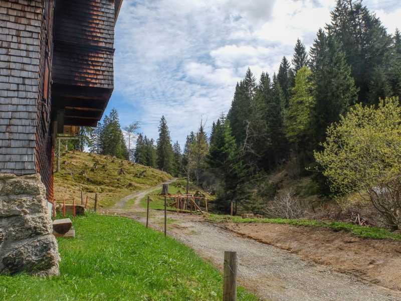 Von der Thaler Höhe aus geht es über einen wurzelreichen Waldweg zum Alpseeblick: