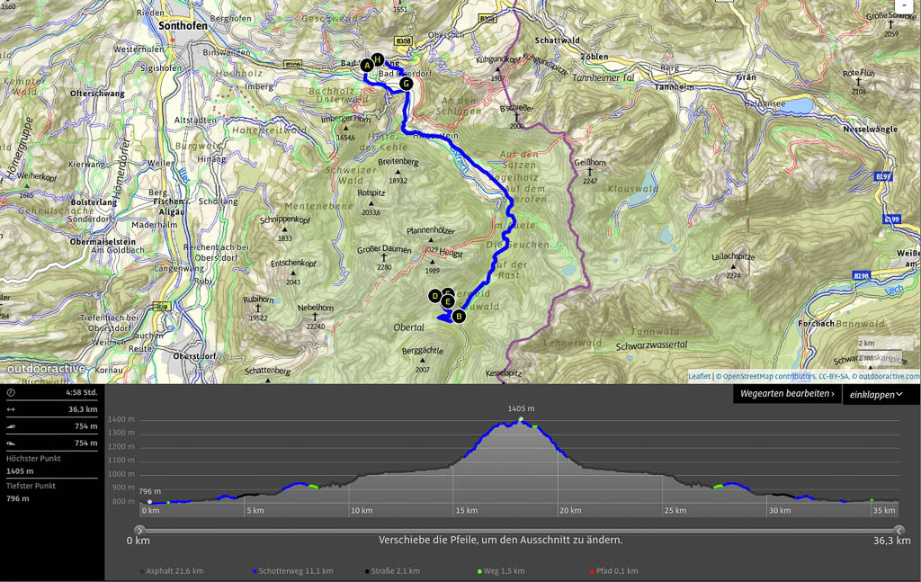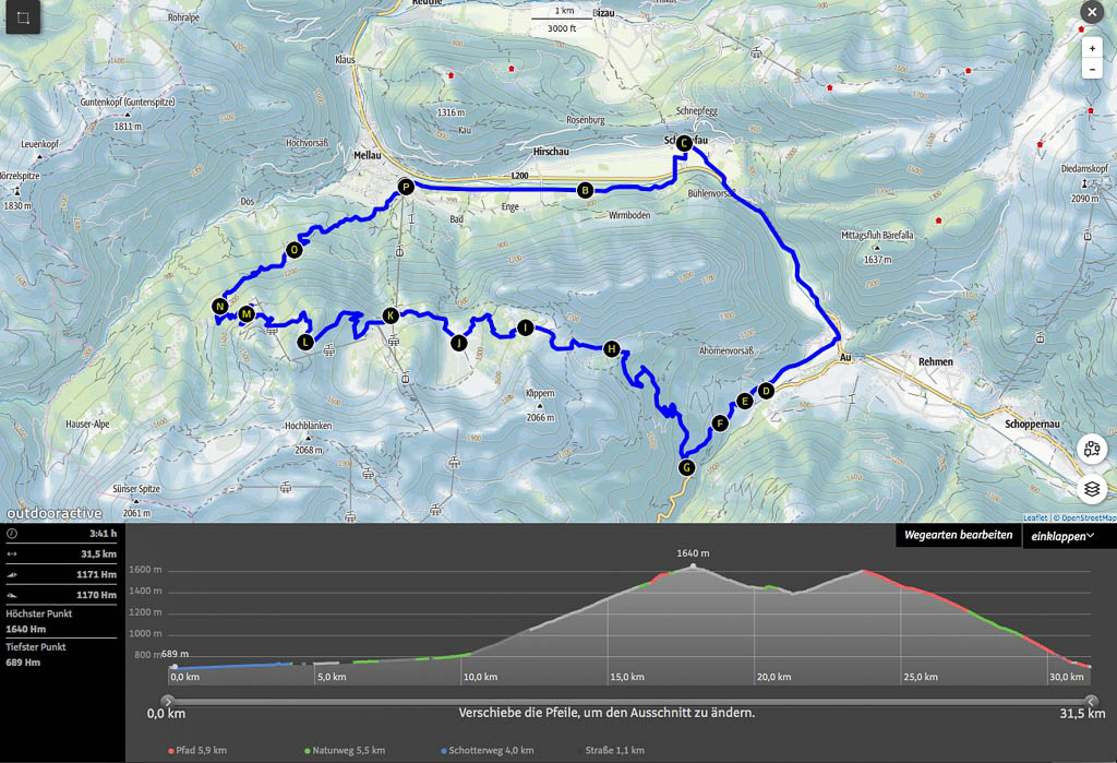 Viereinhalb Stunden nach unserem Start erreichen wir wieder den Ausgangspunkt unserer Tour, die Talstation der Mellaubahn. Die Radstrecke in der Übersicht: