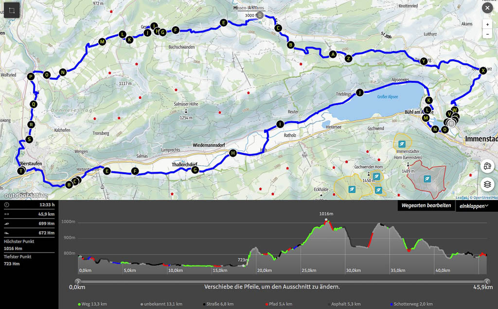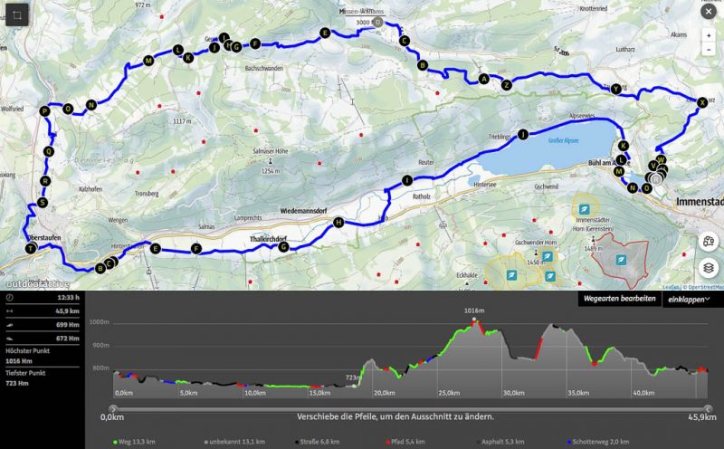 Wir benötigen für die Radstrecke drei Stunden, einschließlich diverser, kleinerer Pausen zum Fotografieren, für den Auf- und Abstieg zum Gipfel eine Stunde und dreißig Minuten, einschließlich einer gut zehnminütigen Gipfelrast. Dank E-Bike kann ich die Tour von Anfang bis Ende genießen, sonst wäre es für mich eine ziemlich mühsame Angelegenheit gewesen.