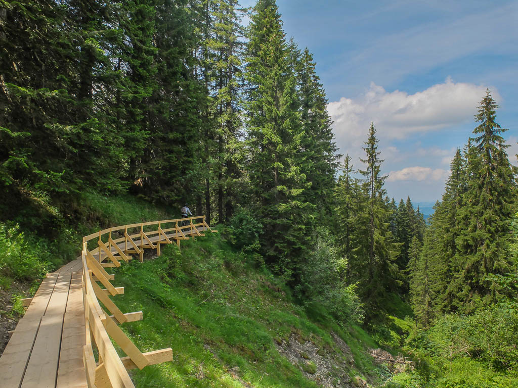 Die letzten Meter zur Bergstation führen über einen Singletrail: