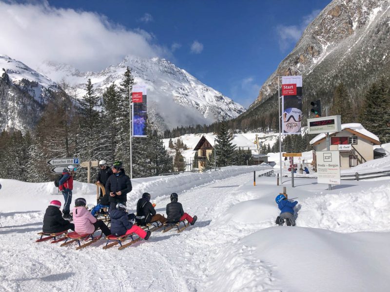Die meisten Leute, die in Preda aussteigen, zieht es zur Alubulapassstraße Richtung Bergün hin. Im Winter dient der Streckenabschmitt zwischen Preda und Bergün als Schlittelweg: