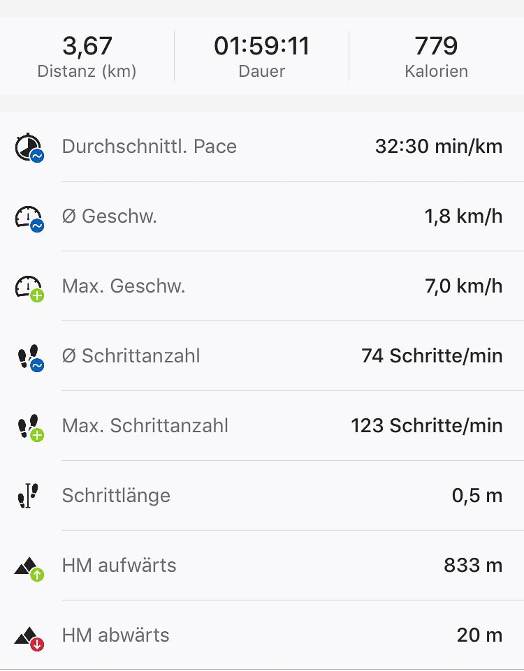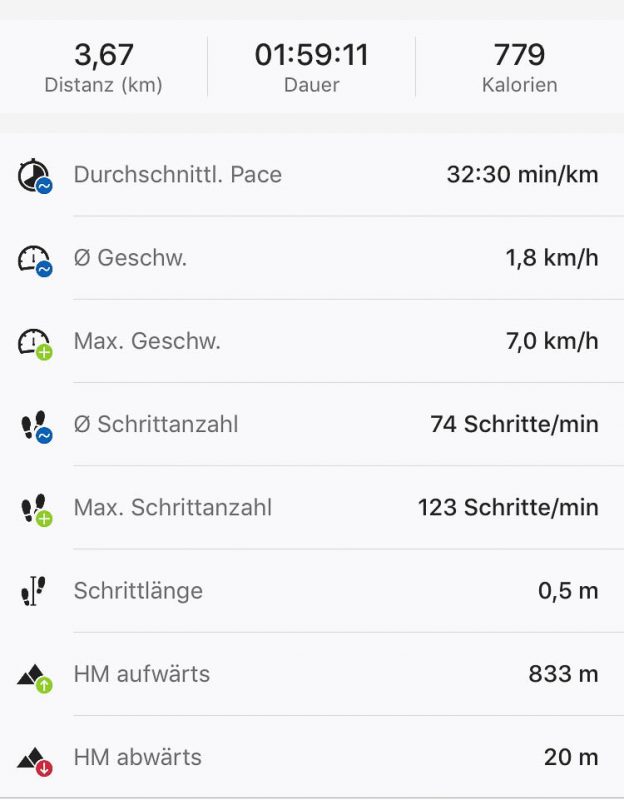 Nach der Tour entspanne ich mich mit Yogaübungen, danach geht es an den Esstisch. Mein heutiger Speiseplan: