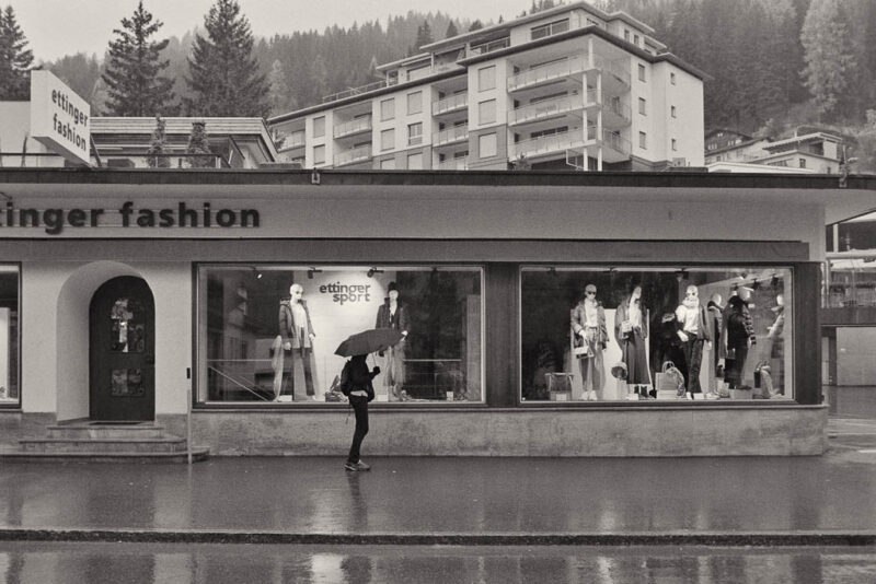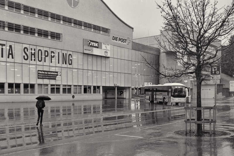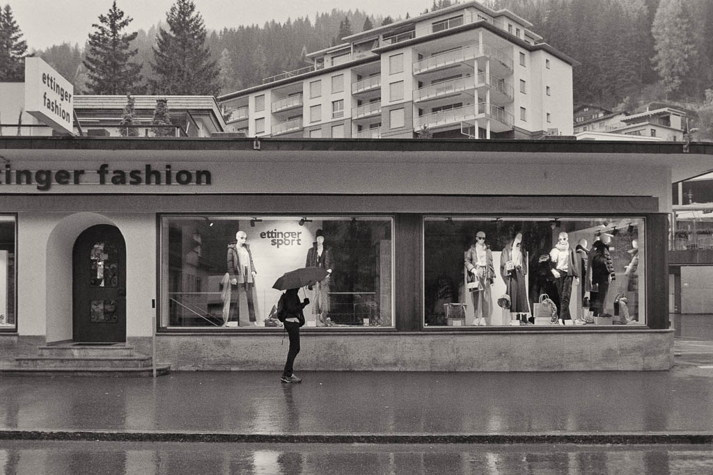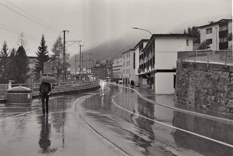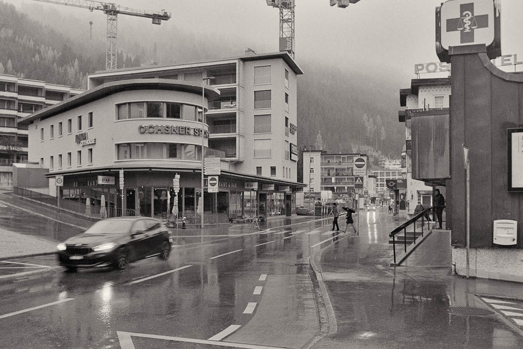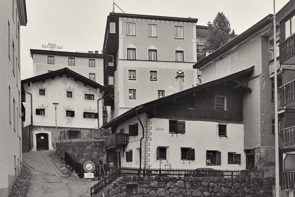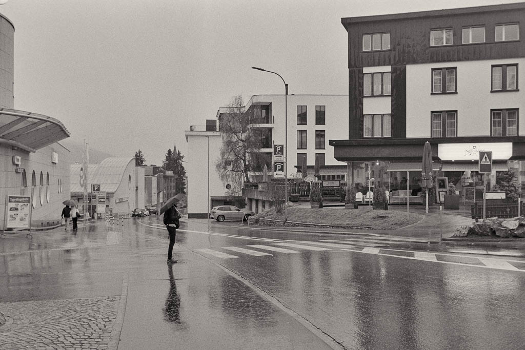 Archiv für die Kategorie ‘Wandern’Ein feuchtkalter Herbsttag in Davos: Im Tal fällt Regen, nur wenige hundert Höhenmeter höher verwandelt sich das Grau bereits in Schnee. Im Zentrum ist es still, kaum jemand ist unterwegs, es ist Nebensaison. Diese sieben Schwarzweißaufnahmen fangen die Stimmung des Tages ein: Auch ein grauer Novembertag hat seine Schönheit, leise, unscheinbar und doch berührend. PS: Die Aufnahmen entstanden mit der Nikon FM2n und einem 35-mm-Objektiv auf AgfaPan 400, entwickelt in Diafine. Wir spazieren heute von Lenz Barbatschauns zum Aussichtspunkt „Crap la Tretscha“. Auf dem ersten Bild sind im Hintergrund der Piz Mitgel, rechts die Baseglia Viglia (rumantsch für „alte Kirche“) und links der Bildmitte die Pfarrkirche “St. Antonius von Padua“ zu sehen: Blick auf Piz Toissa (rechts) sowie auf Piz Arlos, Piz Arblatsch und Piz Forbesch in der Bildmitte: Piz Linard und Lenzer Horn: Auf dem Weg nach Crap la Tretscha, im Hintergrund die Bergüner Stöcke: Über vereiste Waldwege: Beim Aussichtspunkt „Crap la Tretscha“: Eigentlich wollen wir von hier nach Tschividains weitergehen, doch dieser Weg ist wegen Holzarbeiten gesperrt. Daher kehren wir über Munter und die Biathlon Arena zu unserem Ausgangspunkt zurück: Kurz vor der Biathlon Arena: Es ist ein kurzer, aber stimmungsvoller Spaziergang mit herrlichen Ausblicken auf die Gipfel rund um Lenz. Die winterlichen Spuren und das Spiel von Sonne und Schatten verleihen der Landschaft eine stille, klare Stimmung – ein schöner Vorgeschmack auf die kommende Wintersaison. Der Winter rückt näher: In der Nacht ist die Schneefallgrenze bis auf etwa 1800 Meter gesunken. Um ein wenig Winterluft zu schnuppern, wandere ich heute von Schmitten (Albula), das auf rund 1300 Metern liegt, über Acla und Raglauna nach Zaplina auf etwa 2000 Metern, in der Hoffnung auf reichlich Schneekontakt. Während des Aufstiegs von Schmitten Dorf nach Acla nieselt es leicht, kurz unterhalb von Acla geht der Regen in Schnee über, und man sieht die ersten weißen Spuren im Gelände: So sieht es bei Acla auf 1650 Metern aus: Von Acla aus geht es etwa 300 Meter flach weiter Richtung Raglauna, dann beginnt der steile Weg hinauf. Die durchschnittlichen Steigung beträgt 23 %. Ein Blick zurück, hier liegt bereits etwas mehr Schnee: Zum Glück ist das steile Wegstück nur etwa 600 Meter lang, sodass man Raglauna rasch erreicht: Bei schönem Wetter hat man von hier einen wunderbaren Blick auf Schmitten, heute jedoch verhüllen Wolken die Landschaft. Von Raglauna führt ein rund 1,5 Kilometer langer Wanderweg mit einer durchschnittlichen Steigung von 13 % bis nach Zaplina. Der Weg ist heute weitgehend schneebedeckt: Hier kann ich endlich richtige Winterluft schnuppern! Ankunft bei Zaplina: Von hier führt ein sehr steiler Weg hinauf zu den Erzgruben. Ich versuche ein kurzes Stück, doch der Schnee erschwert den Aufstieg, und als der Schneefall zunimmt, kehre ich um und gehe nach Zaplina zurück: Anschließend folge ich dem Wanderweg Richtung Schmittner Alp. Ankunft an der Schmittner Alp: Hier schneit es heftig, doch beim Blick hinauf zur Alp Afiein zeigt sich sogar blauer Himmel: Auch Richtung Davos Wiesen wirkt es deutlich freundlicher: Blick auf Hüreli und Wiesner Alp: Als ich bei den Hütten der Schmittner Alp ankomme, hört der Schneefall auf: Auf dem Weg von der Schmittner Alp nach Pardela: Das Wechselspiel von Wolken und Sonne schafft eine ganz besondere Stimmung, die ich sehr genieße! Bis Pardela ist der Winter noch nicht vorgedrungen, hier ist alles grün: Auf dem Weg von Pardela hinunter nach Schmitten: Der Blick vom Wanderweg Richtung Jenisberg: Kurz vor Schmitten: Ankunft im herbstlichen Dorf: Mein Fazit: Toureninfos: