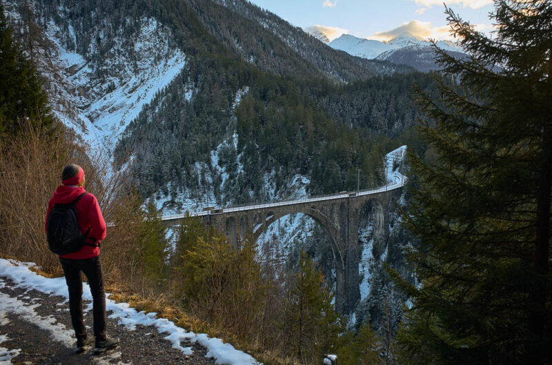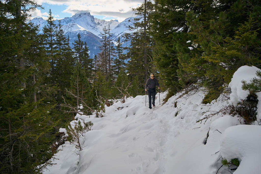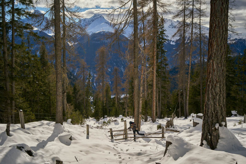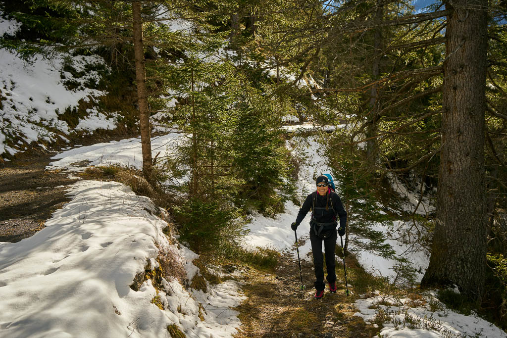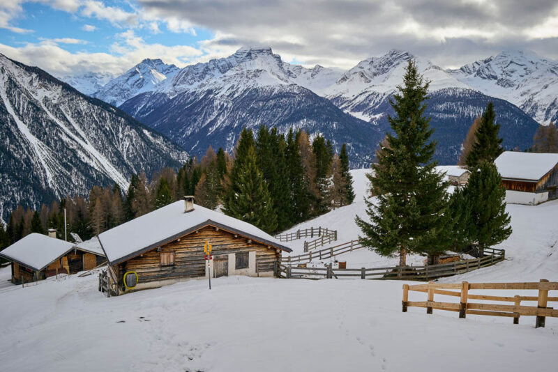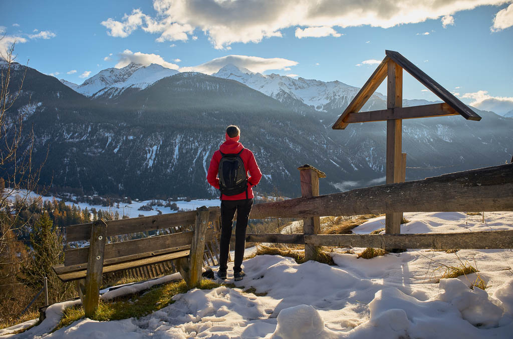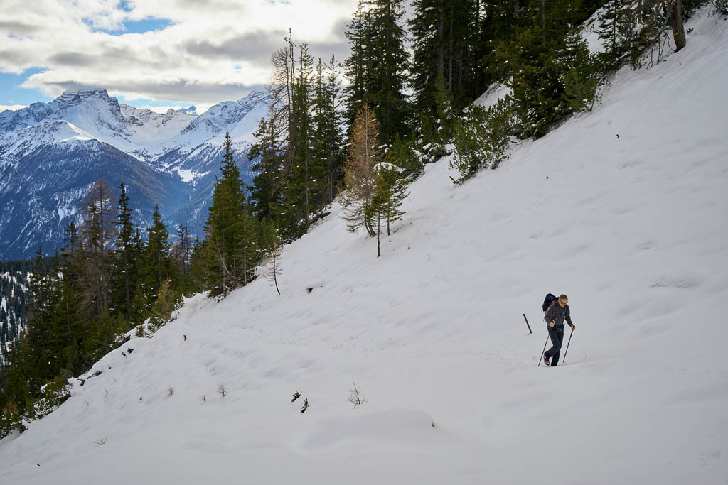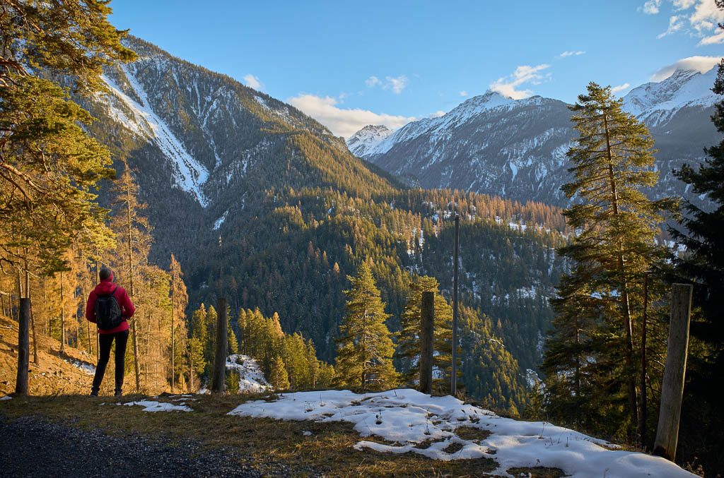 Archiv für die Kategorie ‘Schweiz’Der Schnee rund um Schmitten schmilzt aufgrund milder Temperaturen und Sonnenschein langsam, und im Dorf ist vom Winter kaum noch etwas zu sehen. Um dennoch in den Genuss einer echten Winterlandschaft zu kommen, steigen wir heute in die höheren Lagen auf. Zunächst wandern wir hinauf nach Acla: Ankunft bei Acla: Von Acla führt ein steiler Wanderweg direkt hinauf nach Zaplina: Bei Zaplina zeigt sich der Winter dann in voller Pracht, die Hänge sind tief verschneit: Von Zaplina aus queren wir hinüber zur Schmittner Alp: Wir haben zwar Schneeschuhe dabei, doch auch wenn wir hin und wieder einsinken, lässt sich der Weg noch gut ohne zusätzliche Ausrüstung bewältigen: Ankunft oberhalb der Schmittner Alp: Von hier sind es nur noch wenige Schritte hinauf zur Alp Afiein. Der Blick über die verschneiten Weiden der Alp: Anschließend laufen wir gemütlich über den Fahrweg hinunter zur Schmittner Alp: Hütten der Schmittner Alp: Von dort geht es weiter nach Pardela: Und schließlich laufen wir über den alten Pardelaweg zurück nach Schmitten. Mein Fazit: Toureninfos: