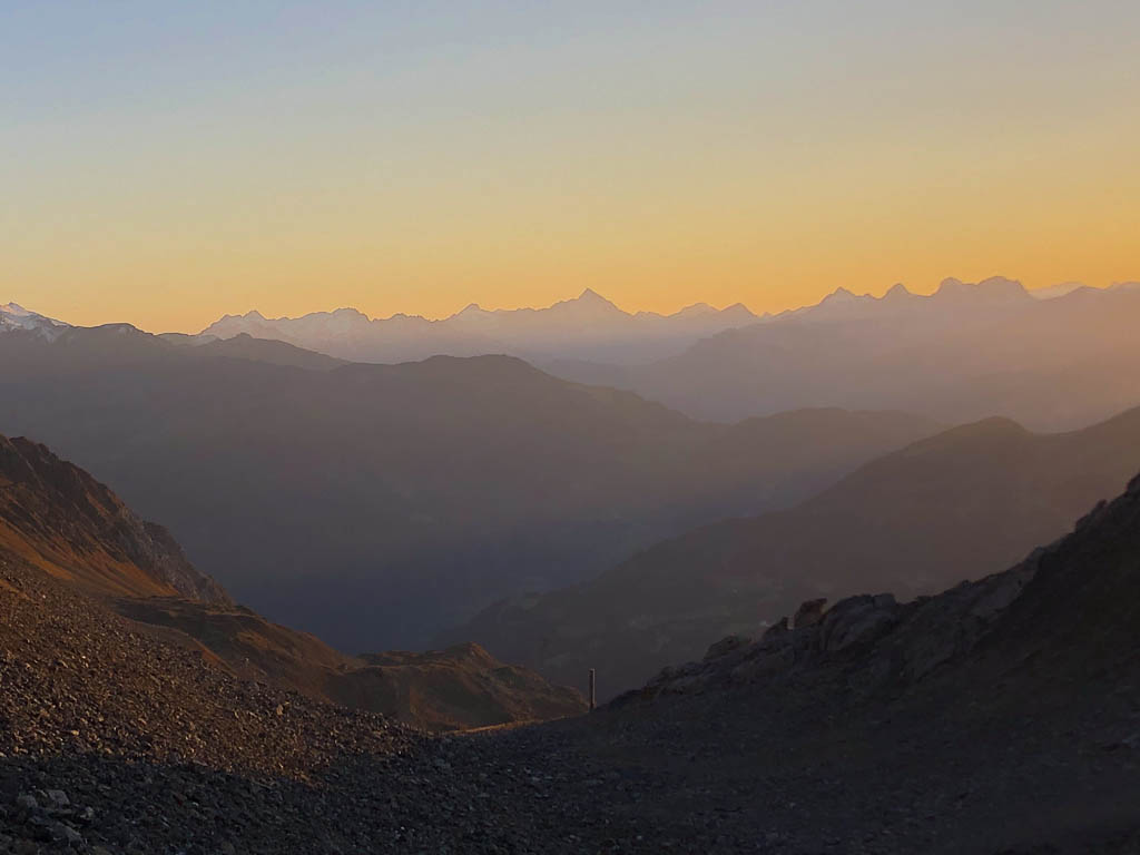 Unser heutiges Tourenziel ist das Gipshorn, das wir vom Gipfel des Crachenhorns schon einmal von weitem bewundern konnten: