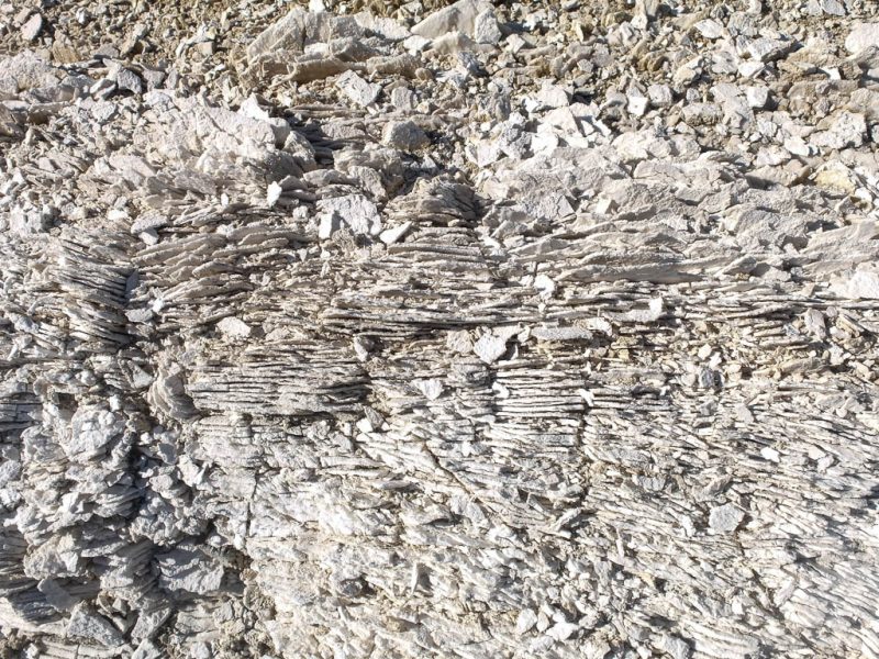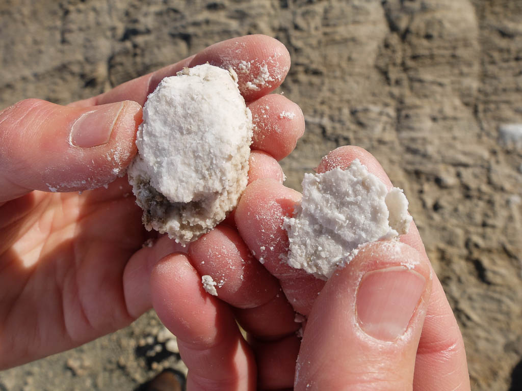 Gips, geologisch auch Gipsspat genannt, ist chemisch ein Calciumsulfat-Dihydrat. Gips zerbröselt nicht nur beim Darüberlaufen, man kann ihn sogar mit den Fingern zerbrechen: