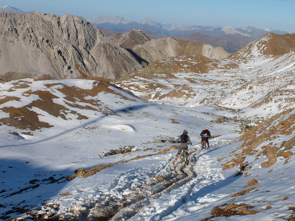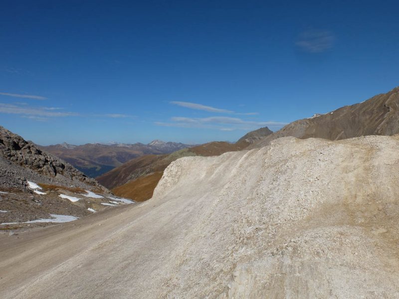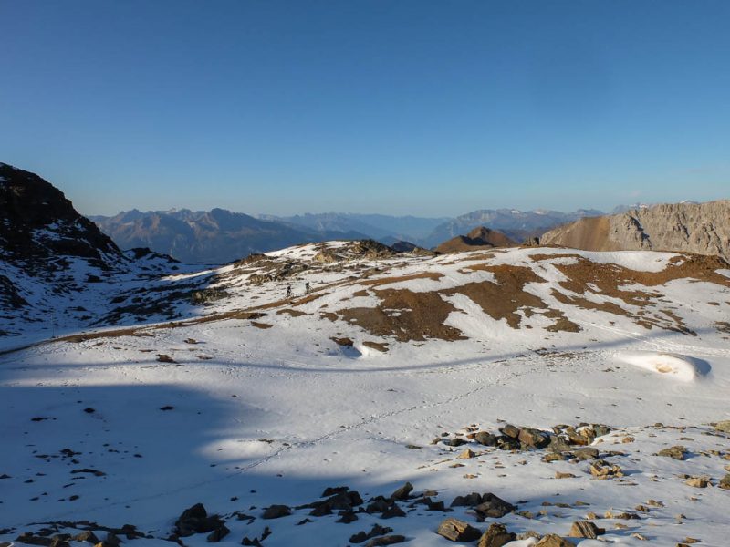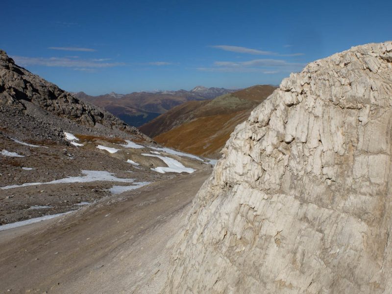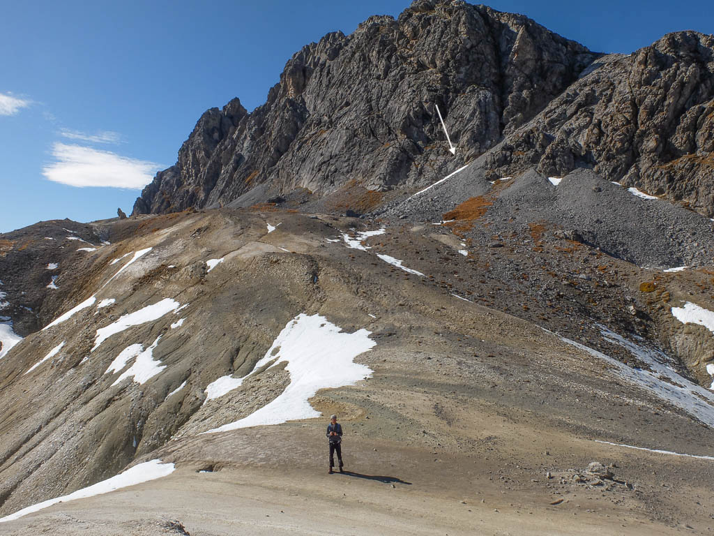 Der Berg im Hintergrund ist das Chrachenhorn. Irgendwann liegt dann tatsächlich kein Felsen mehr unter unseren Füßen, sondern Gips: