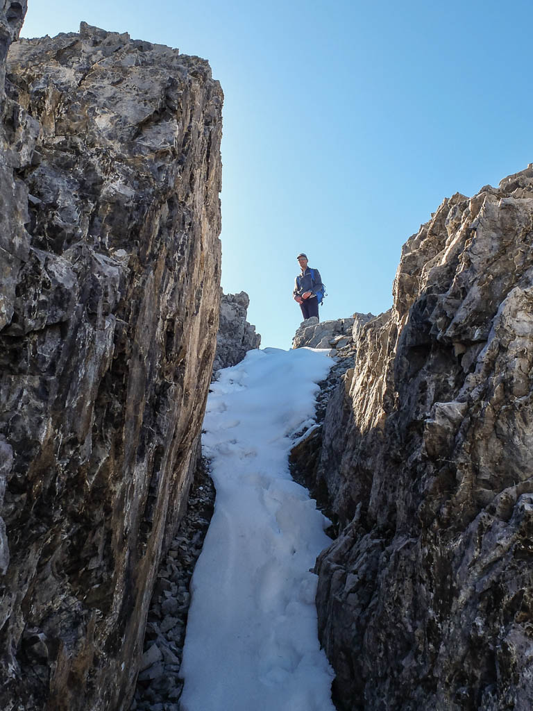 Ich bin begeistert, denn ich liebe Kaminkletterei. Weniger begeistert bin ich, als ich sehe, wie es nach dem Kamin weitergeht: