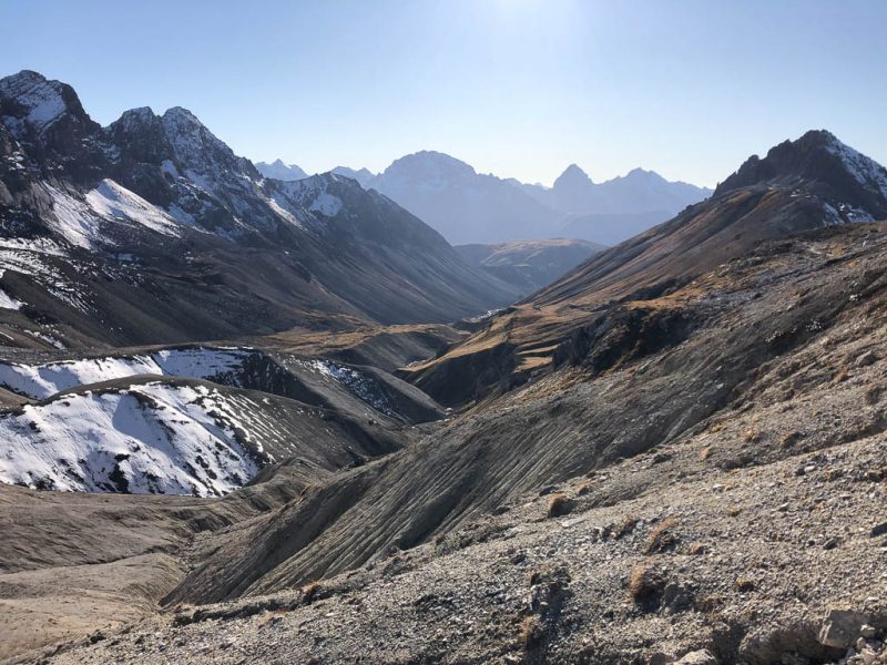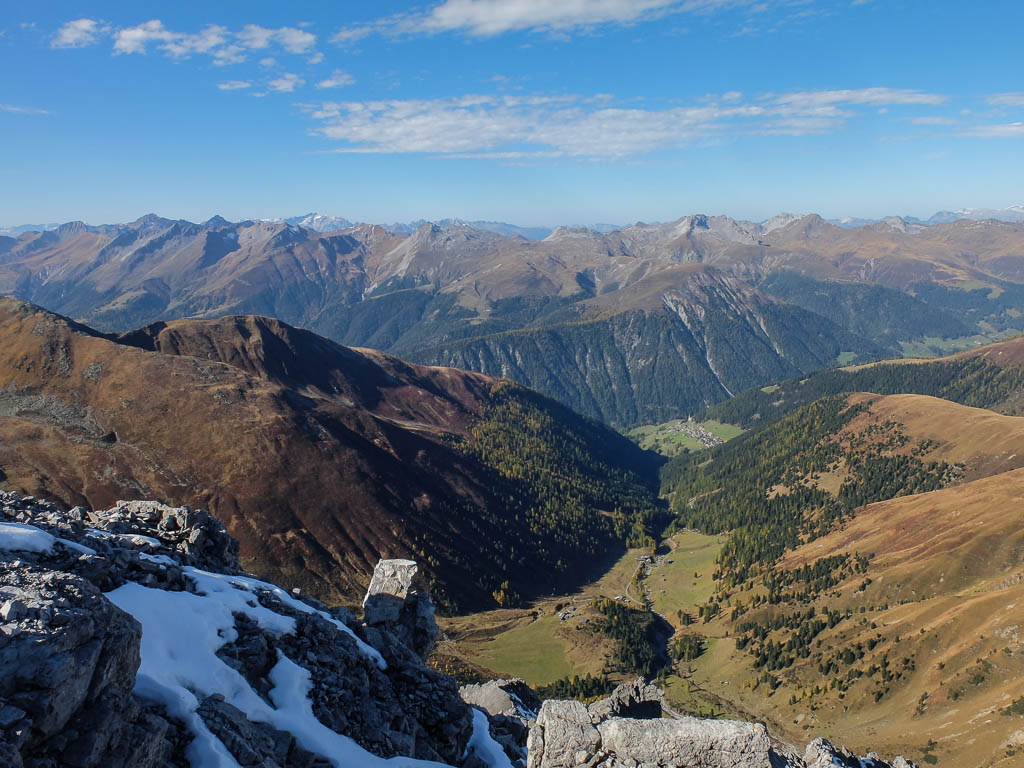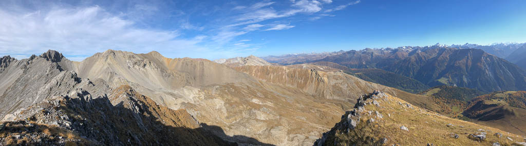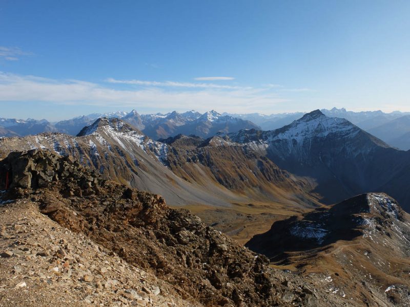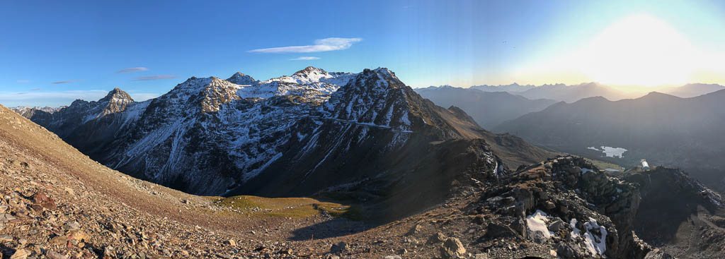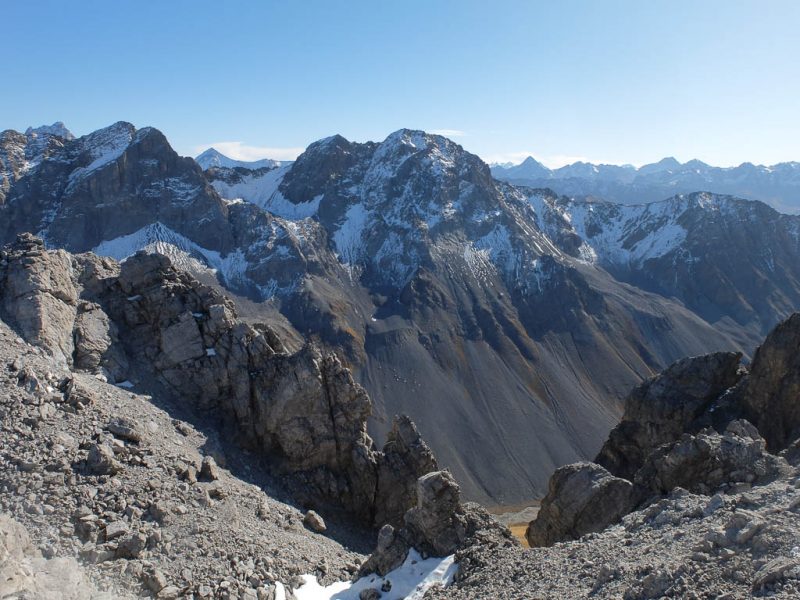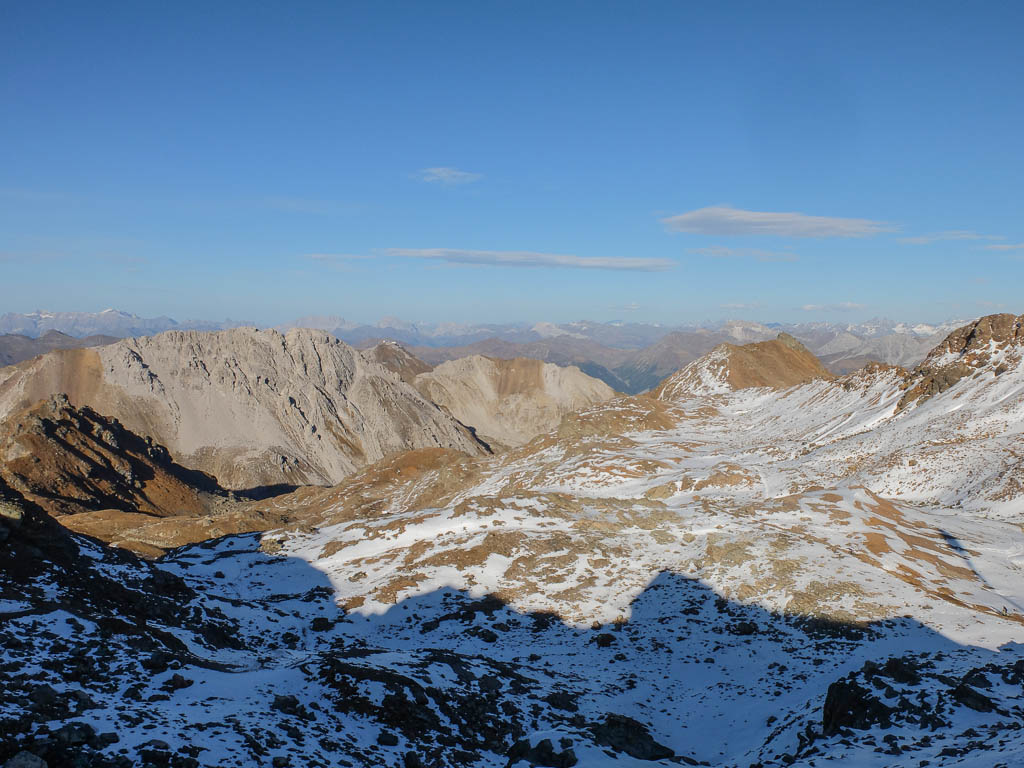 Der Blick von der Ducanfurgga über das Val da Stugl, im Hintergrund liegen die Bergüner Stöcke: