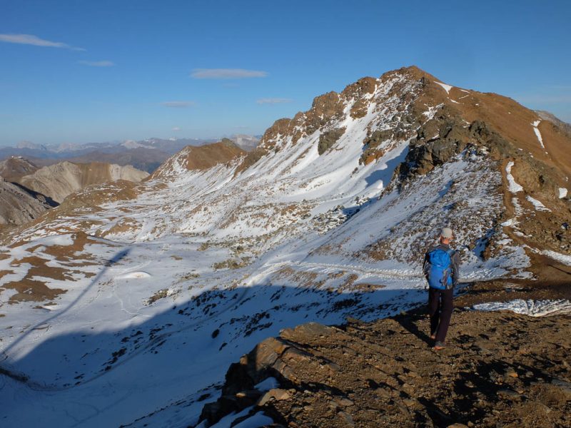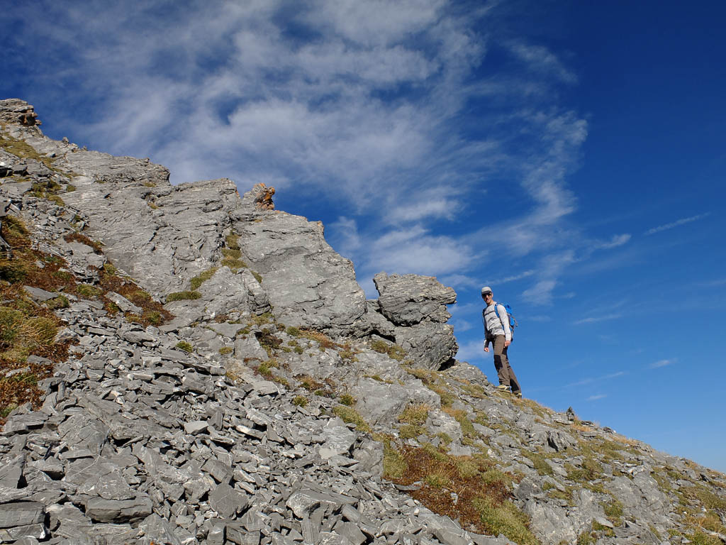 Aber schließlich stehe auch ich auf dem Nordostgrat und kann den weiteren Aufstiegsweg begutachten. Er sieht von unten betrachtet eigentlich ganz sympathisch aus: