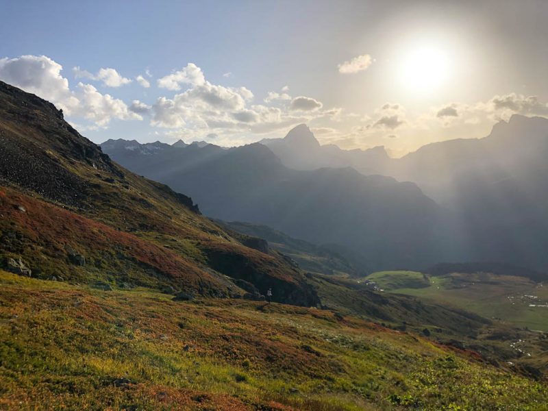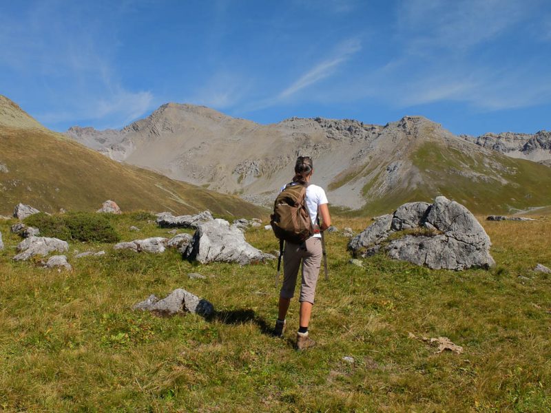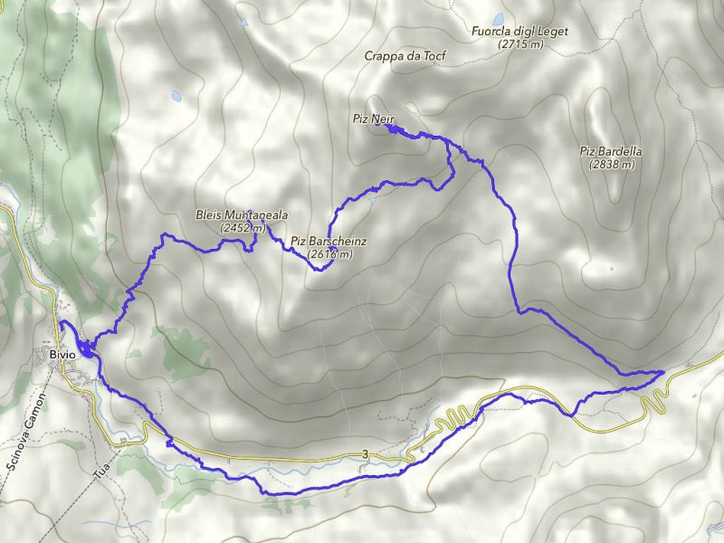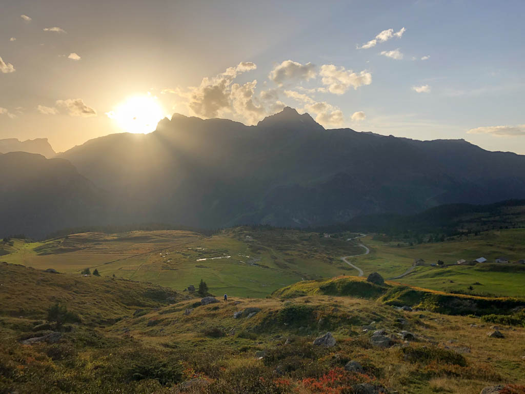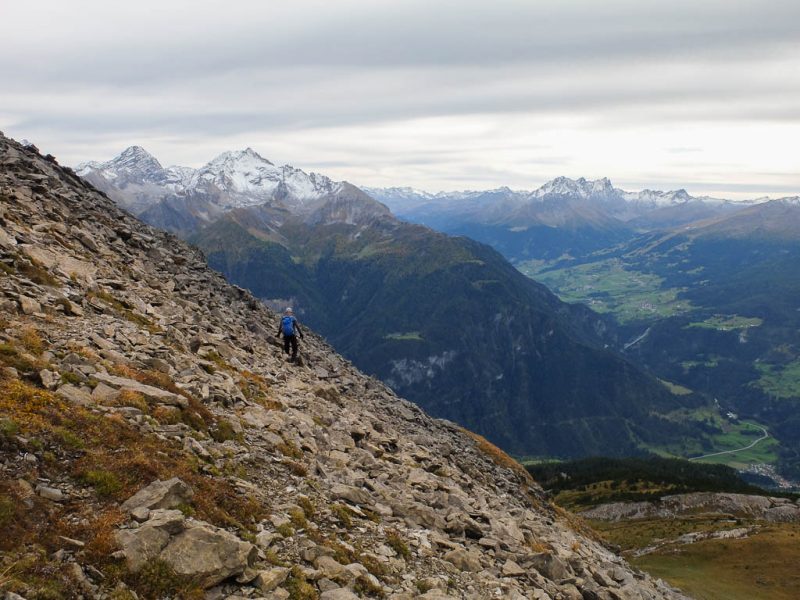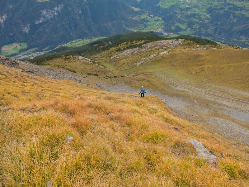 Der Weg zurück nach Bivio zieht sich ziemlich und ist streckenweise nicht sehr angenehm zu begehen: Er ähnelt mehr einem Trampelpfad für Kühe als einem Wanderweg. Aber auch dieser Weg hat mal ein Ende: Acht Stunden nach Beginn dieser fantastischen Drei-Gipfel-Tour stehen wir wieder vor unserem Auto. Weitere Daten der Tour: Länge 18 Kilometer, 1420 Höhenmeter. Die Tour in der Übersicht: