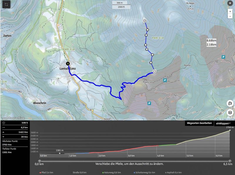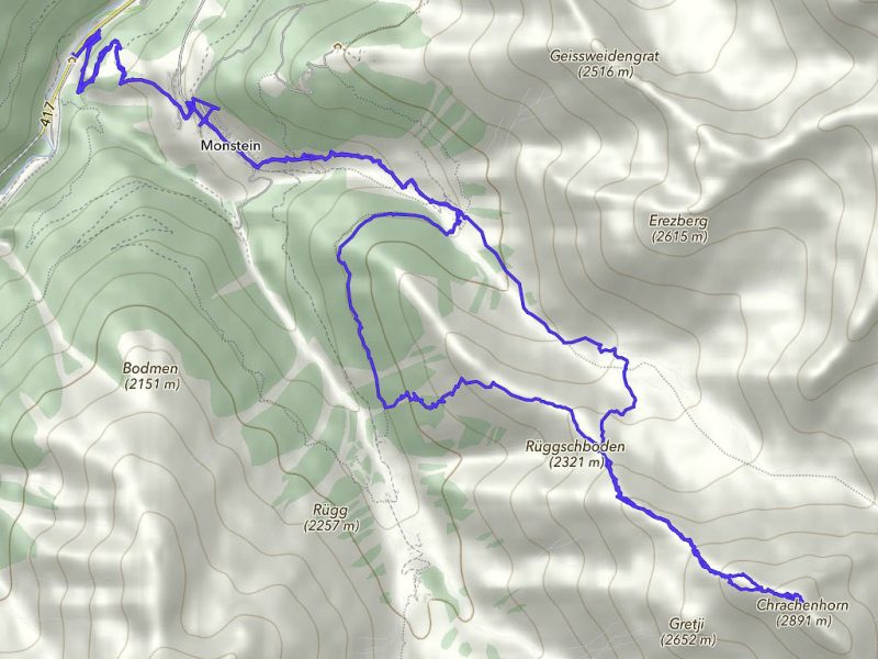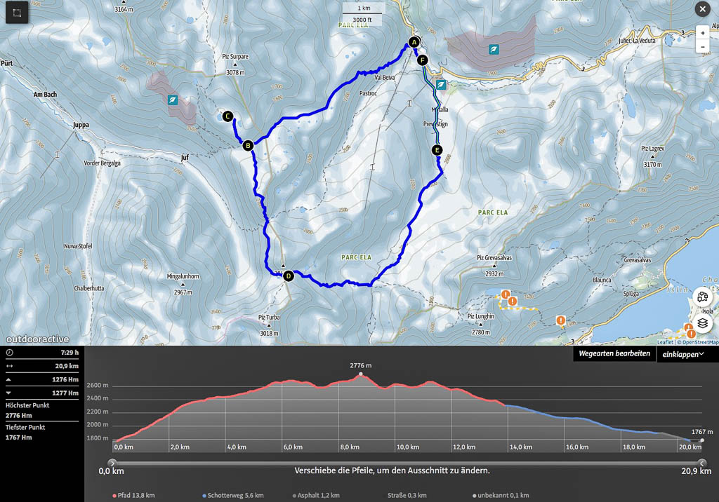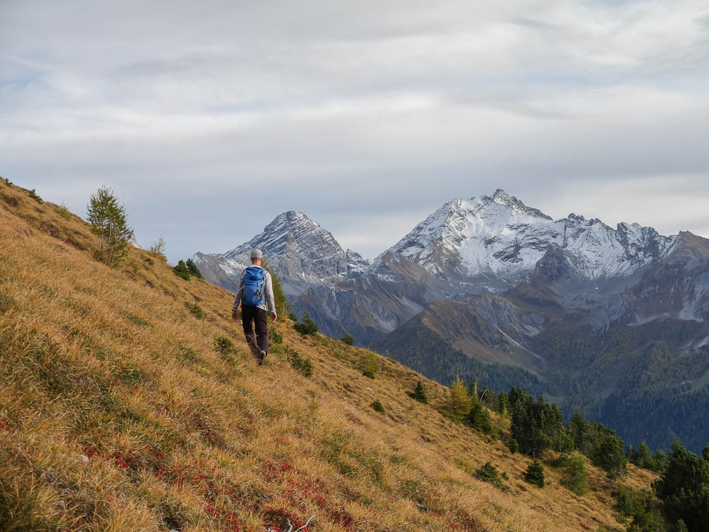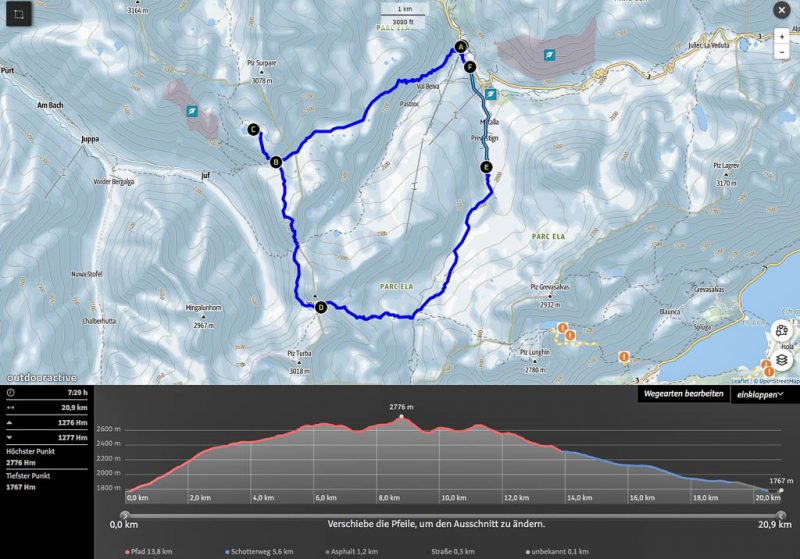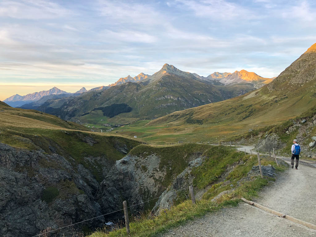Der Weg zurück nach Bivio zieht sich ziemlich und ist streckenweise nicht sehr angenehm zu begehen: Er ähnelt mehr einem Trampelpfad für Kühe als einem Wanderweg. Aber auch dieser Weg hat mal ein Ende: Acht Stunden nach Beginn dieser fantastischen Drei-Gipfel-Tour stehen wir wieder vor unserem Auto. Weitere Daten der Tour: Länge 18 Kilometer, 1420 Höhenmeter. Die Tour in der Übersicht:
