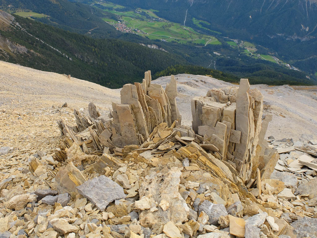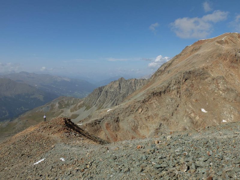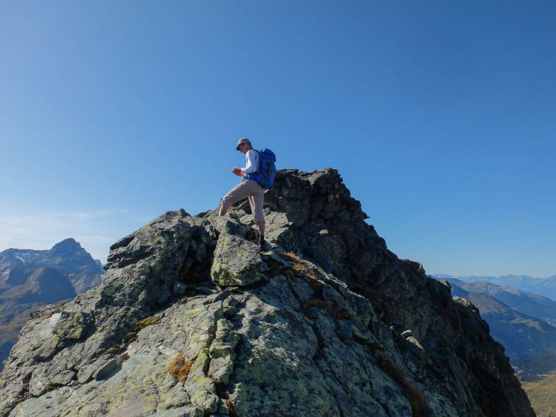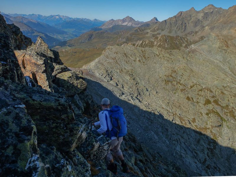 Wenn wir zurück in Oberstaufen sind, will ich mich näher mit der faszinierende Welt der Mineralien und Gesteine befassen. Über den Grat auf dem Weg zum felsigen Gipfel des Piz Barscheinzs:
