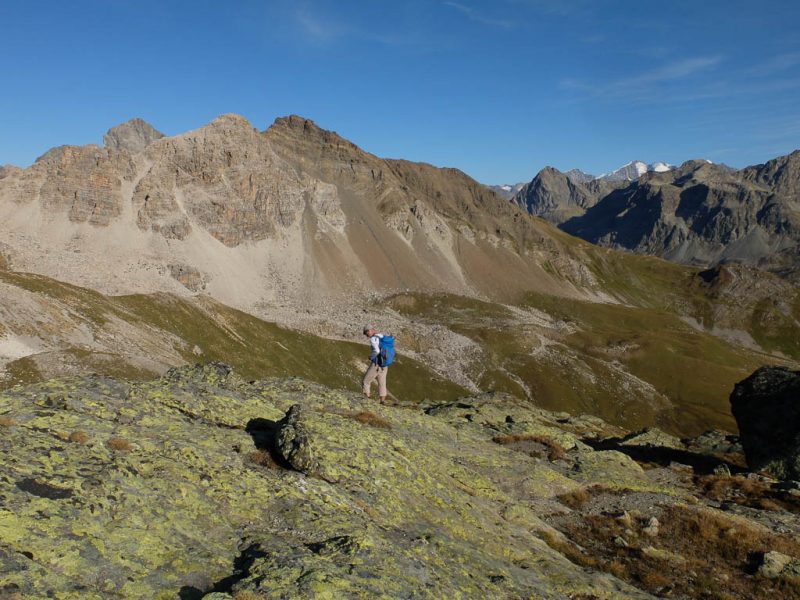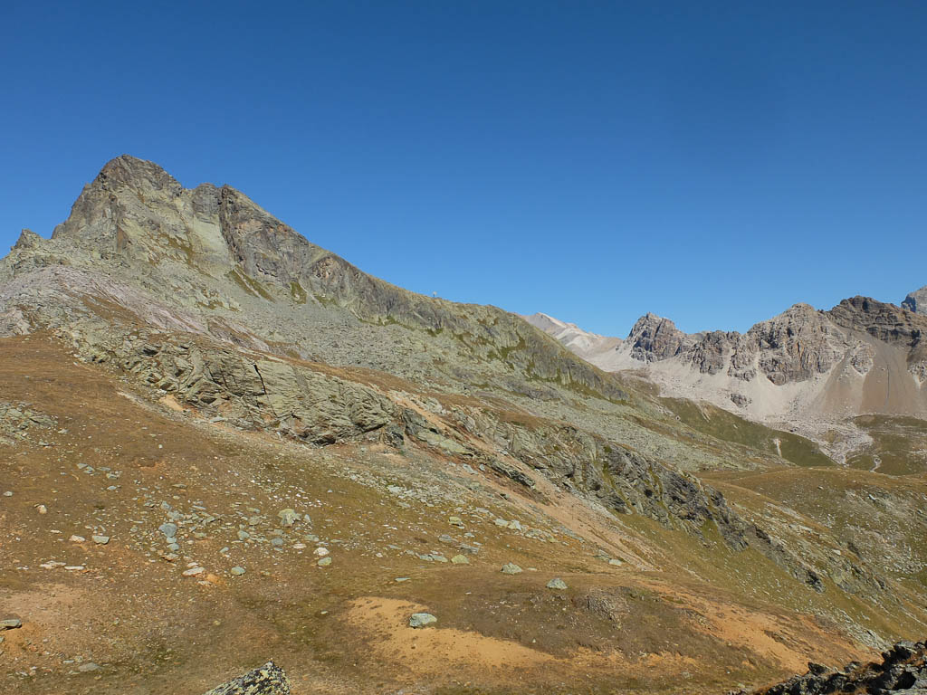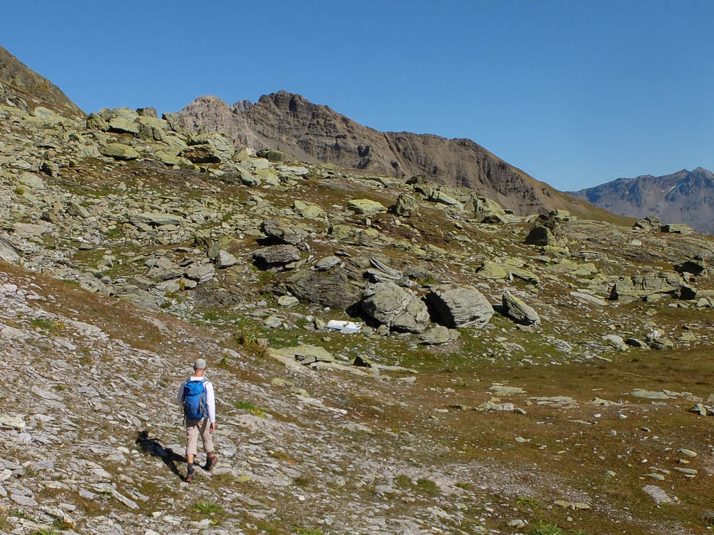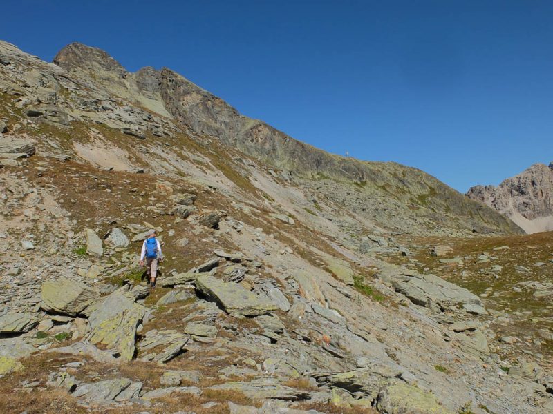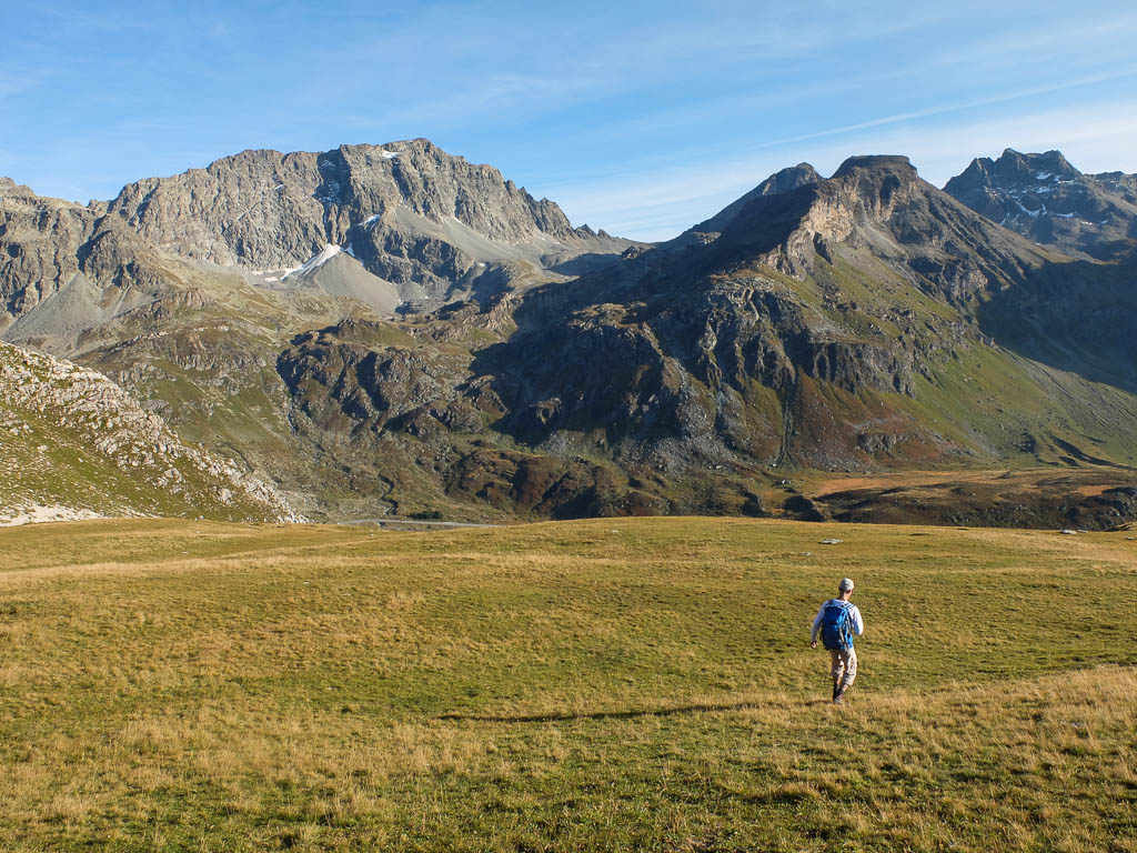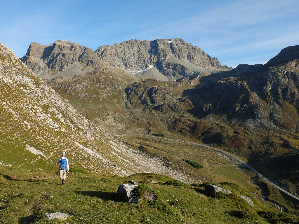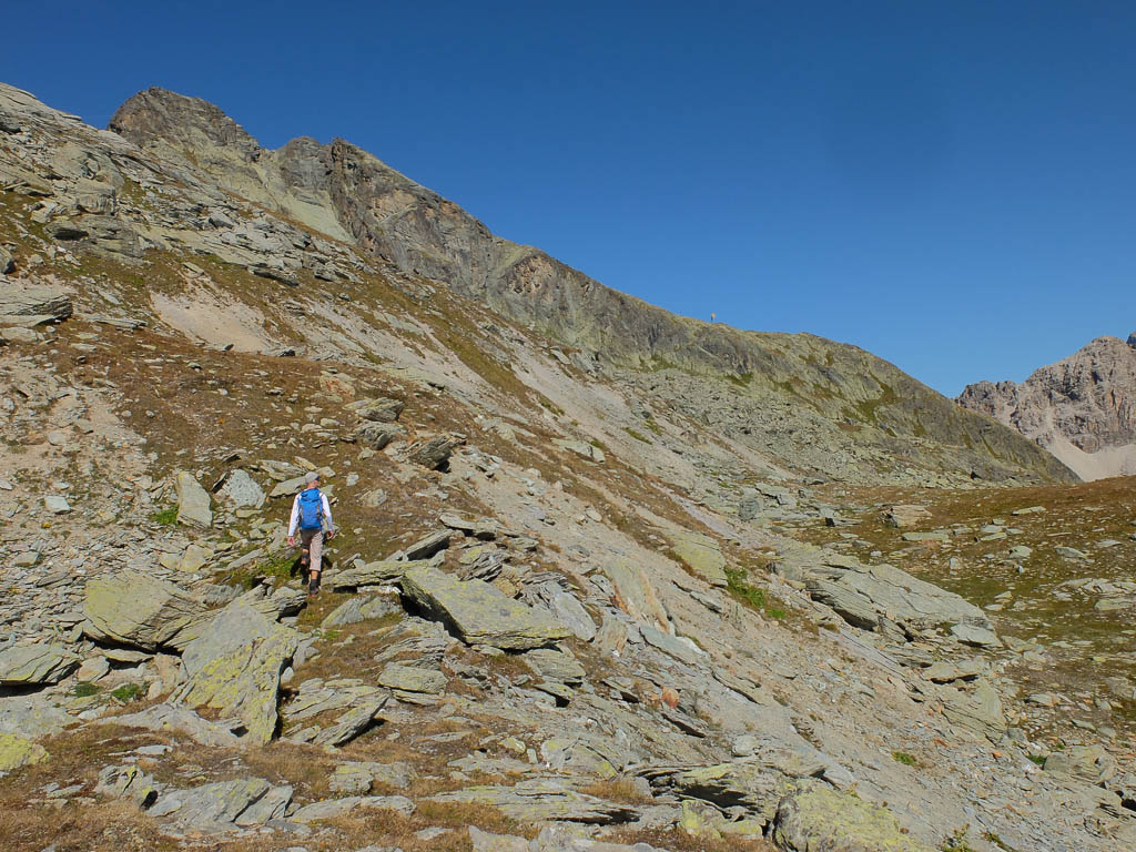 Nach Verlassen des Ostgrats steigen wir über die Hochebene von Vairana Richtung Südosten zur Julierpassstraße ab: