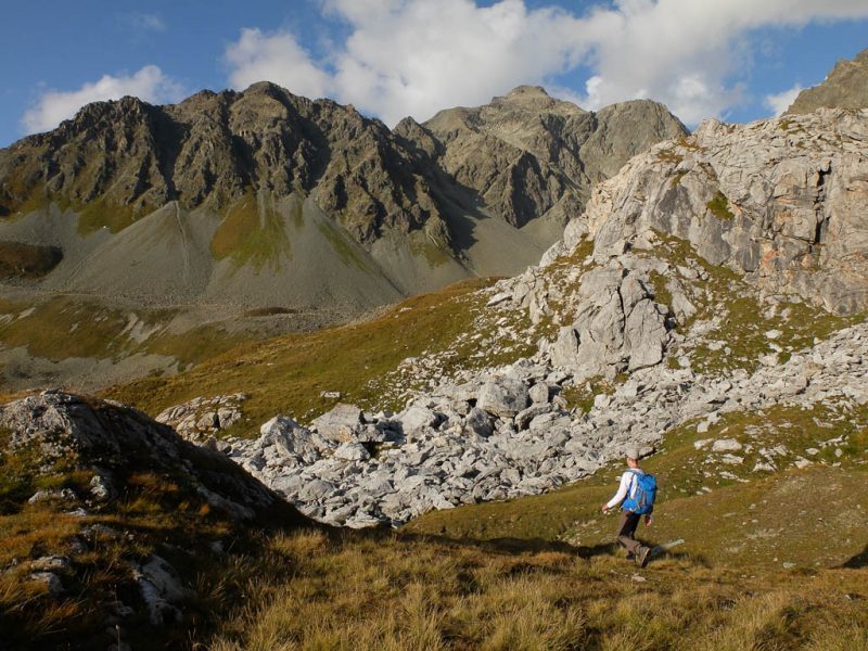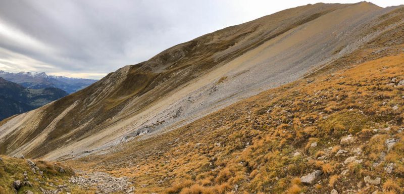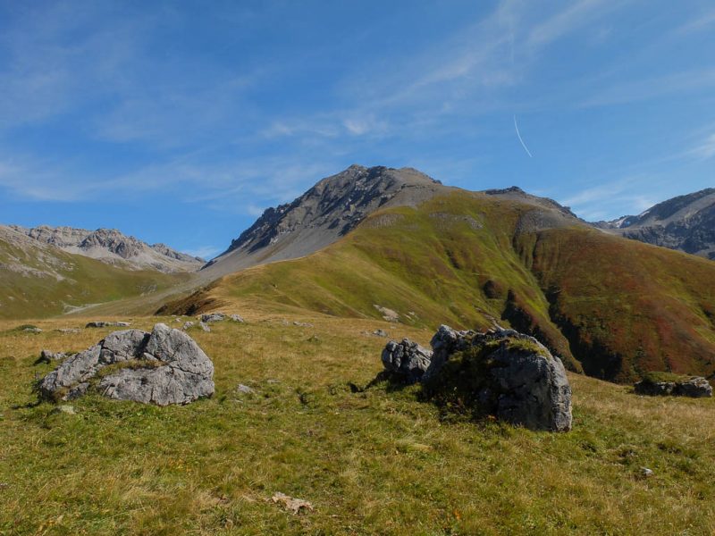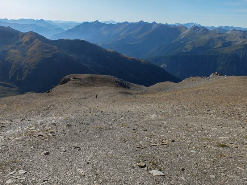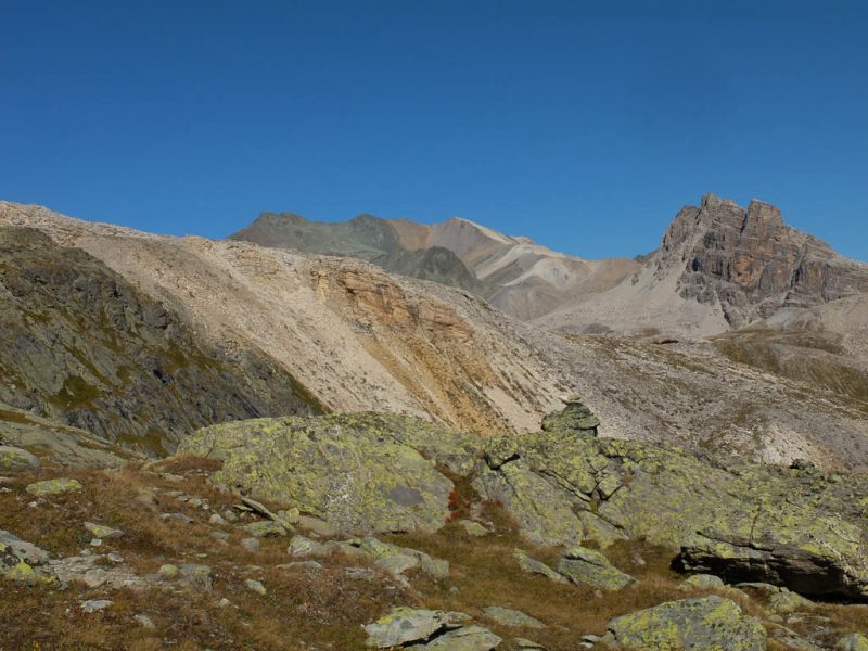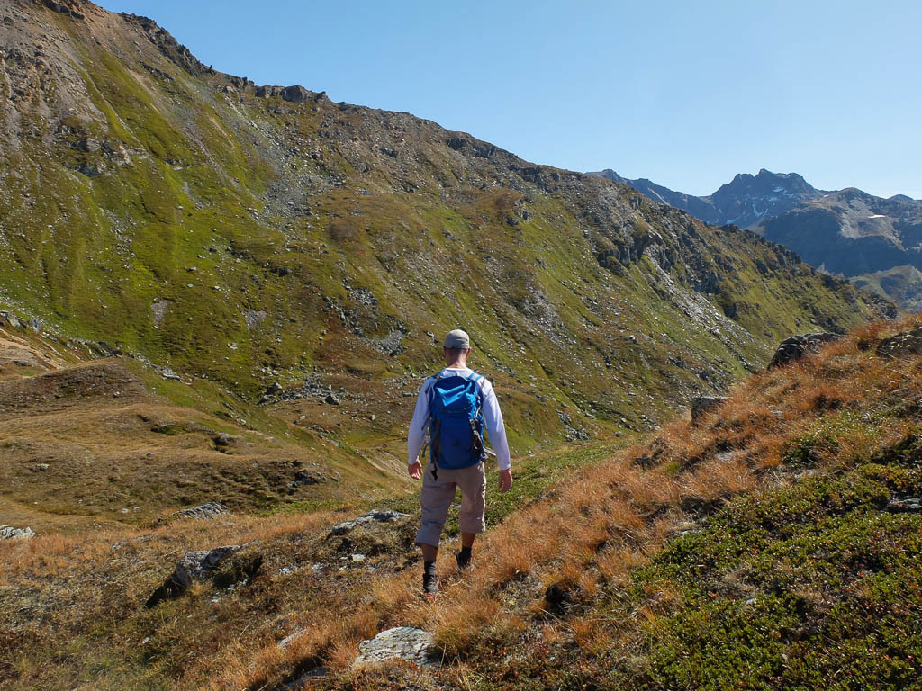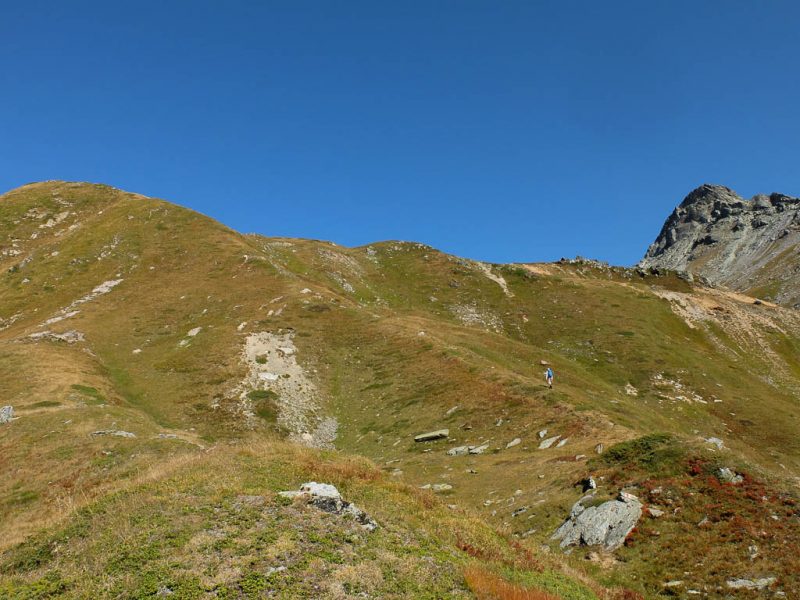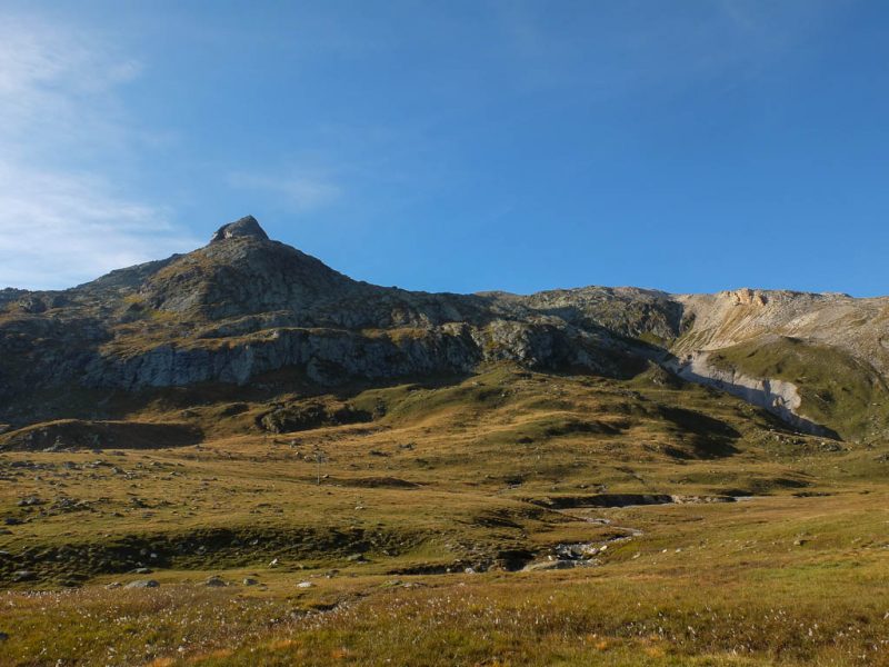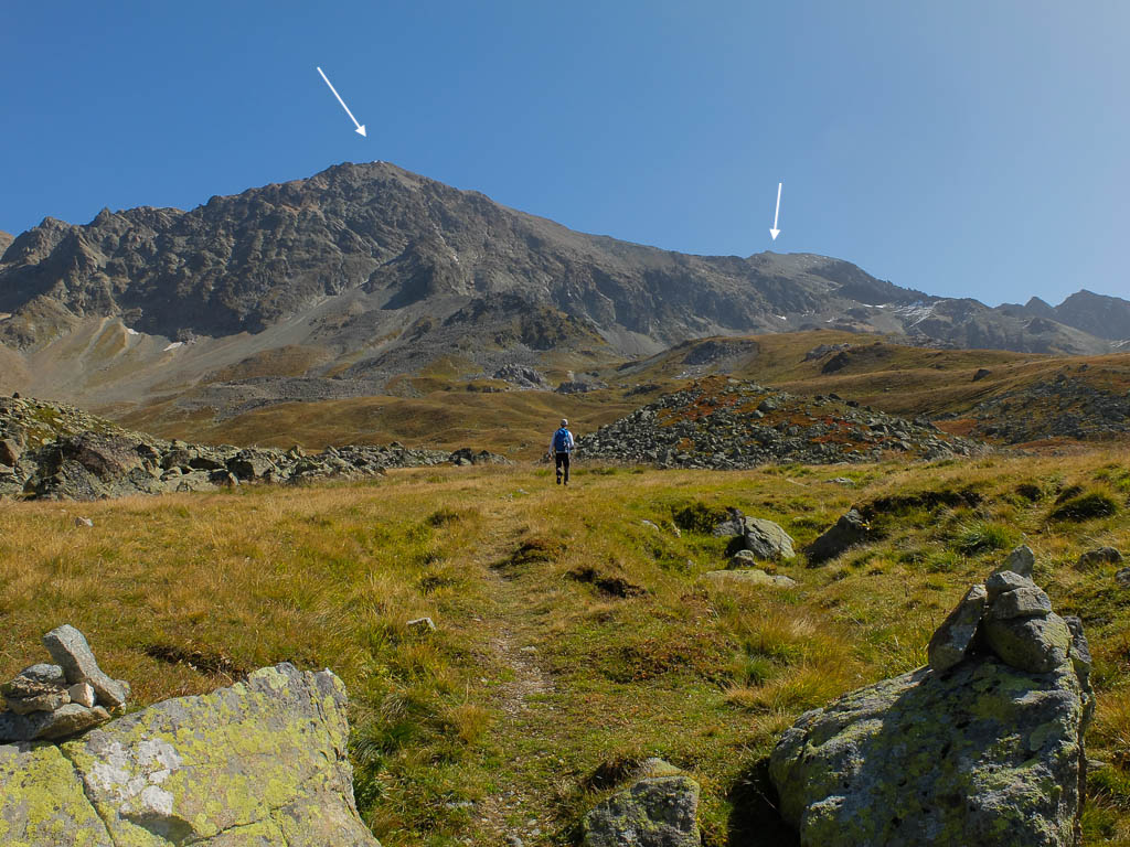 Nach Verlassen des Ostgrats steigen wir über die Hochebene von Vairana Richtung Südosten zur Julierpassstraße ab: