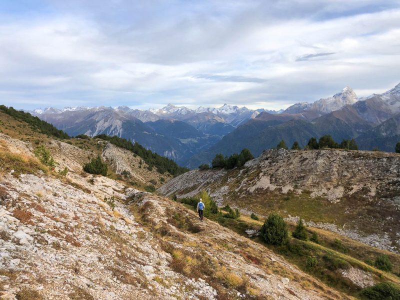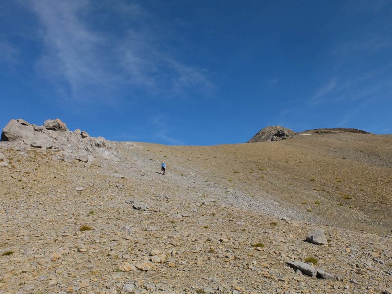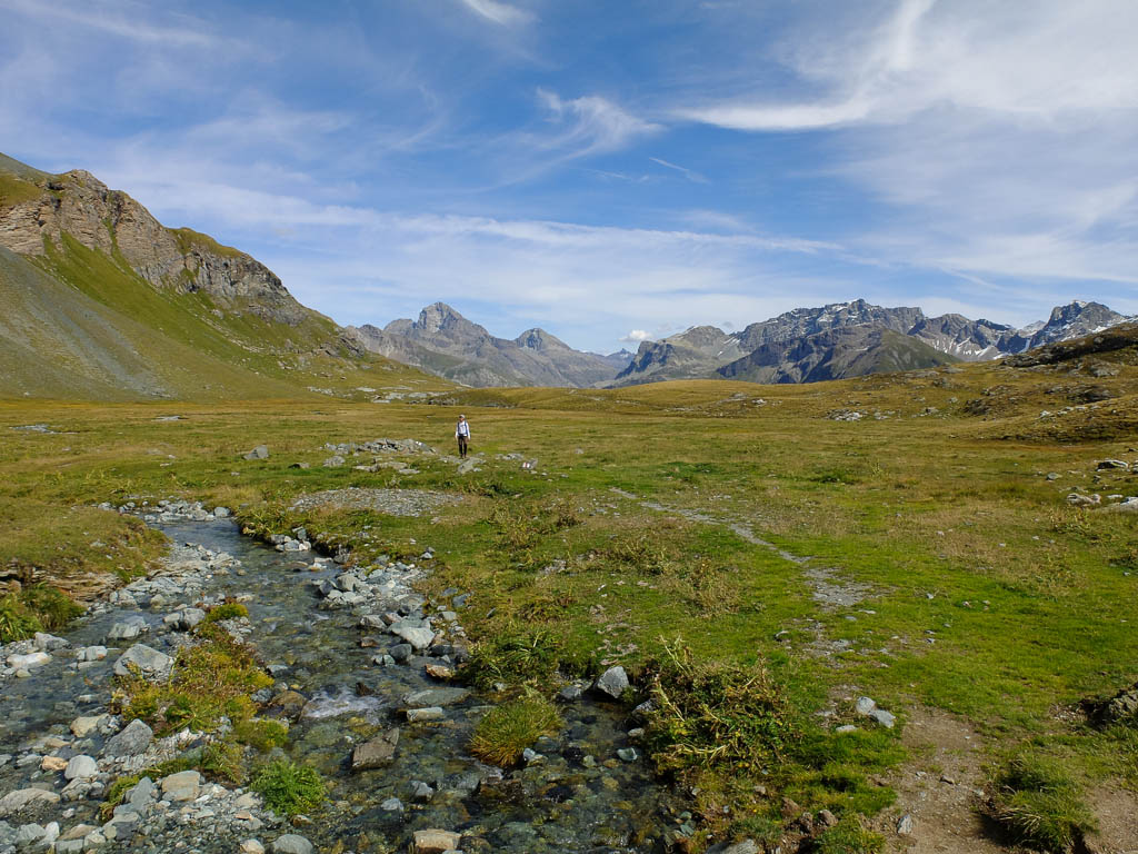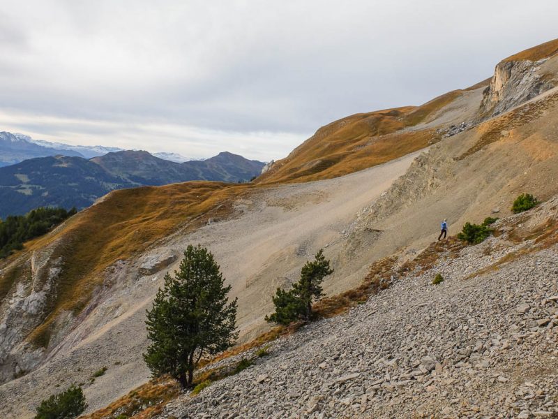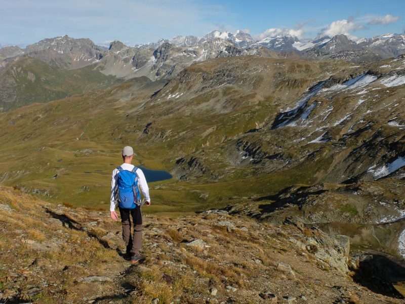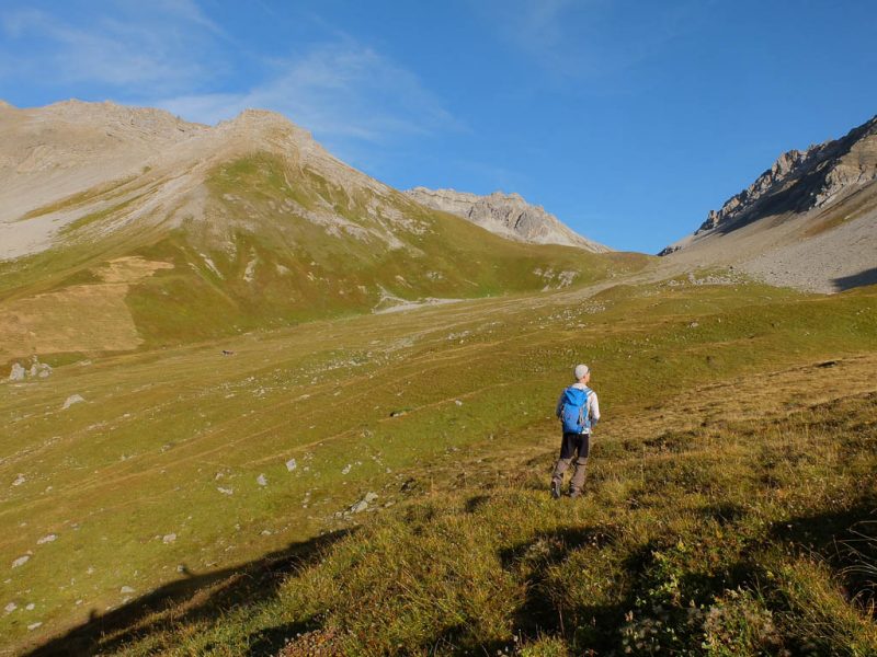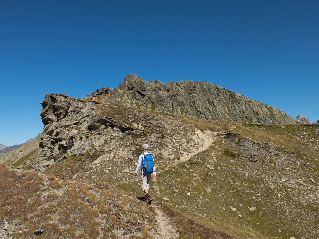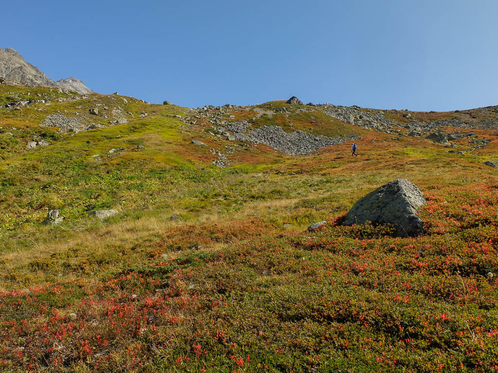 Nach Verlassen des Ostgrats steigen wir über die Hochebene von Vairana Richtung Südosten zur Julierpassstraße ab: