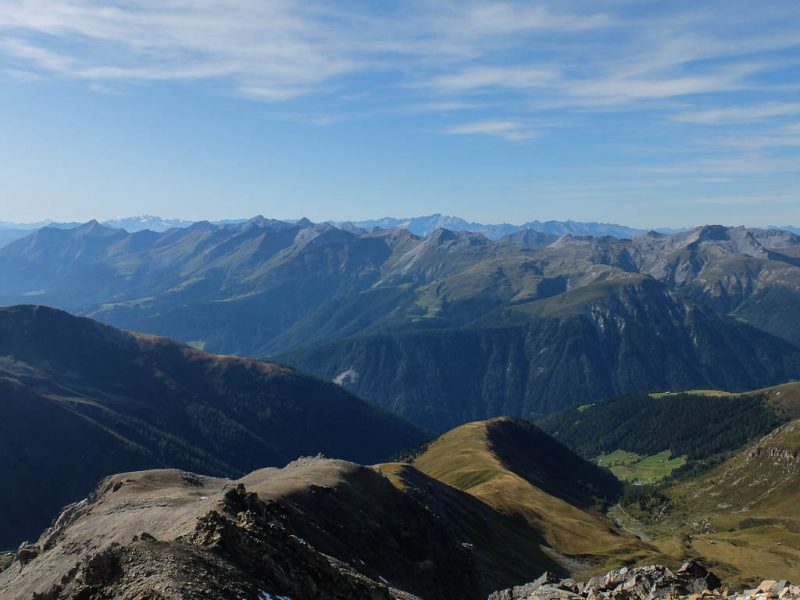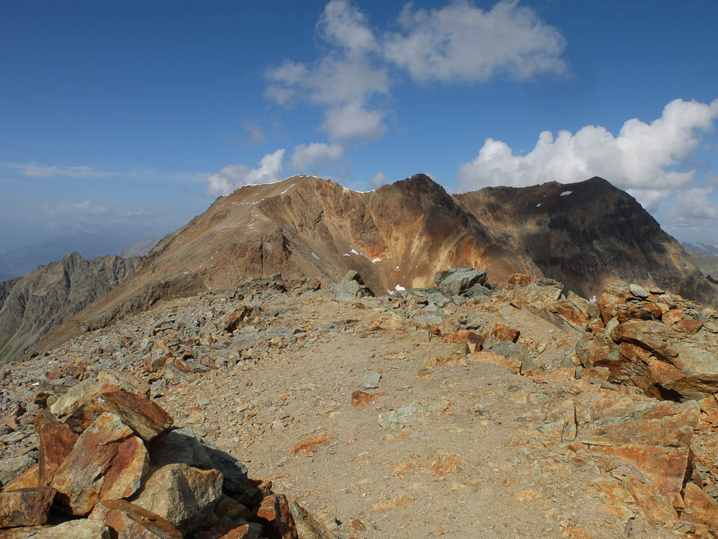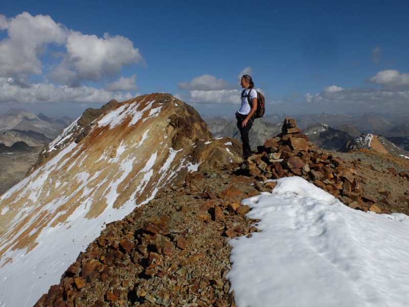 Schließlich ist es geschafft, wir stehen auf dem Gipfel des 2906 Meter hohen Piz Neirs. :sonne: Der Blick vom Gipfel Richtung Norden, links im Bild liegt der Piz Arblatsch, rechts das Tinzenhorn: