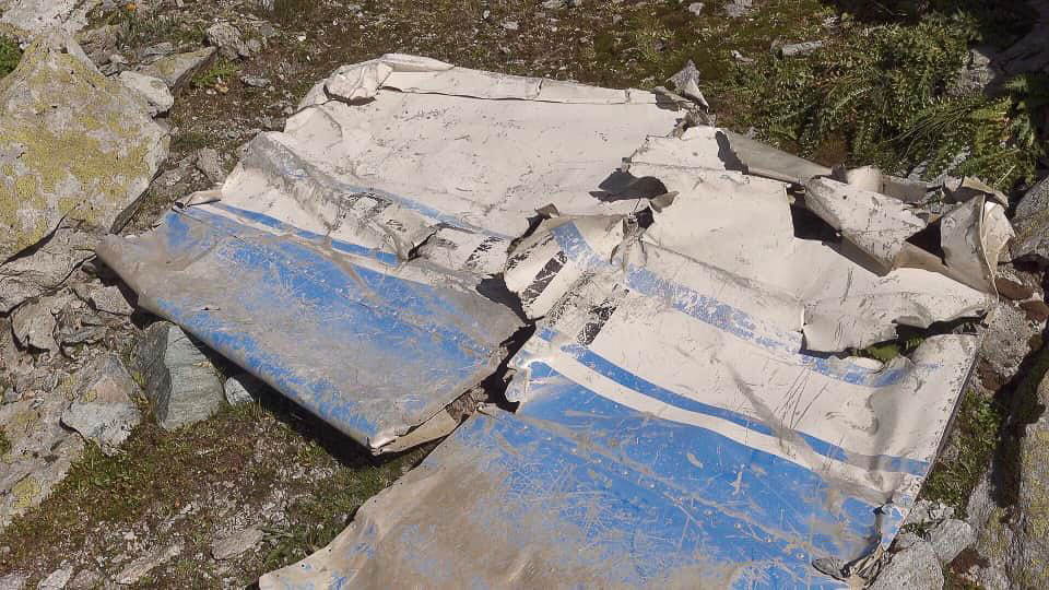 In der Nähe des Bergsees stoßen wir auf das Wrackteil eines Flugzeugs: