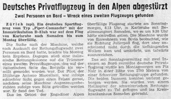 PS: Ein spannender Blick zum oben erwähnten Flugzeugabsturz auf einen Zeitungsartikel des Jahrs 1965: