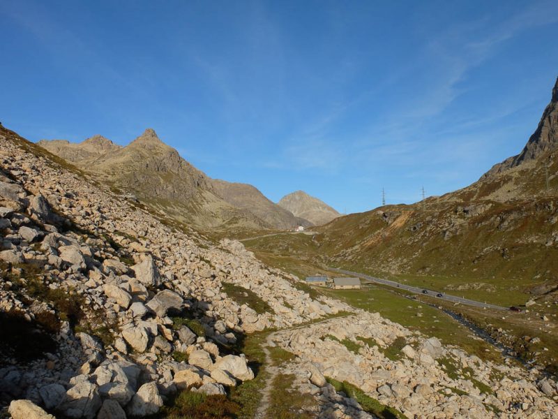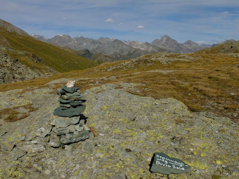 Von hier aus geht es dann auf einem Wanderweg parallel der Julierpassstrasse Richtung Westen zurück nach Bivio: