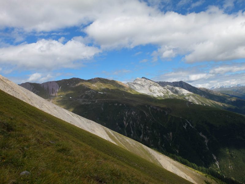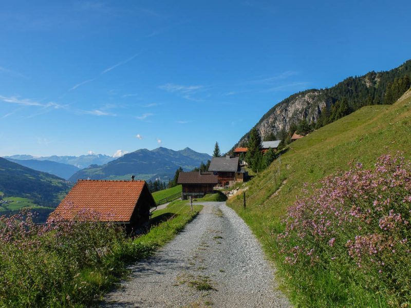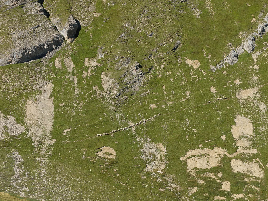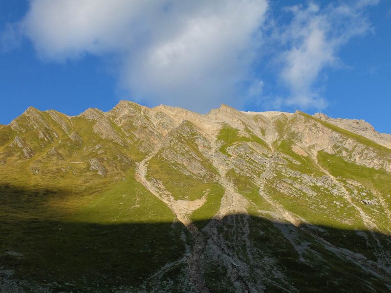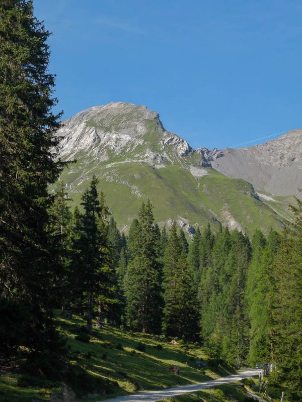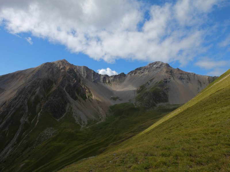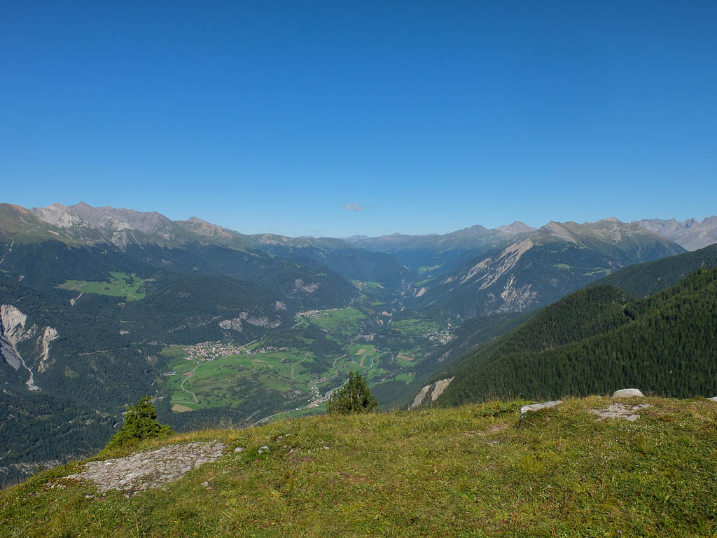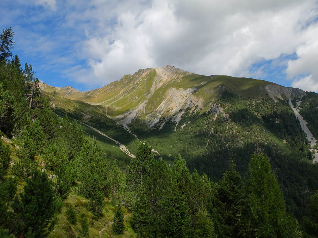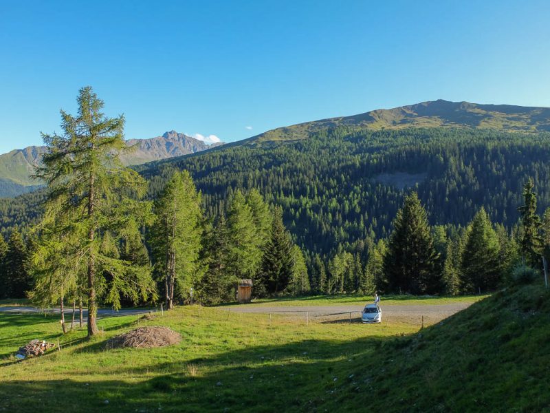 Heute steigen wir von Lenz aus über Vasternos nach Scasaluir, einer einsamen, auf rund 2200 Metern gelegenen Grasfläche an der Westflanke des Piz Linards, auf. Von Lenz aus ist diese Grasfläche deutlich zu sehen: