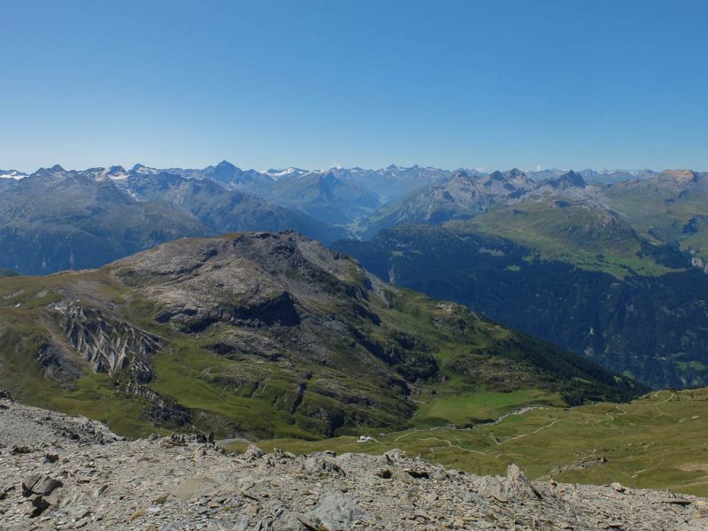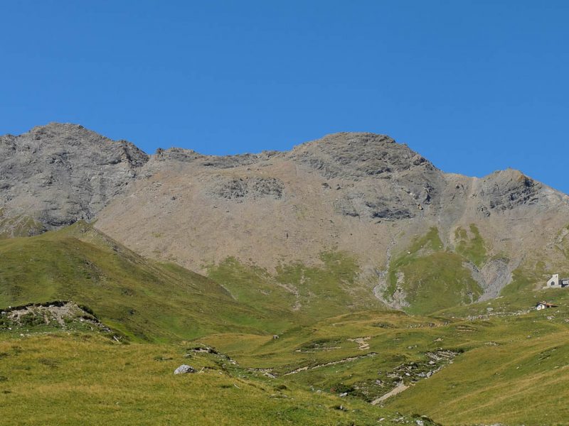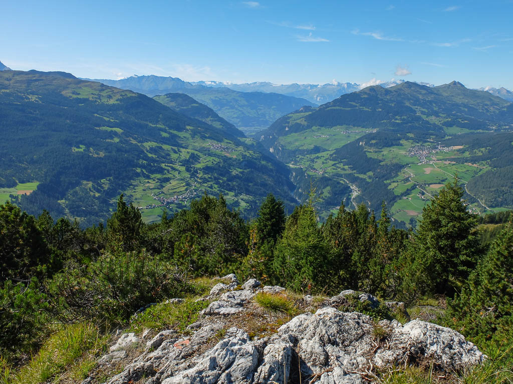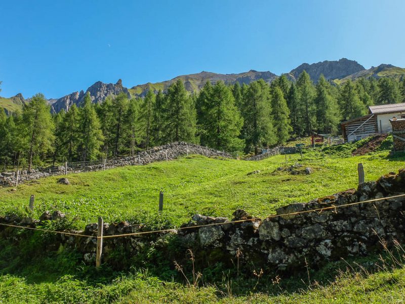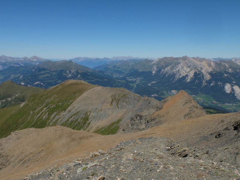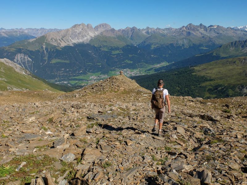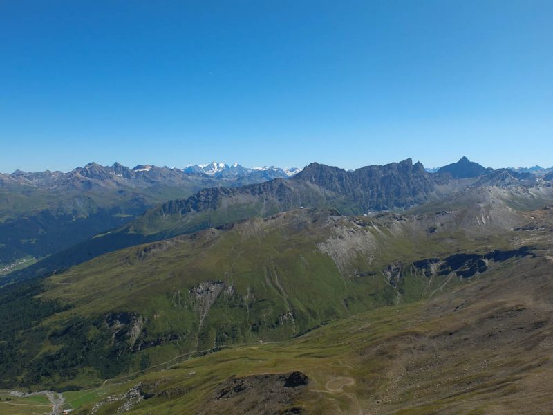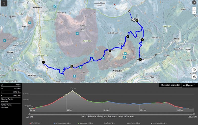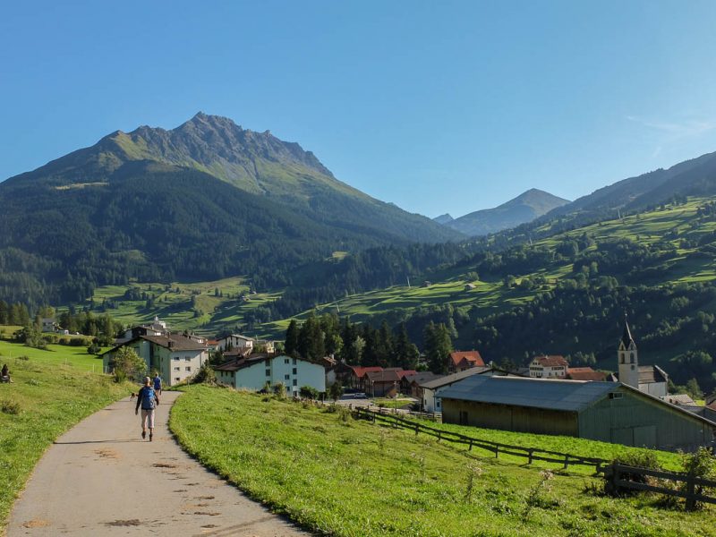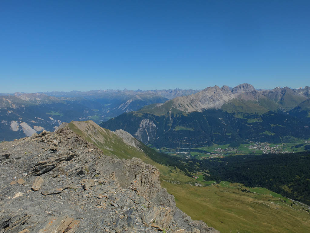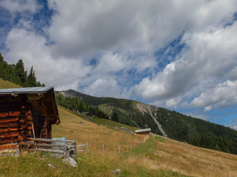Heute steigen wir von Lenz aus über Vasternos nach Scasaluir, einer einsamen, auf rund 2200 Metern gelegenen Grasfläche an der Westflanke des Piz Linards, auf. Von Lenz aus ist diese Grasfläche deutlich zu sehen: