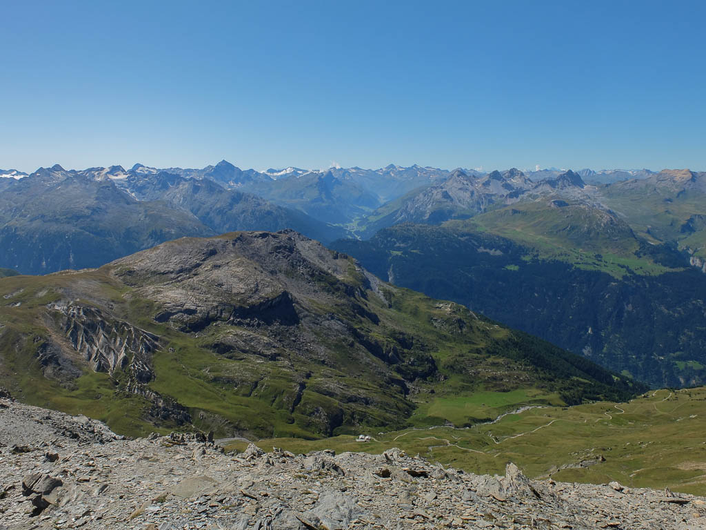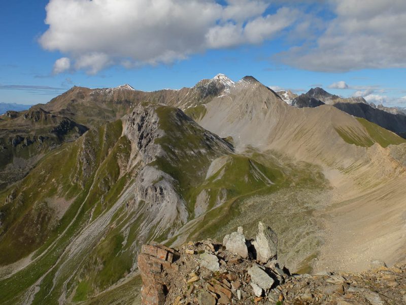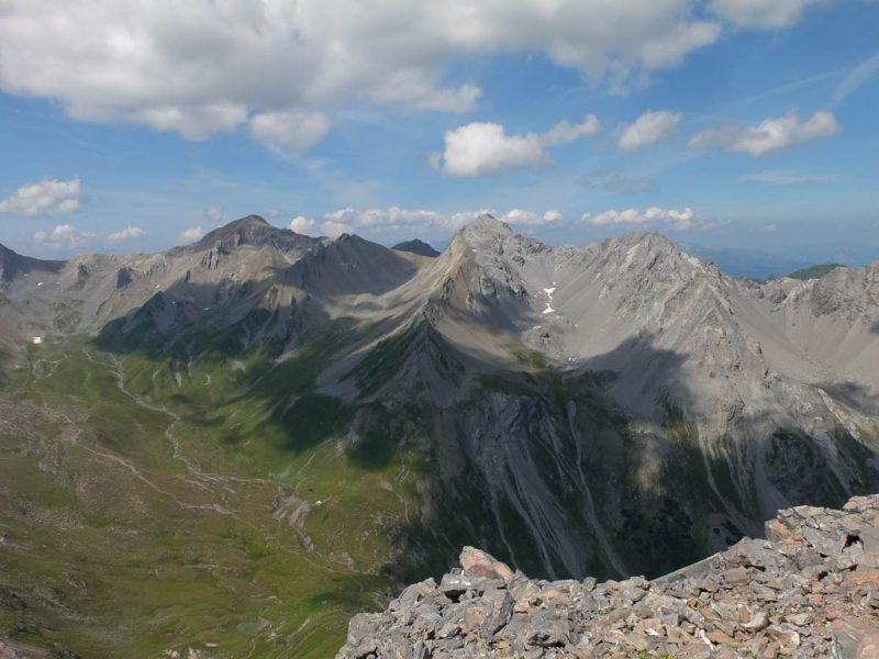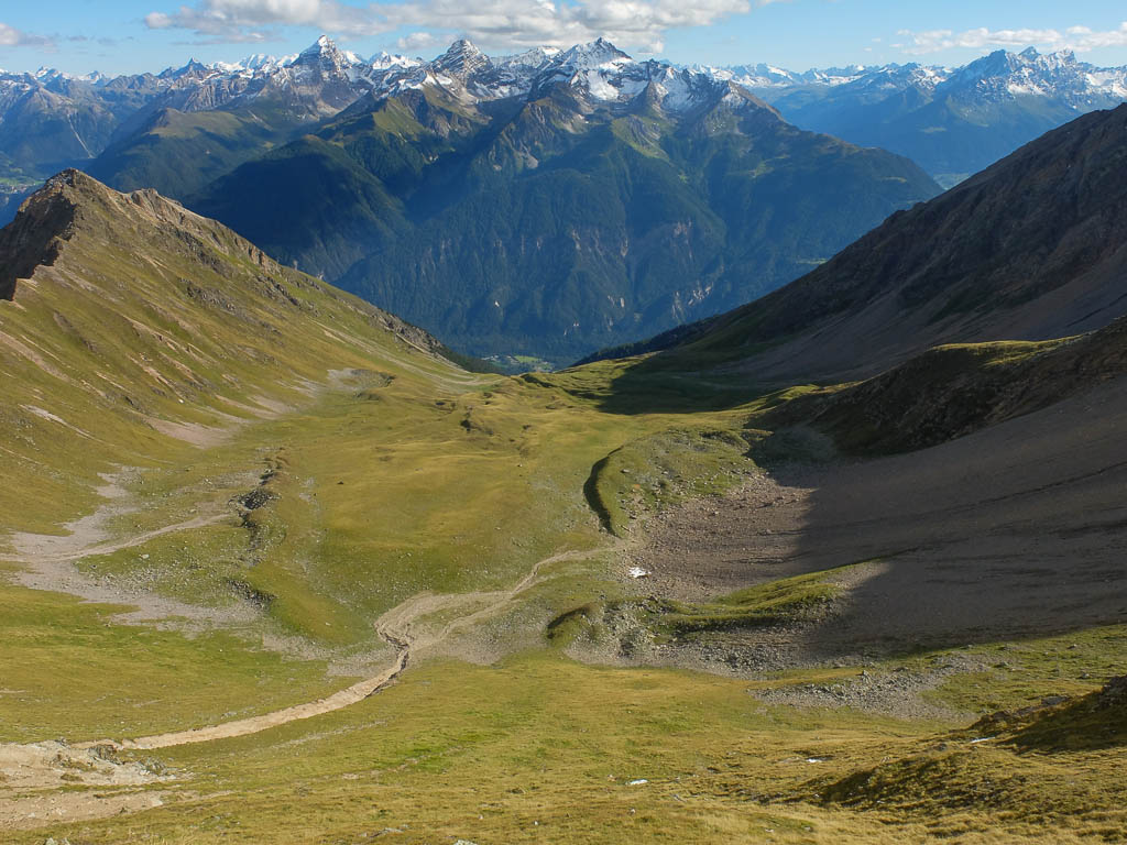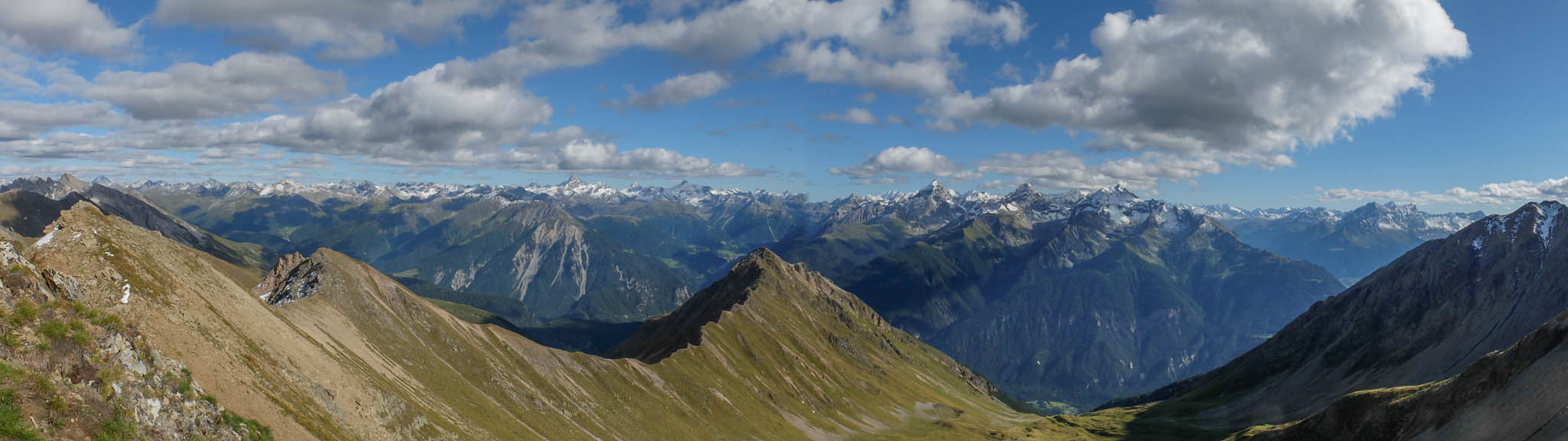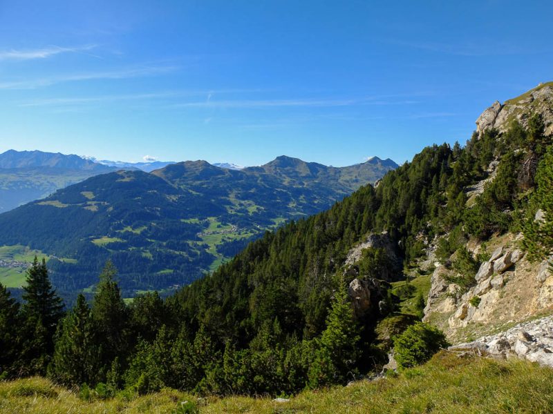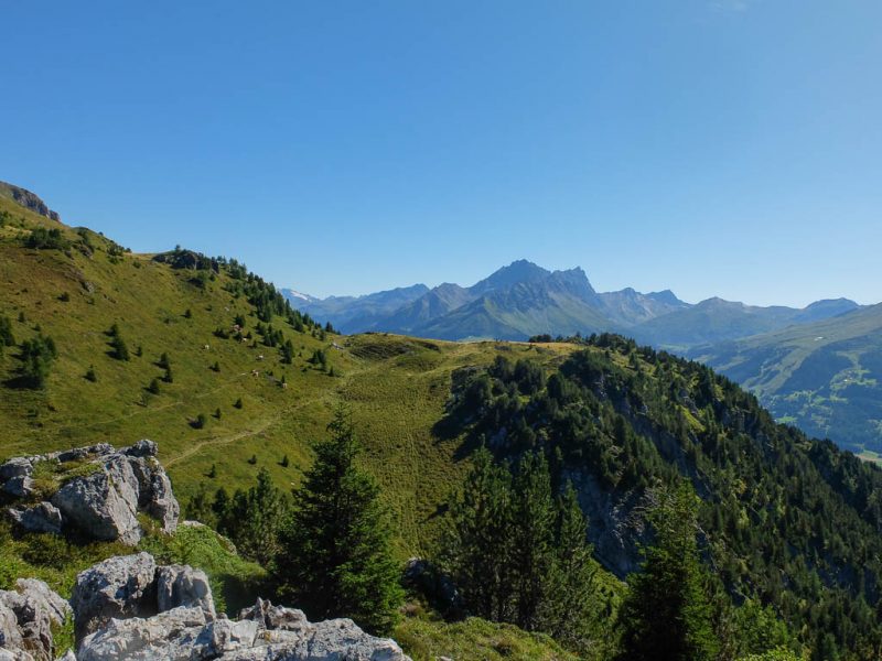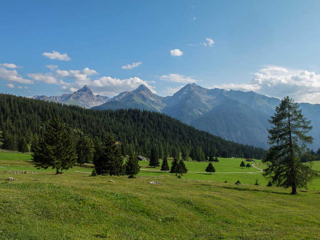 Der Blick vom Wanderweg auf die Stätzerhorn-Kette: