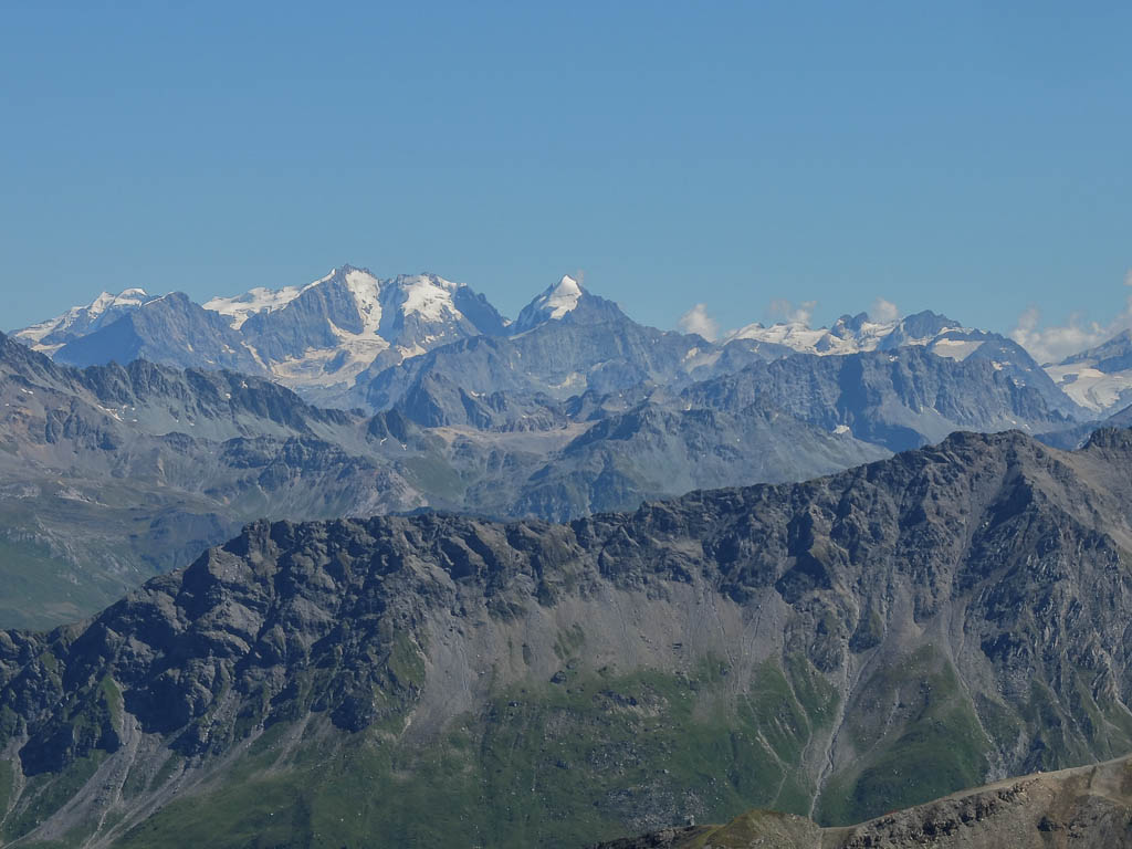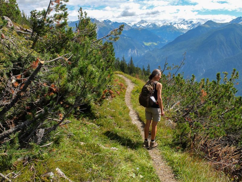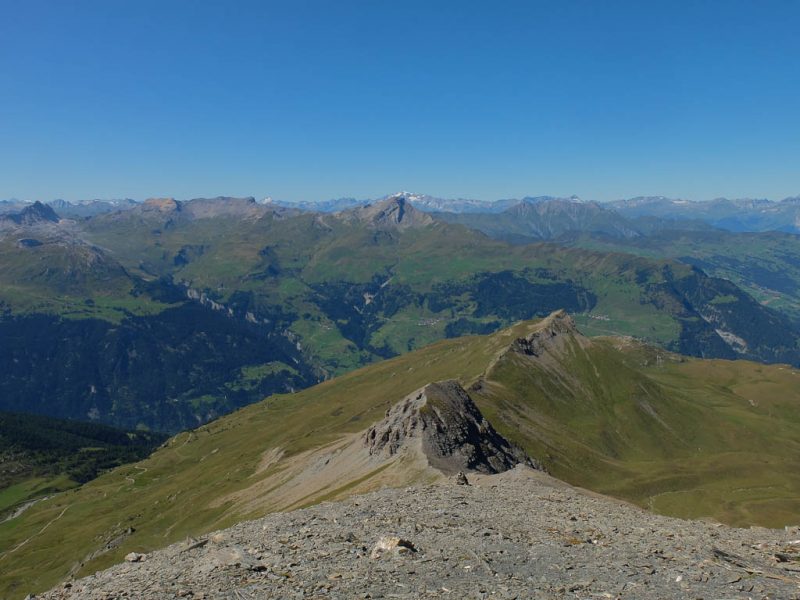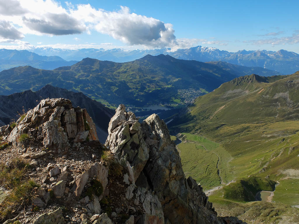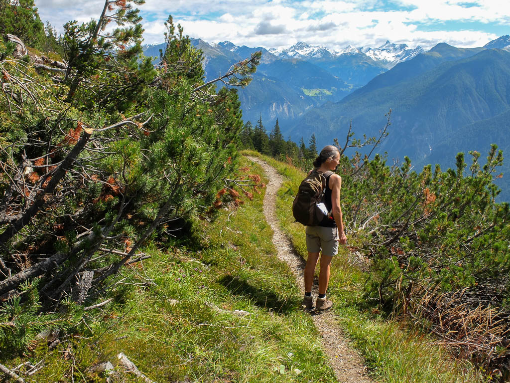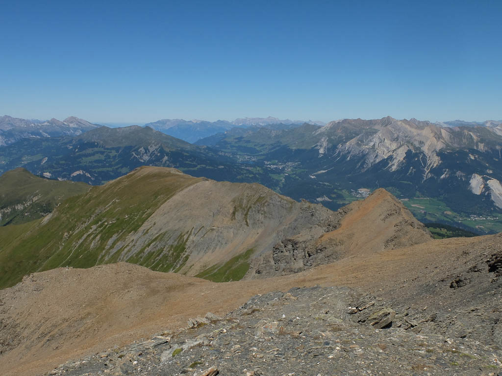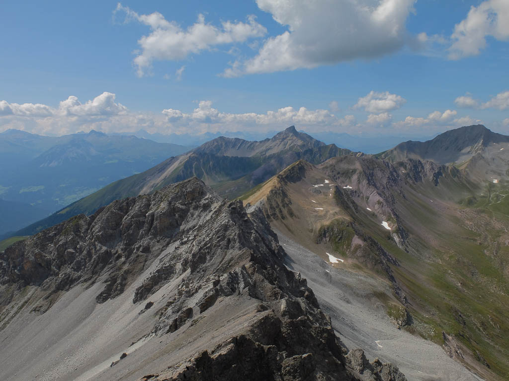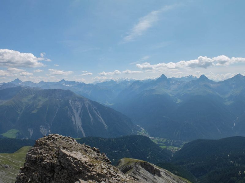 Der Blick vom Wanderweg auf die Stätzerhorn-Kette: