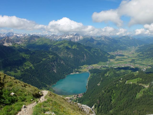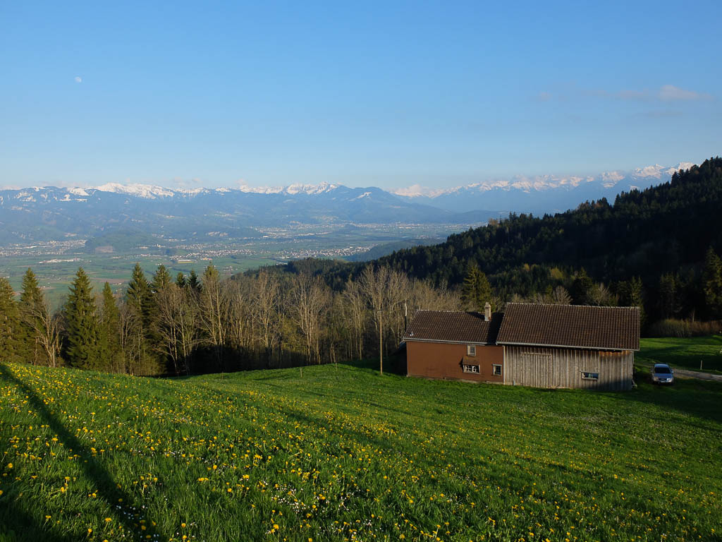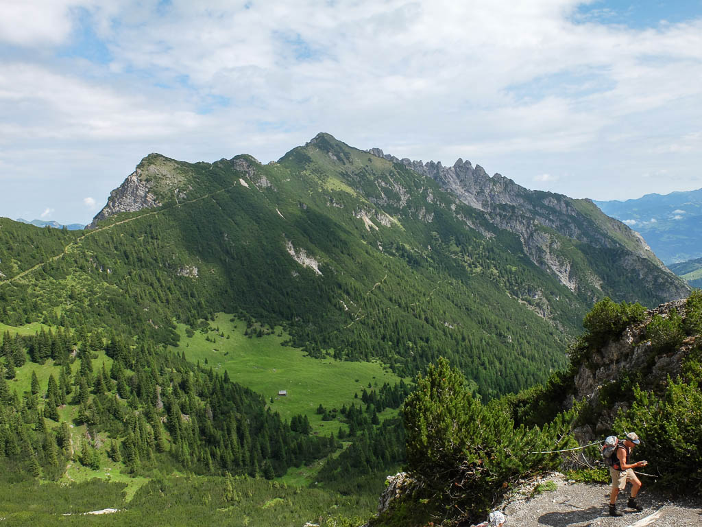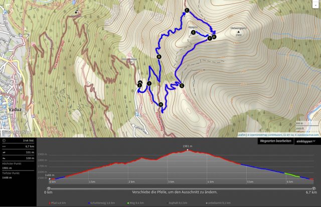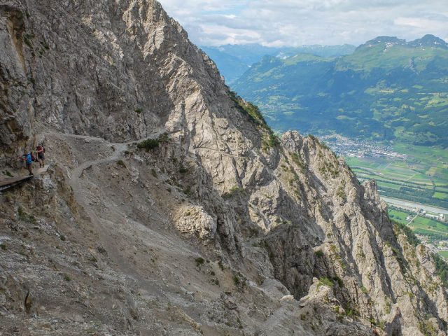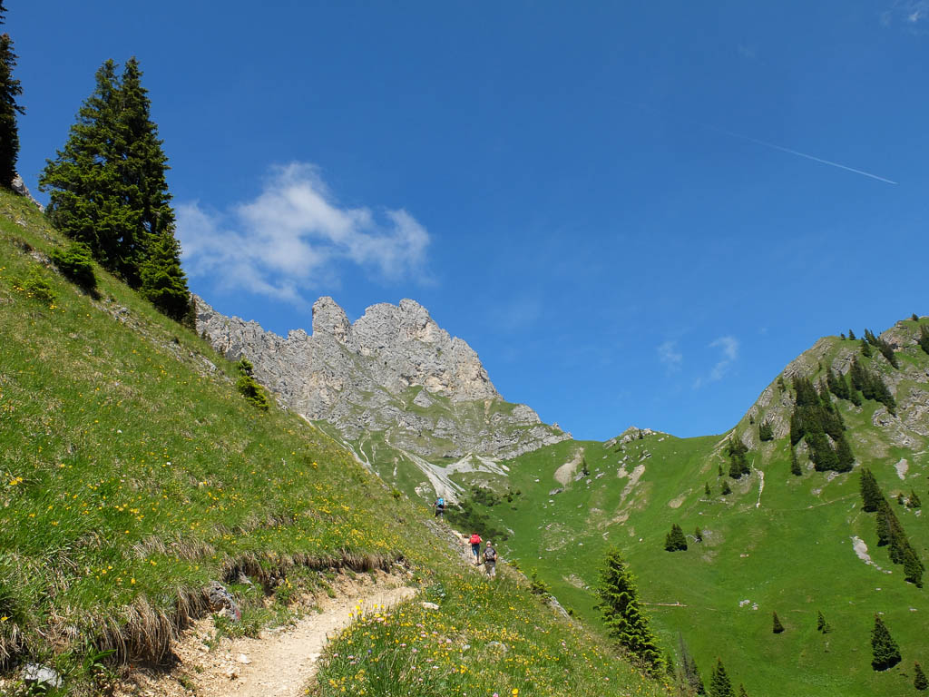 Heute ging es mit dem DAV ins Ausland, genauer gesagt nach Liechtenstein: Zusammen mit zwölf anderen Frauen und Männern wanderten Guido und ich um 10.30 Uhr von einem Parkplatz bei Galfei, einem 1500 Meter hoch gelegenen Weiler im Fürstentum Liechtenstein, aus über den Fürstensteig hinauf zum 1944 Meter hohen Alpspitz: