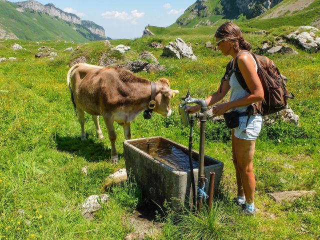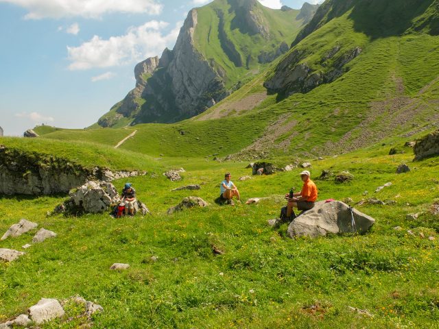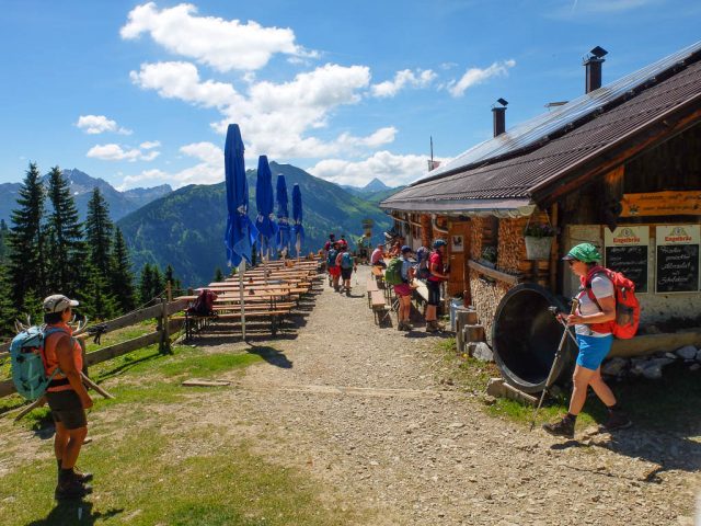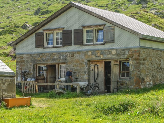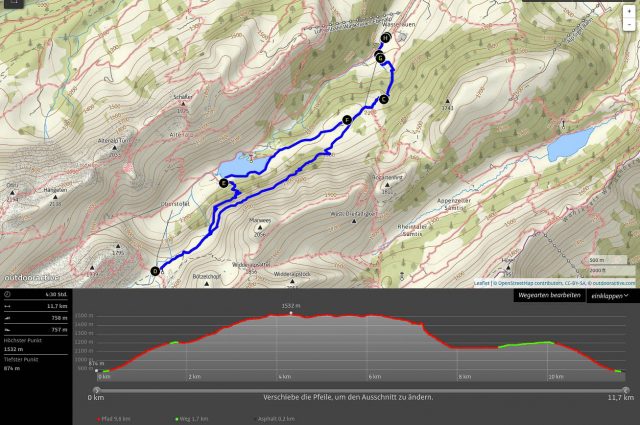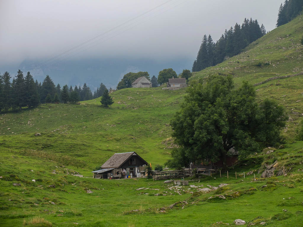 Von dort aus führte ein asphaltierter Fahrweg zurück zum Parkplatz. Auf dem Alpsitz sah es so aus, als würde sich ein Regengebiet über uns ergießen, deshalb marschierten wir relativ schnell nach unten. Aber der Wettergott blieb uns hold, bei unserer Einkehr im Berggasthof Matu kam sogar die Sonne wieder heraus.